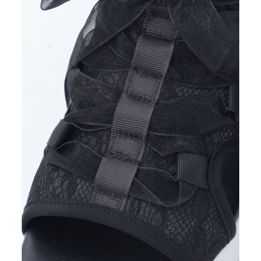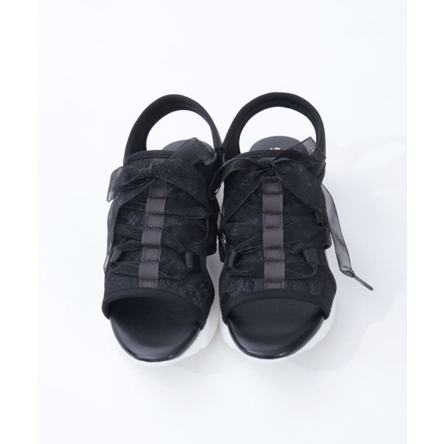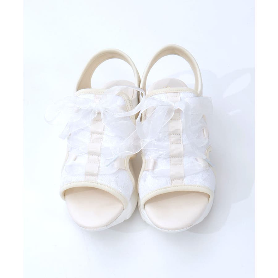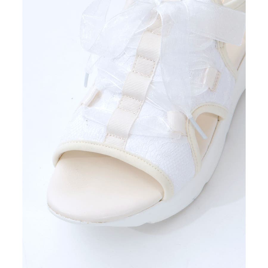 靴ひもには軽やかなオーガンジーリボンを使用し、アッパーに繊細なレース生地を重ねています。