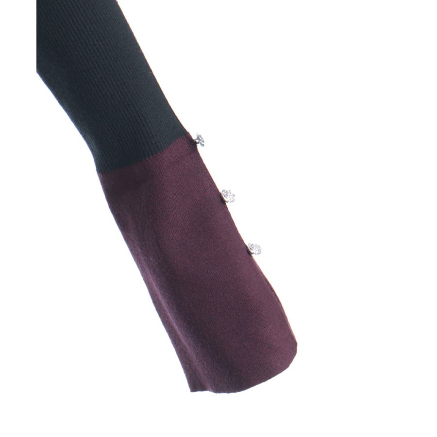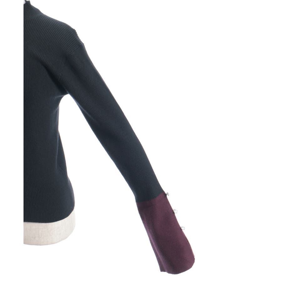 バイカラースリーブが印象的なデザインニット。シンプルなシルエットの中に個性が光り、1枚着るだけでおしゃれ度がぐっと高まるニットトップスです。