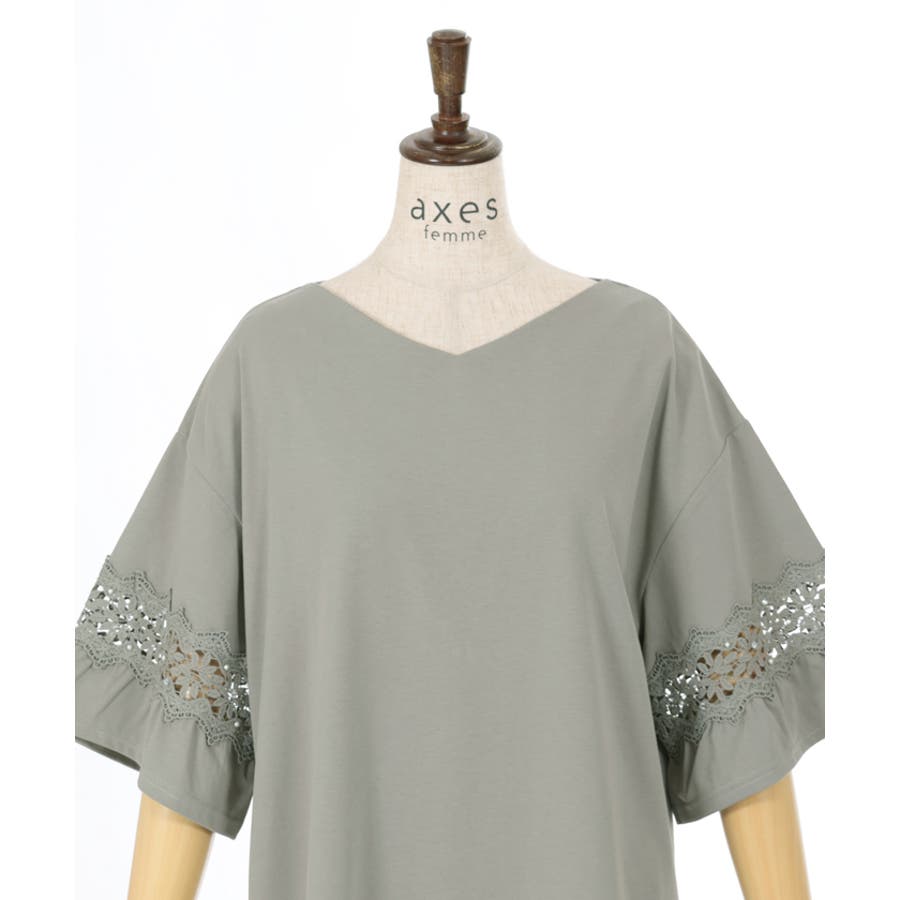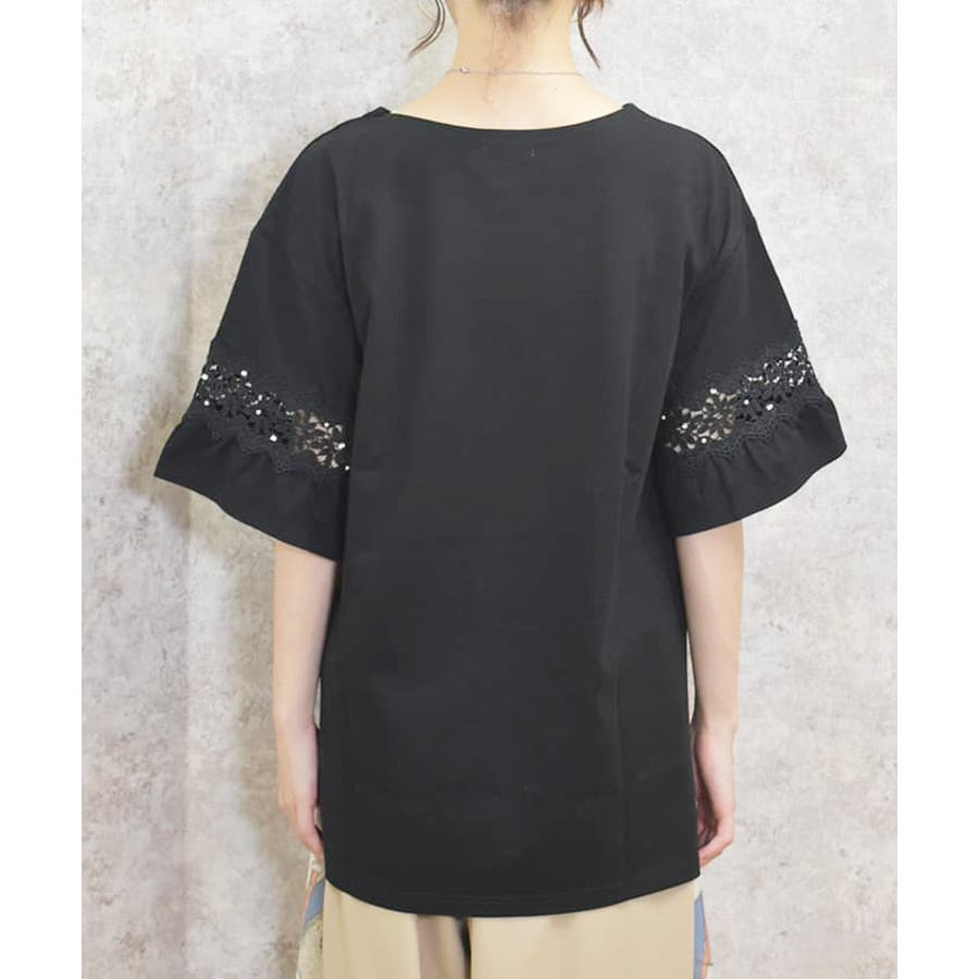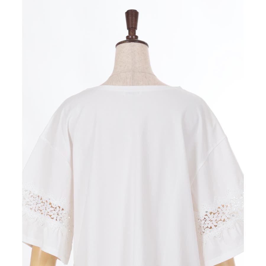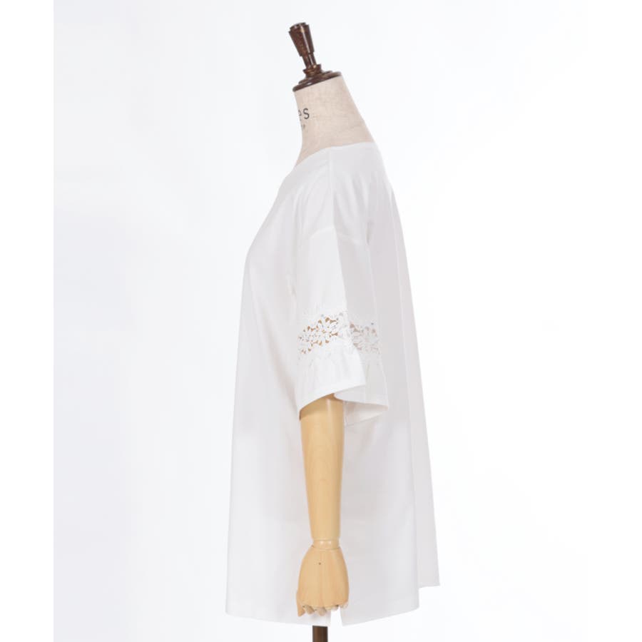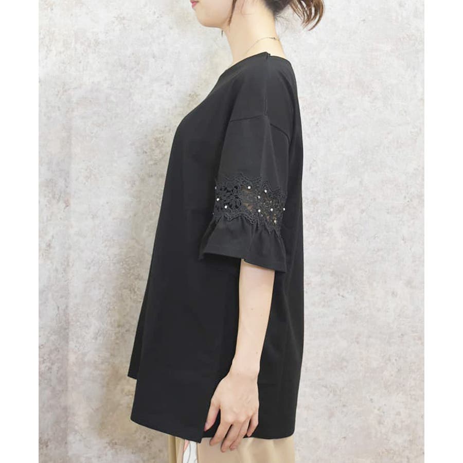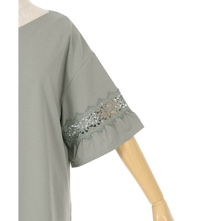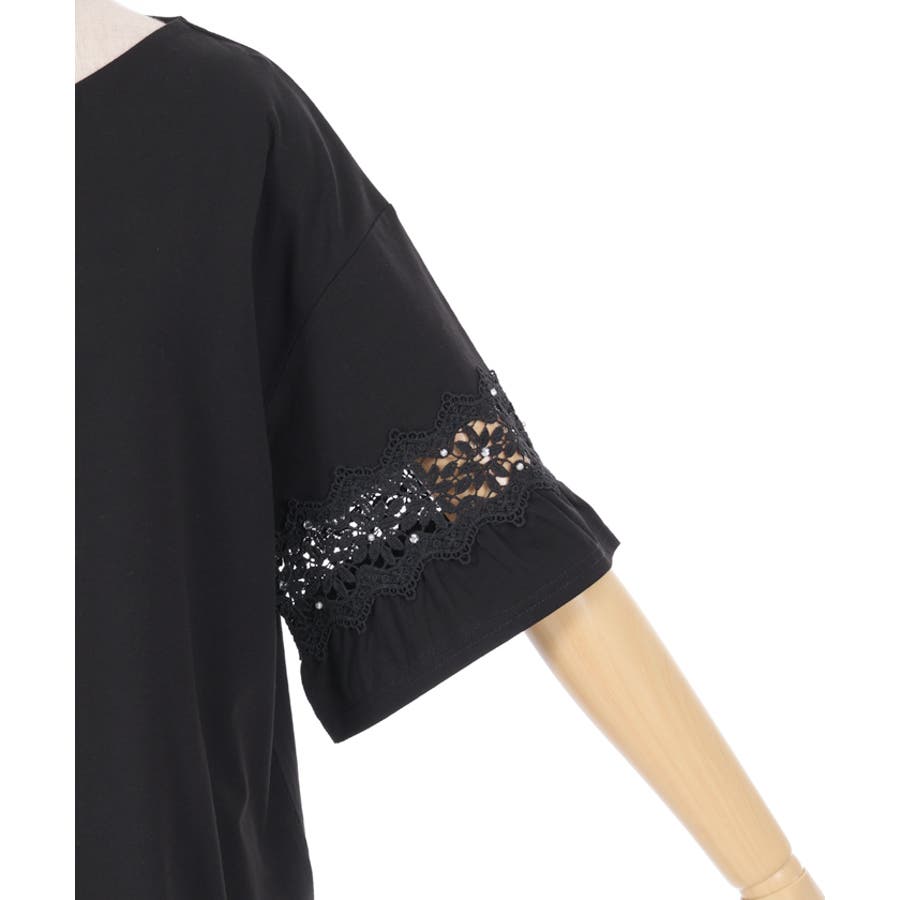 袖は太幅のケミカルレースの切替で、さりげない透け感がポイント。