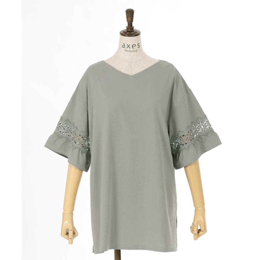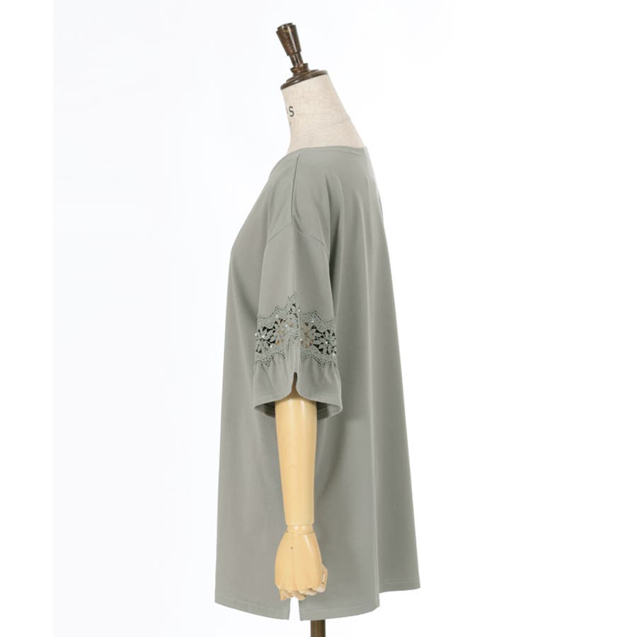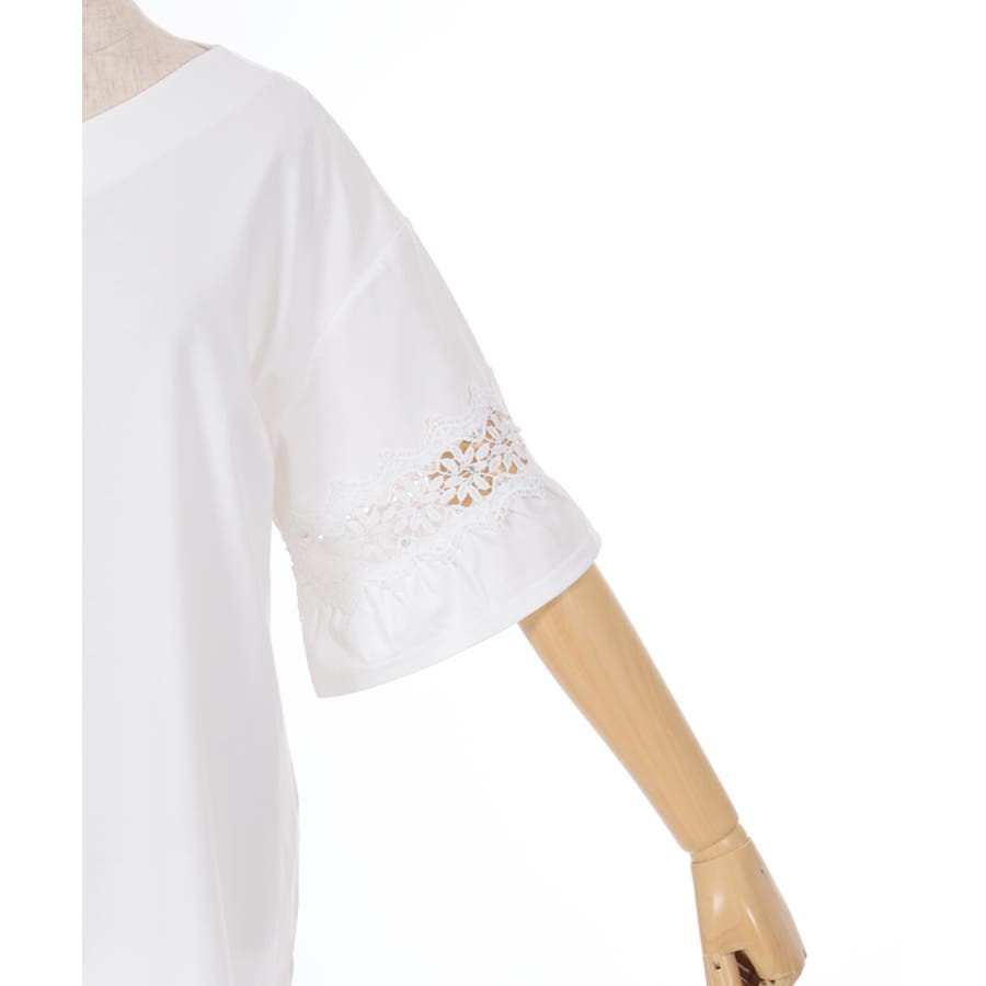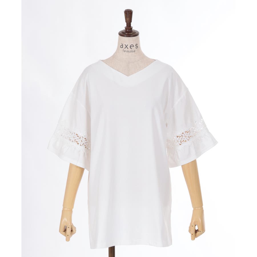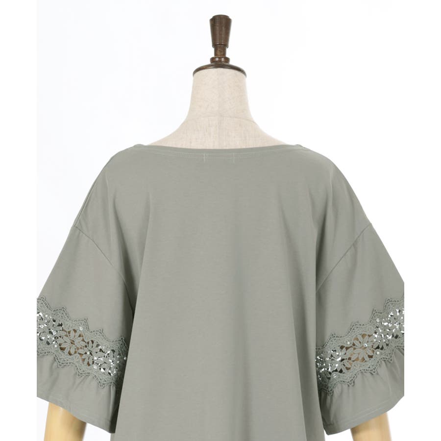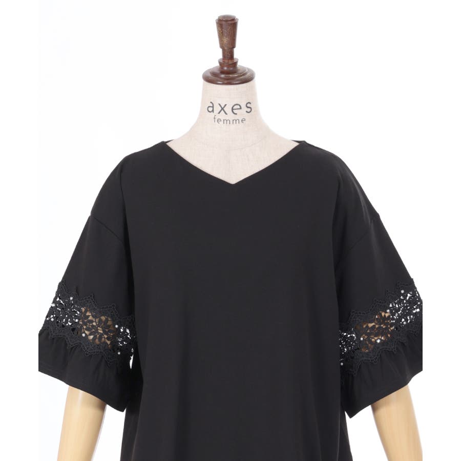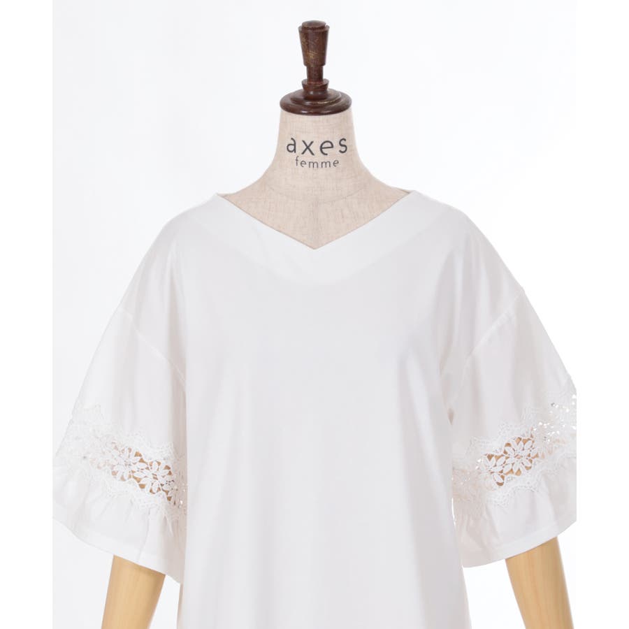 袖は太幅のケミカルレースの切替で、さりげない透け感がポイント。