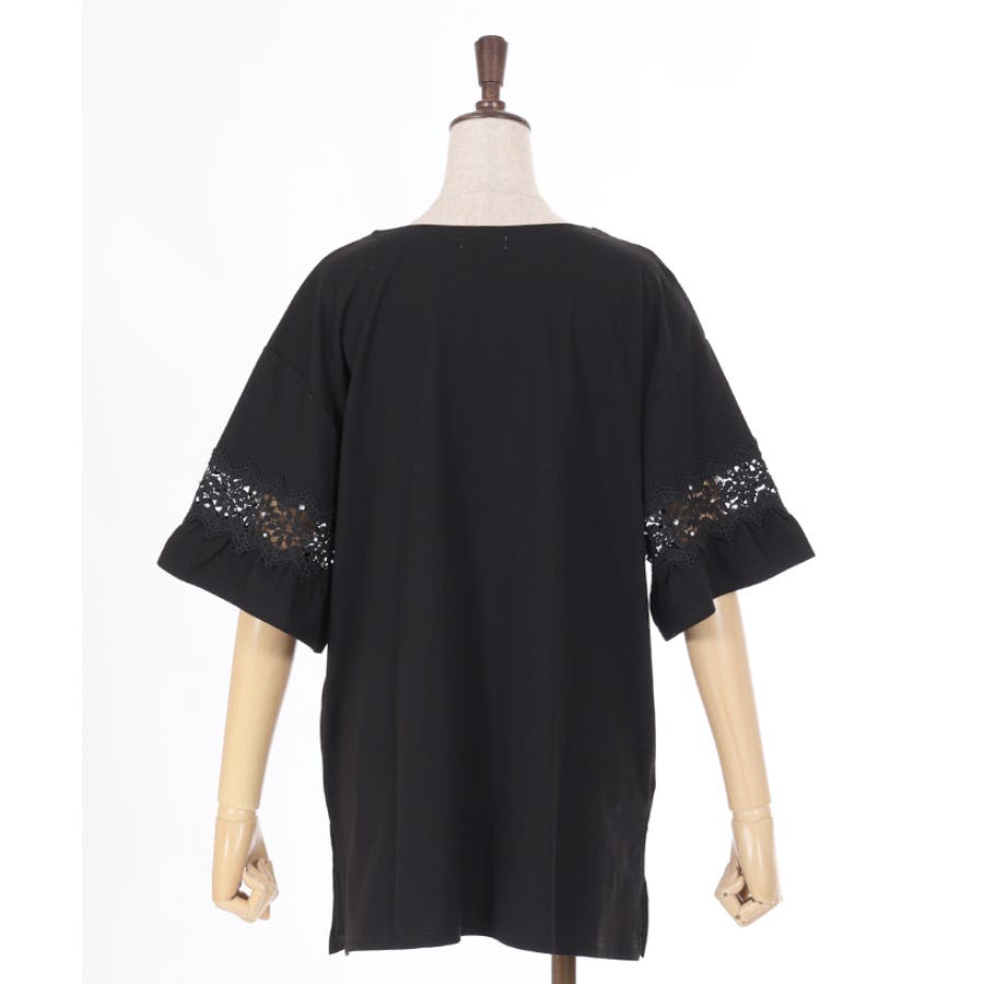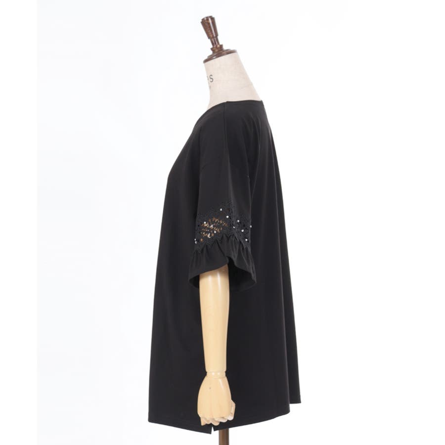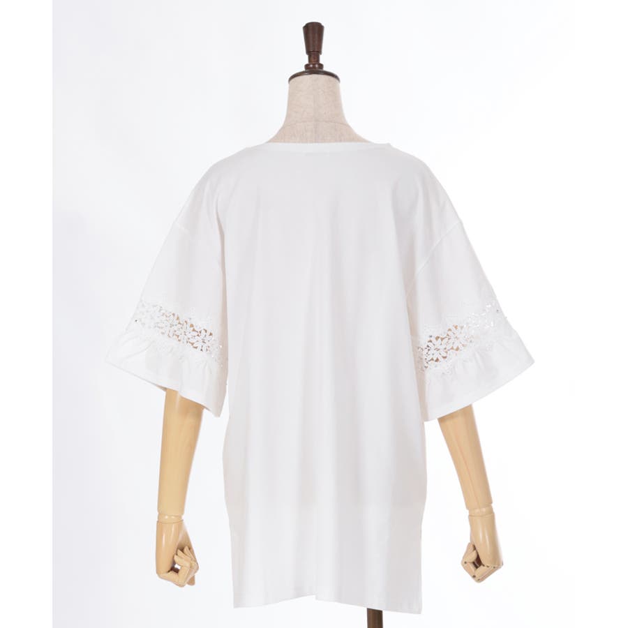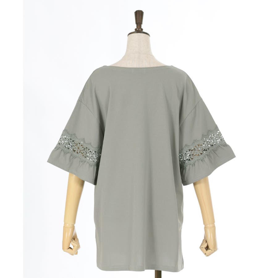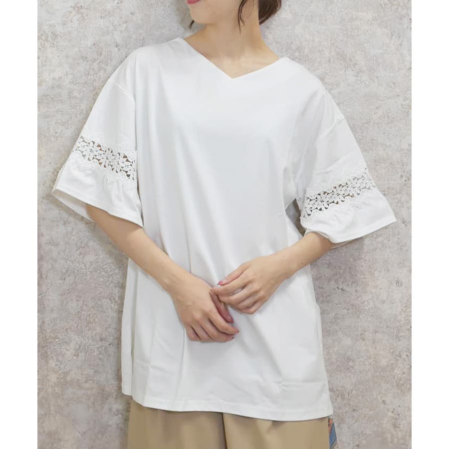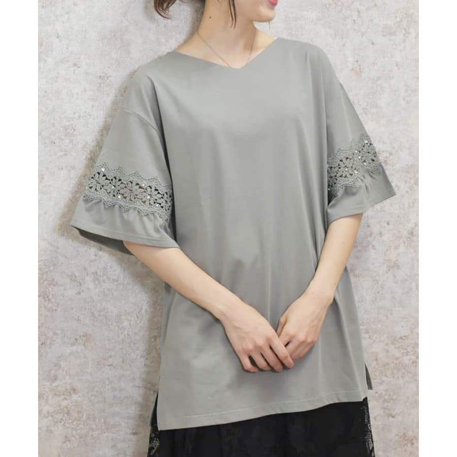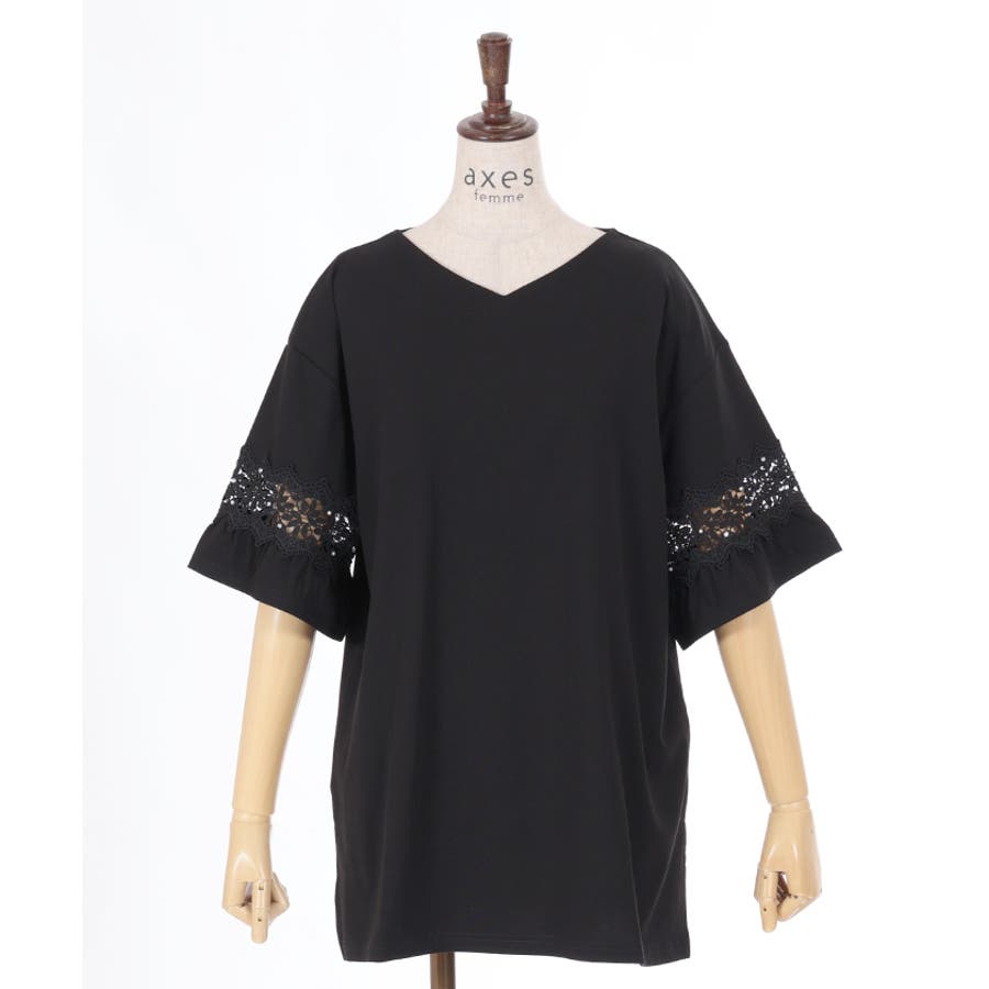 袖は太幅のケミカルレースの切替で、さりげない透け感がポイント。