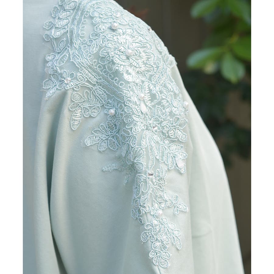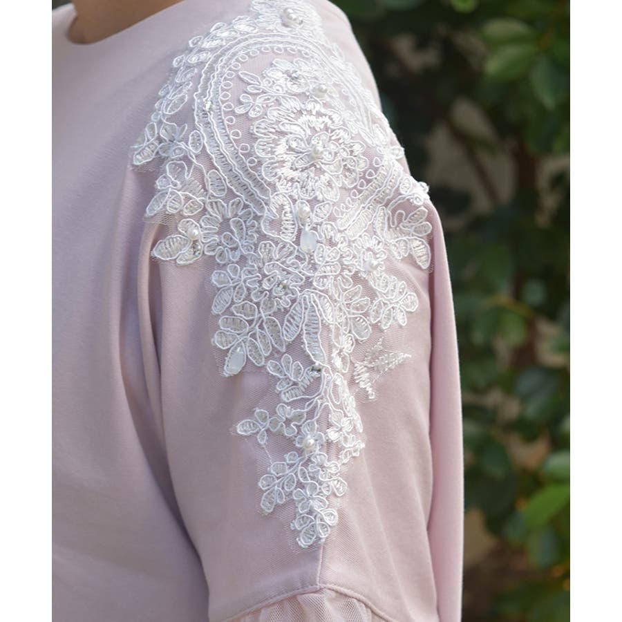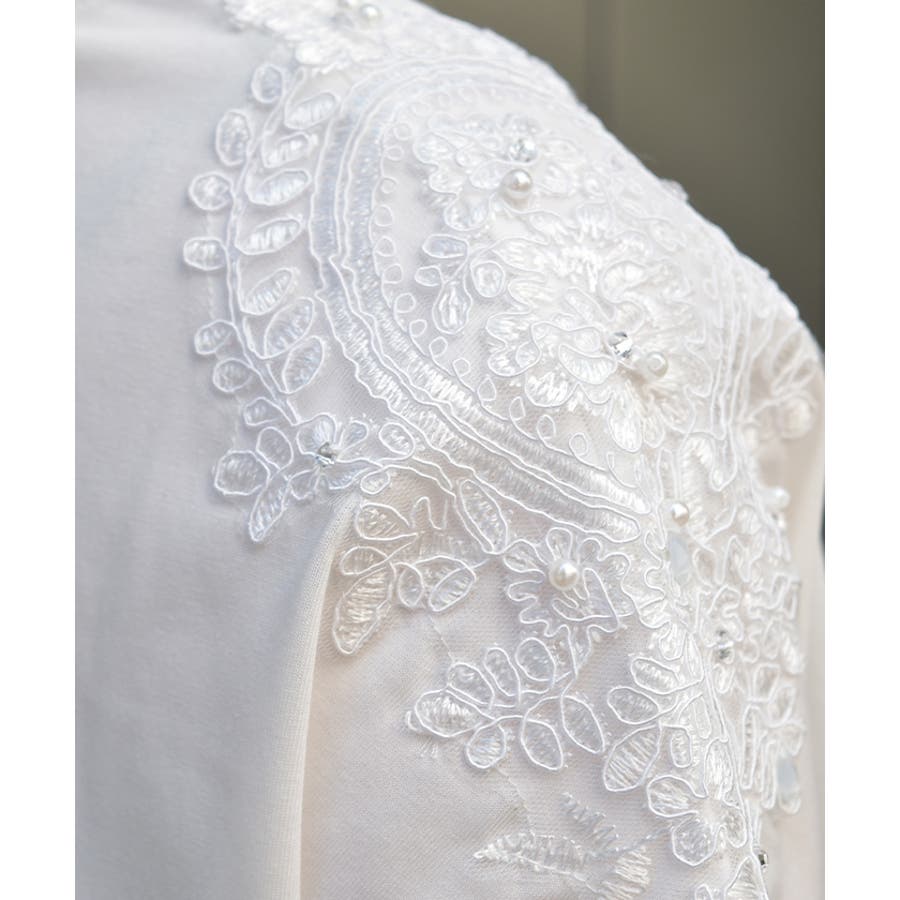肩レースにはパールやビジューを施し、華やかにキラキラと仕上げ、フェミニン感をプラス。