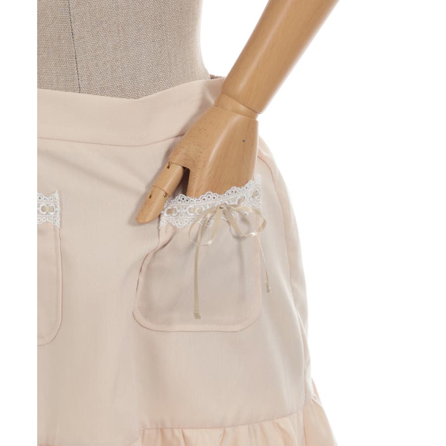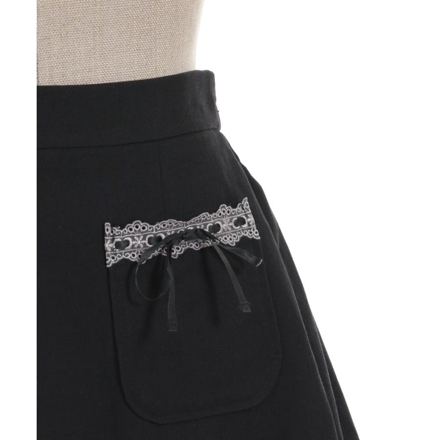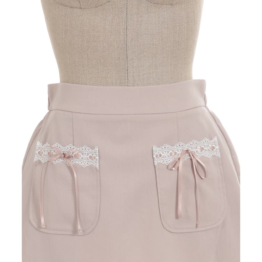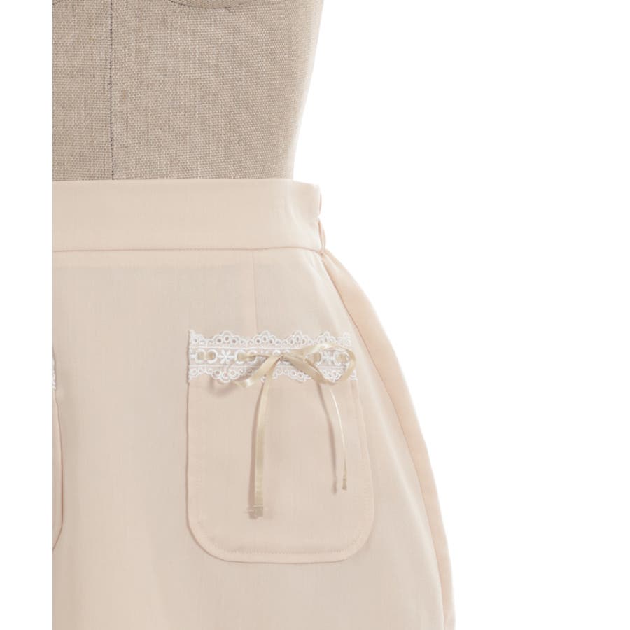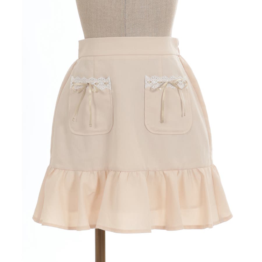 ポケットの縁にレースとリボンをあしらい、ガーリームードたっぷりに仕上げたスカートです♪