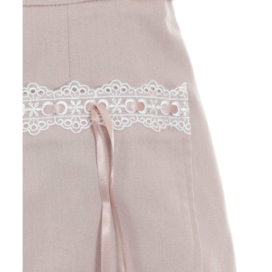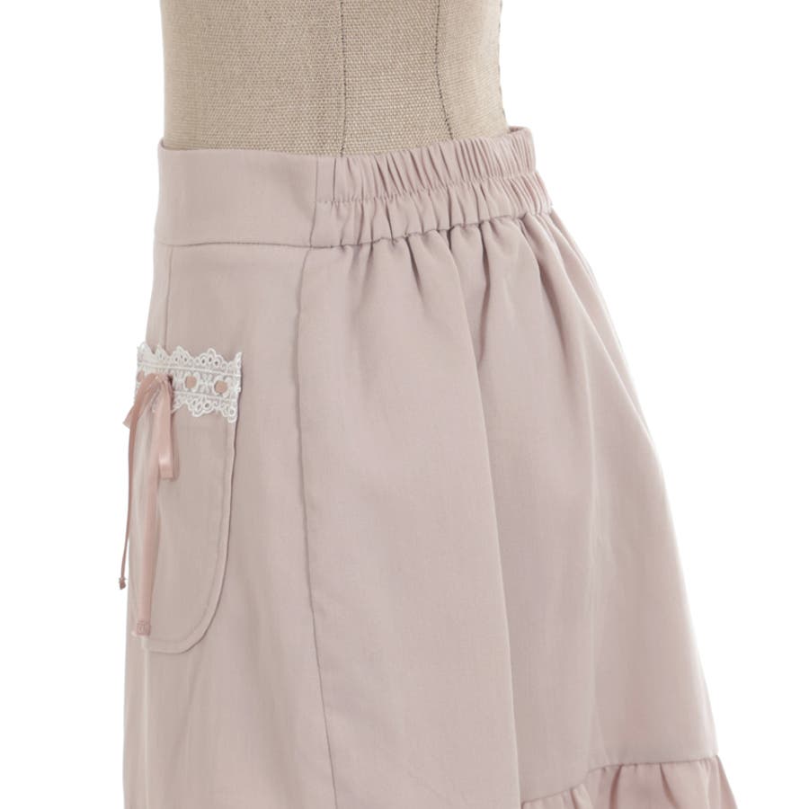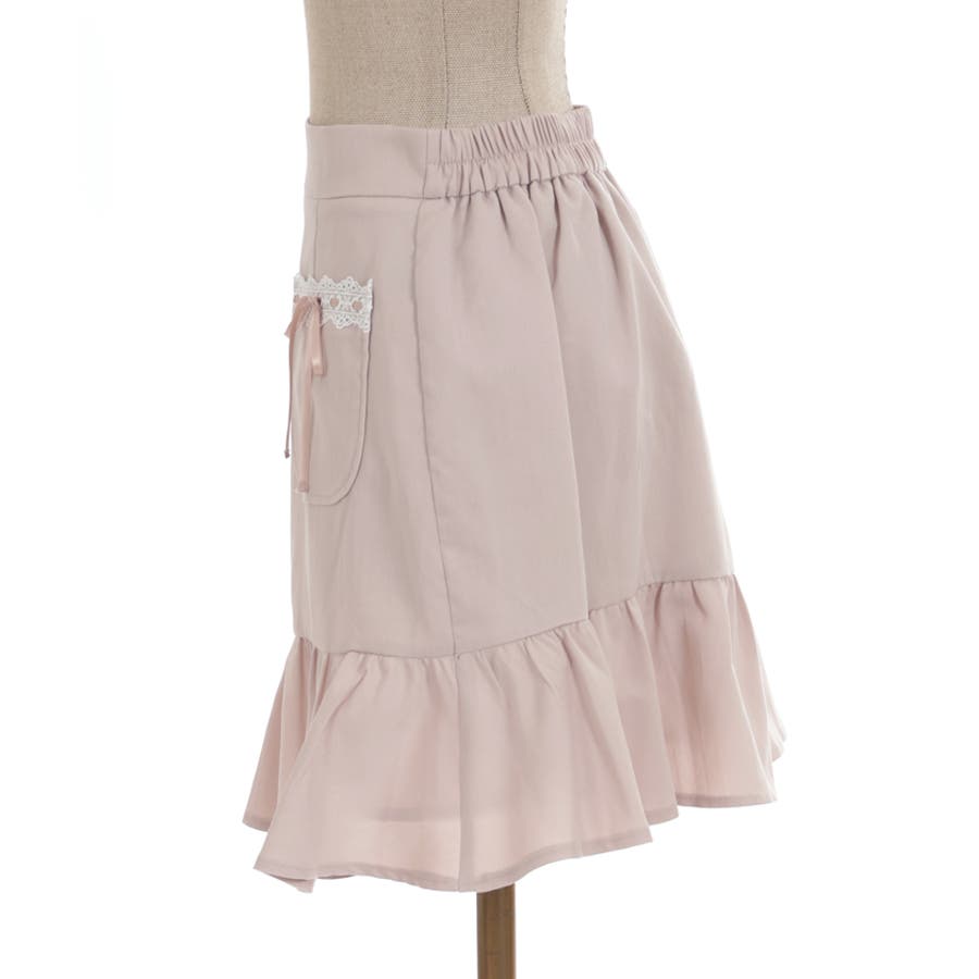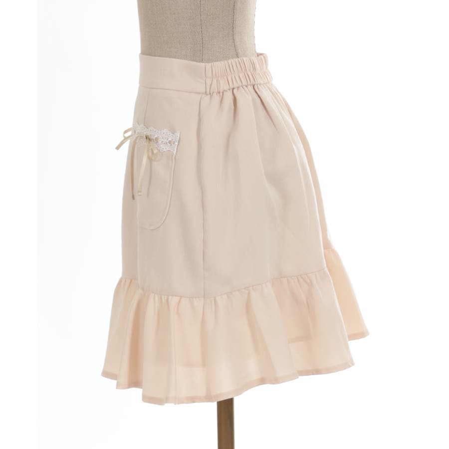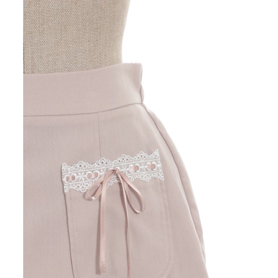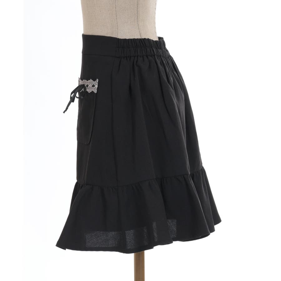 ポケットの縁にレースとリボンをあしらい、ガーリームードたっぷりに仕上げたスカートです♪
