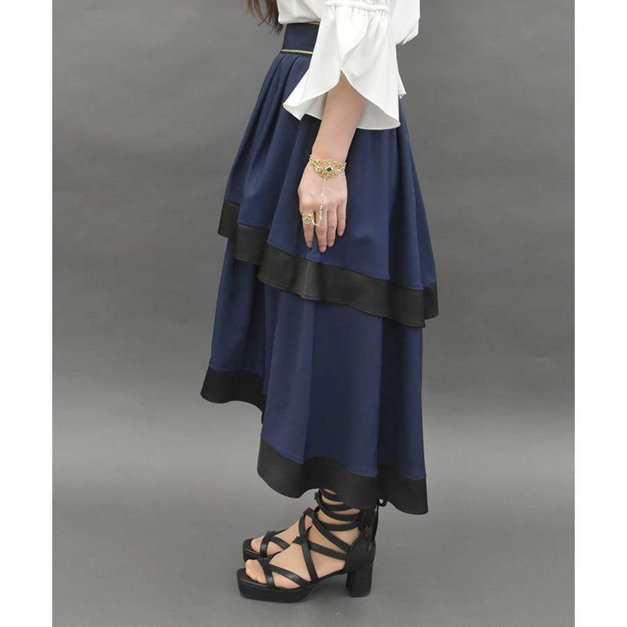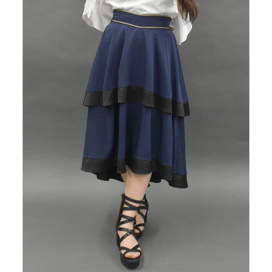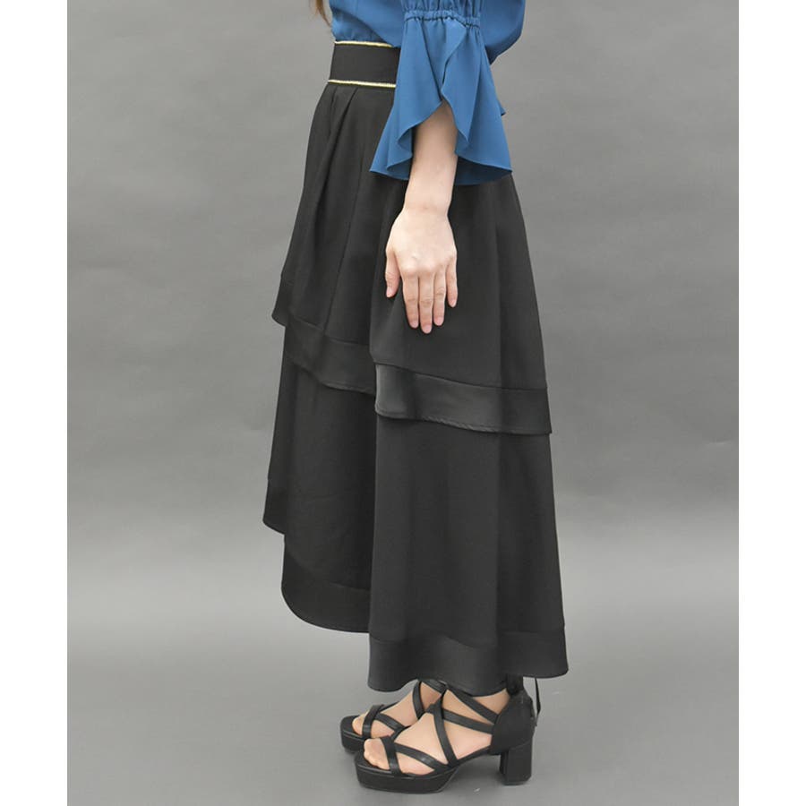 ウエストにあしらったゴールドのブレードが華やかな雰囲気を醸し出すスカートです。