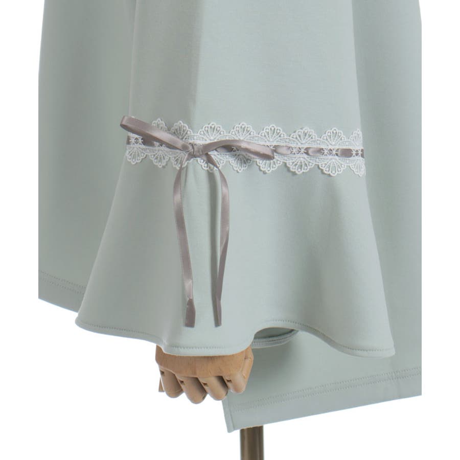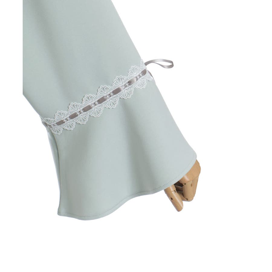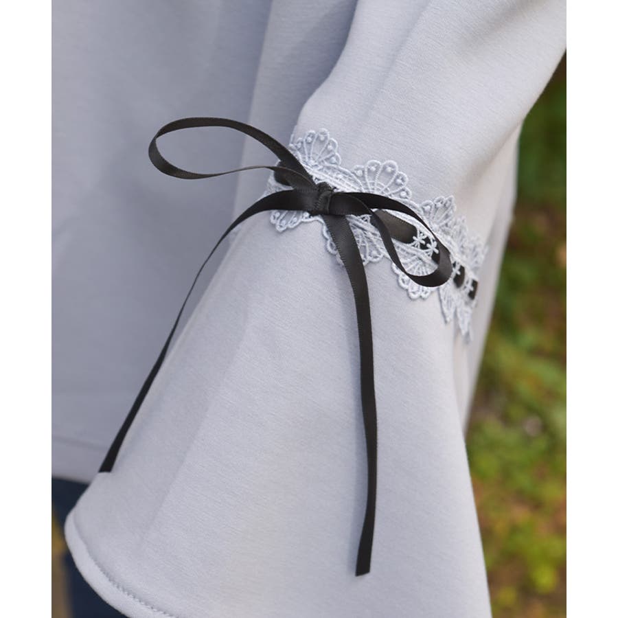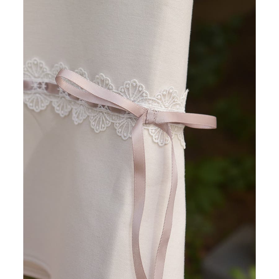 袖切替に光沢の綺麗なサテンリボンを通したはしごレースをあしらったデザイン。