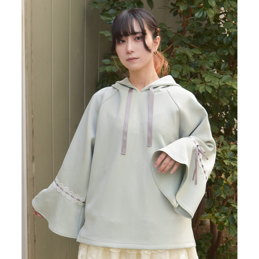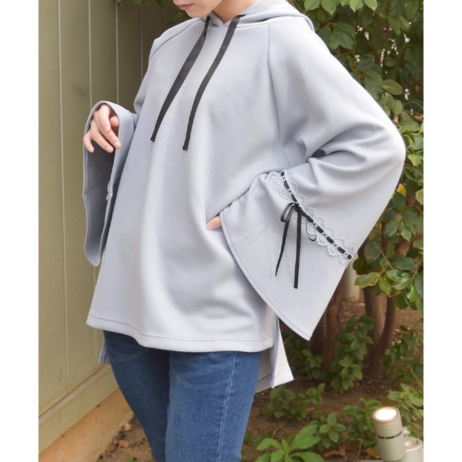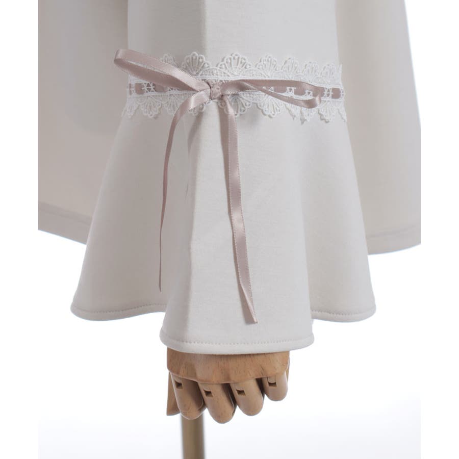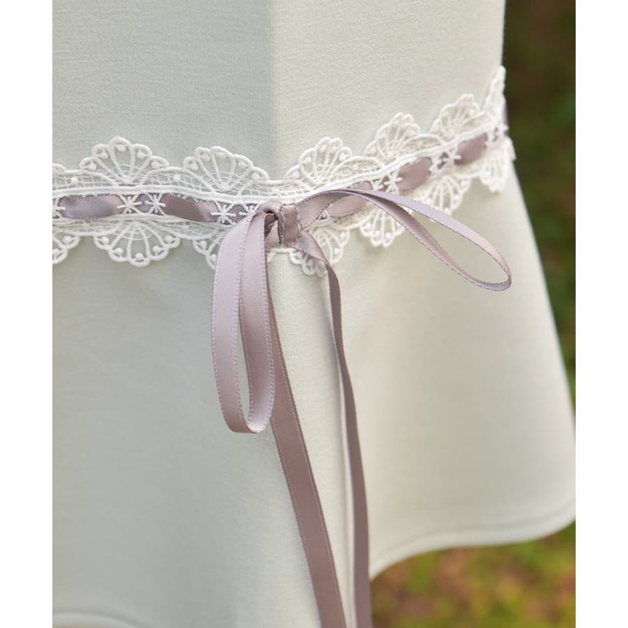袖切替に光沢の綺麗なサテンリボンを通したはしごレースをあしらったデザイン。