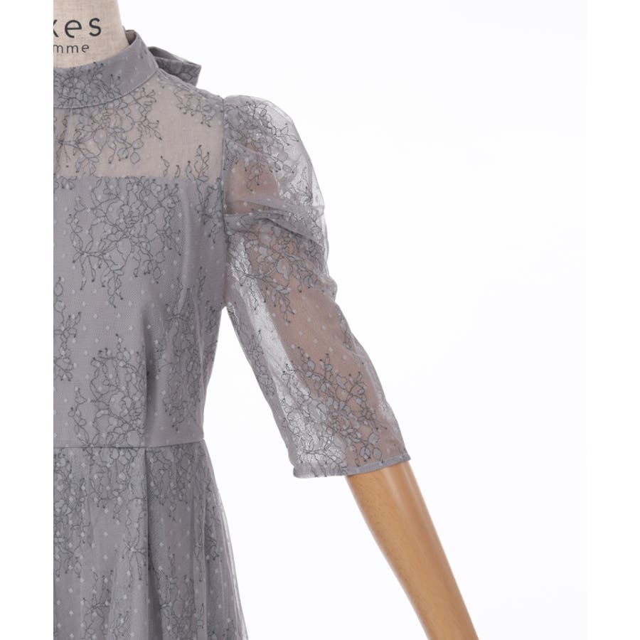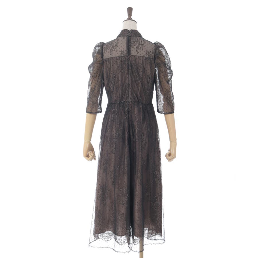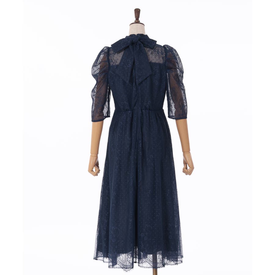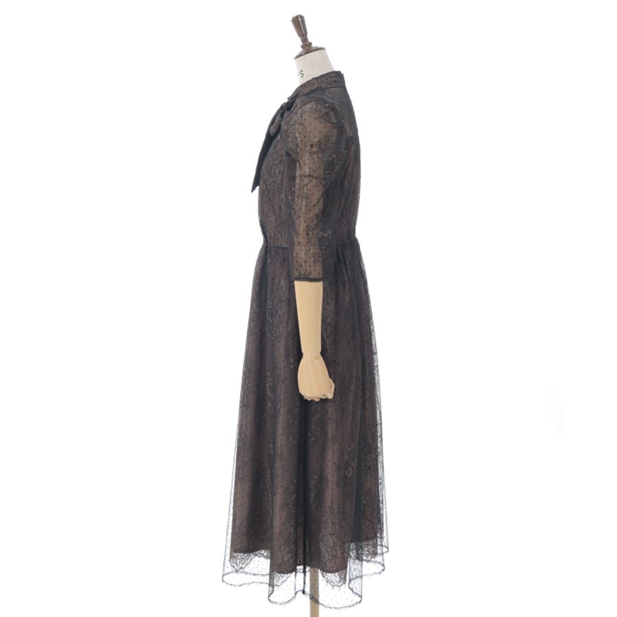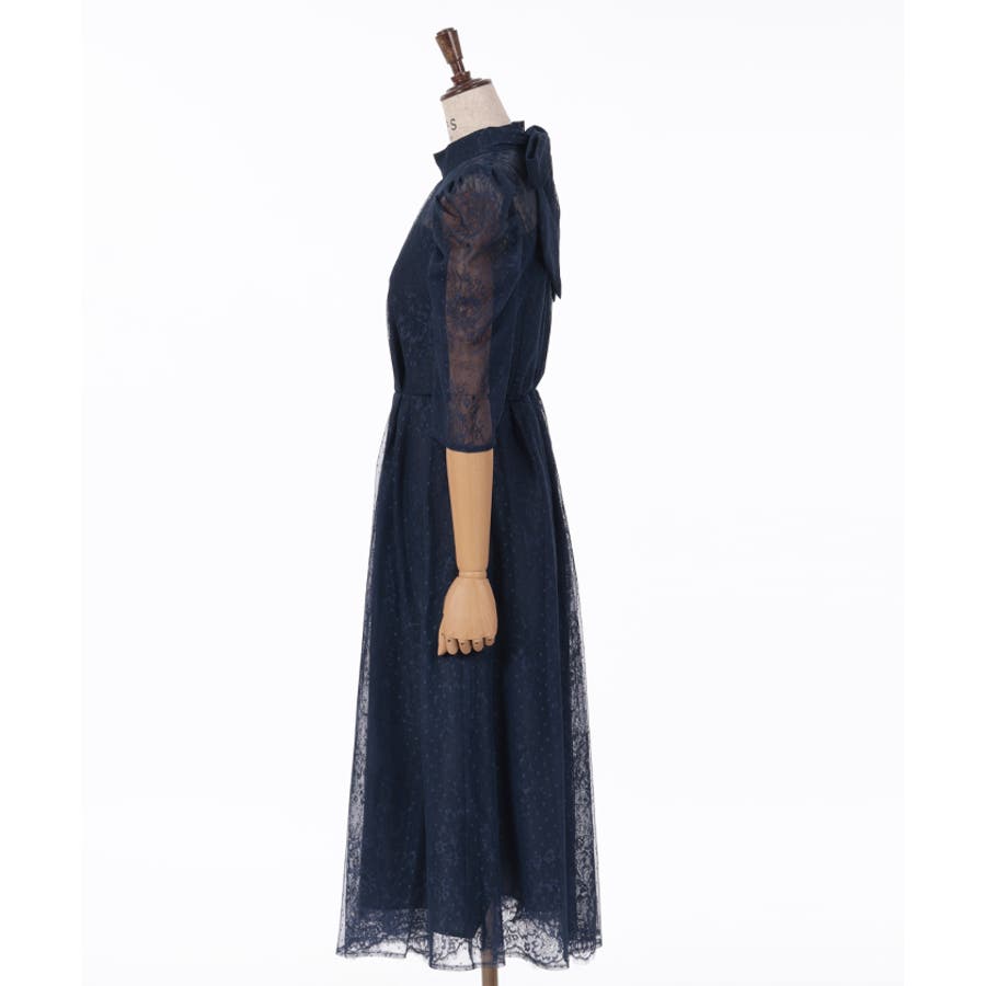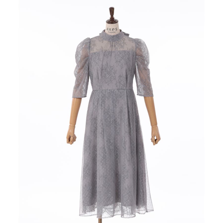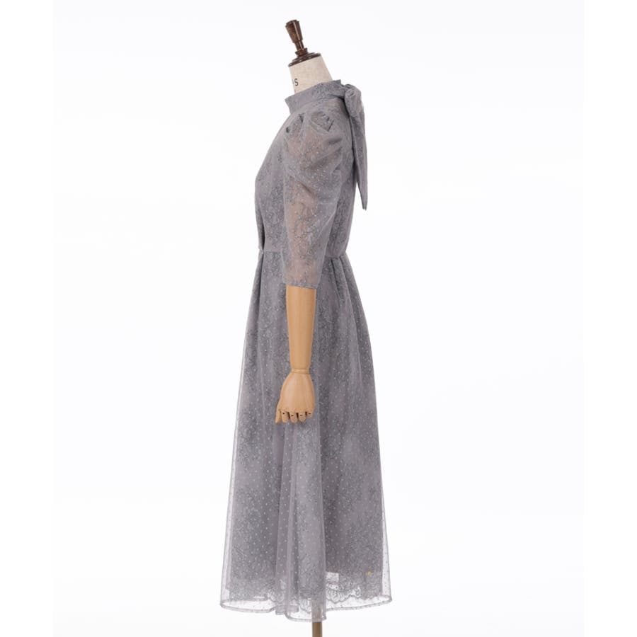 繊細なレースとドットチュールの重なりが美しいドレスです。