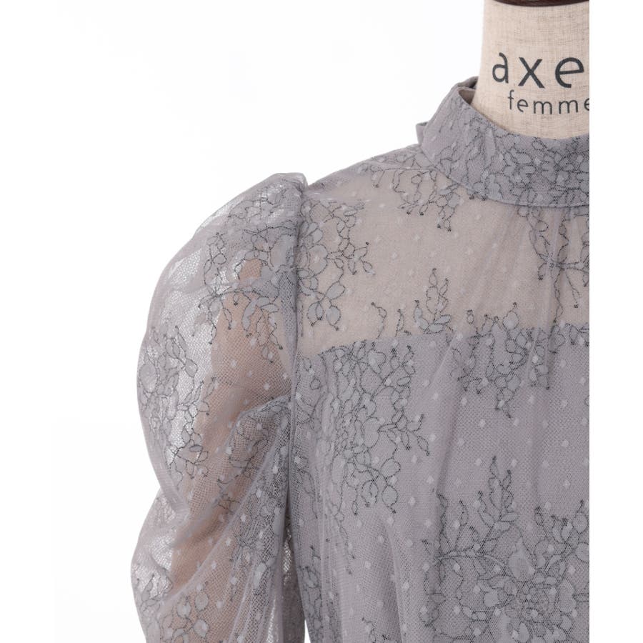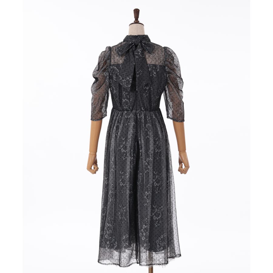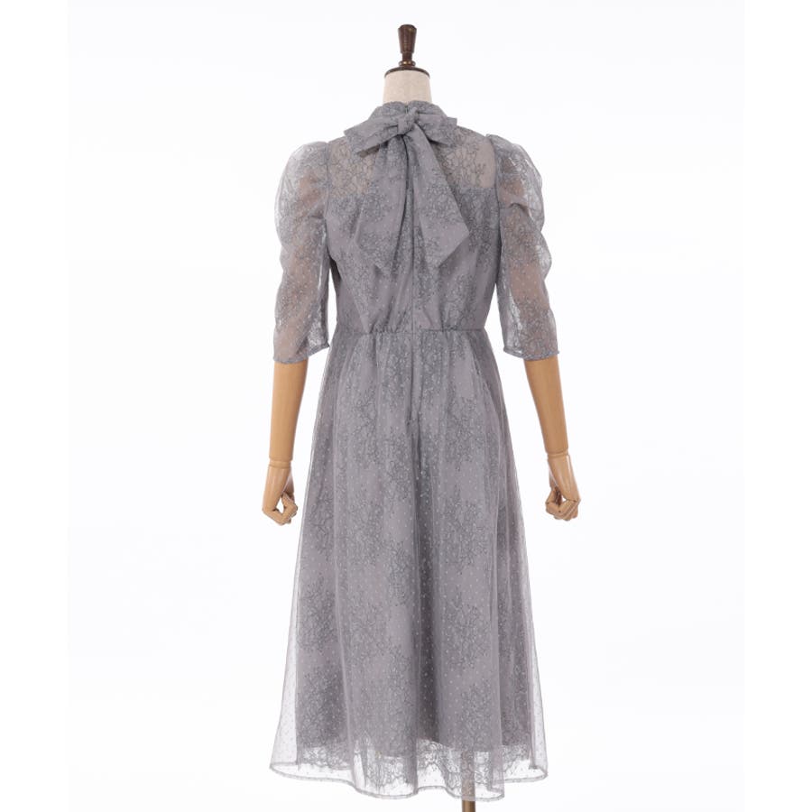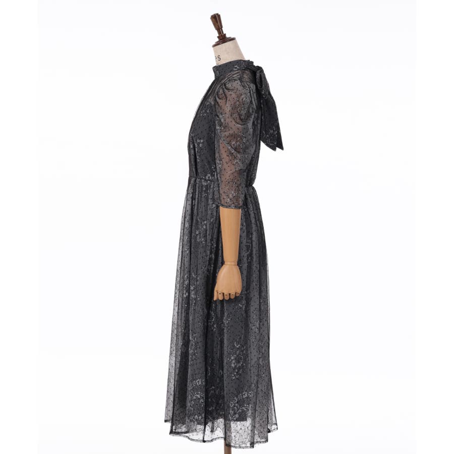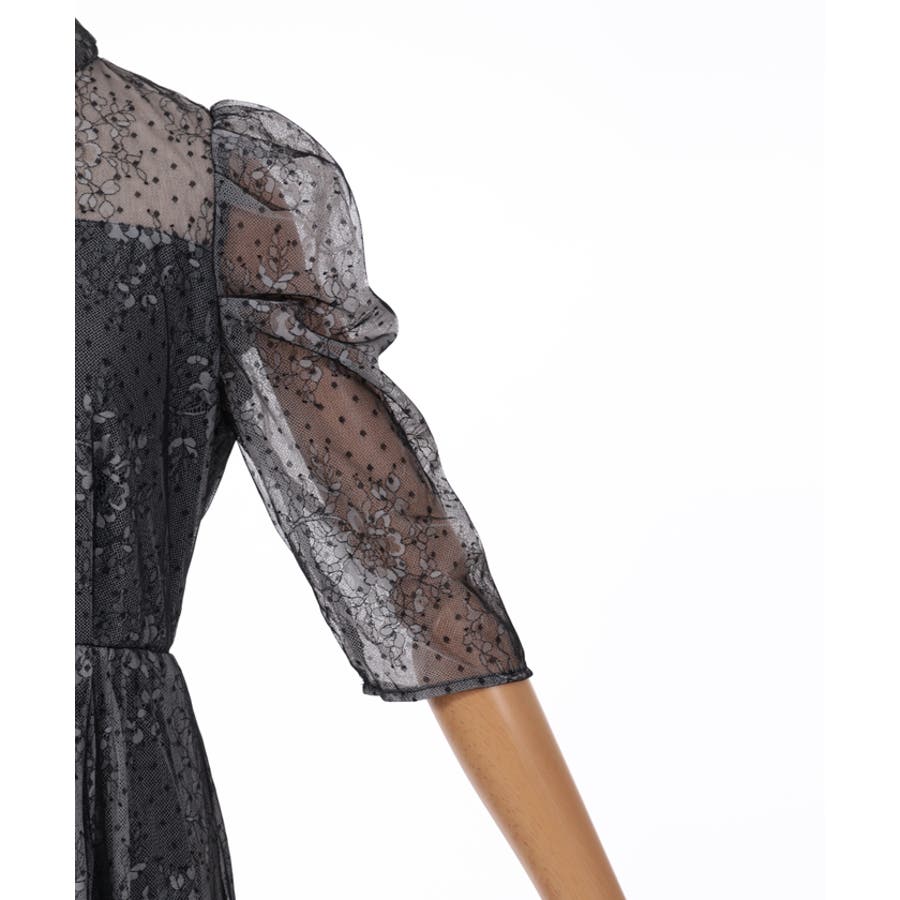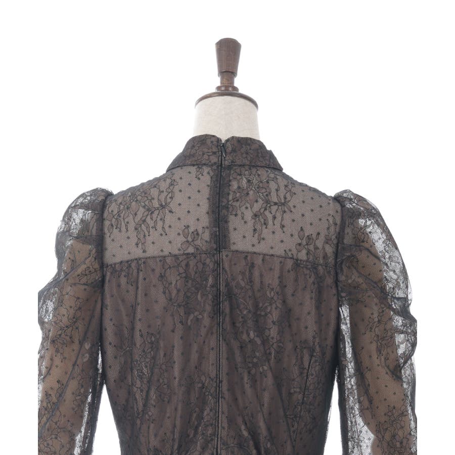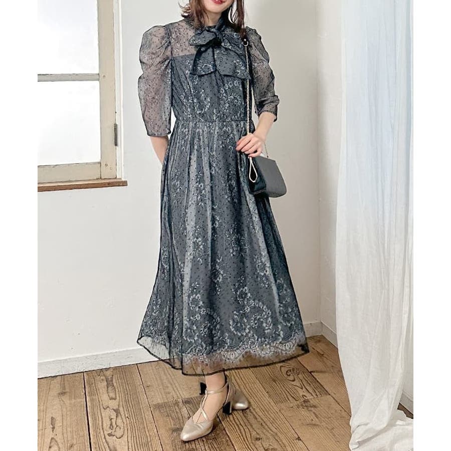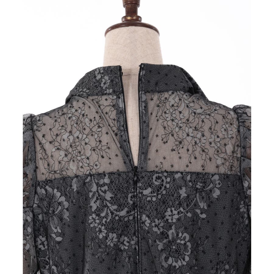 繊細なレースとドットチュールの重なりが美しいドレスです。