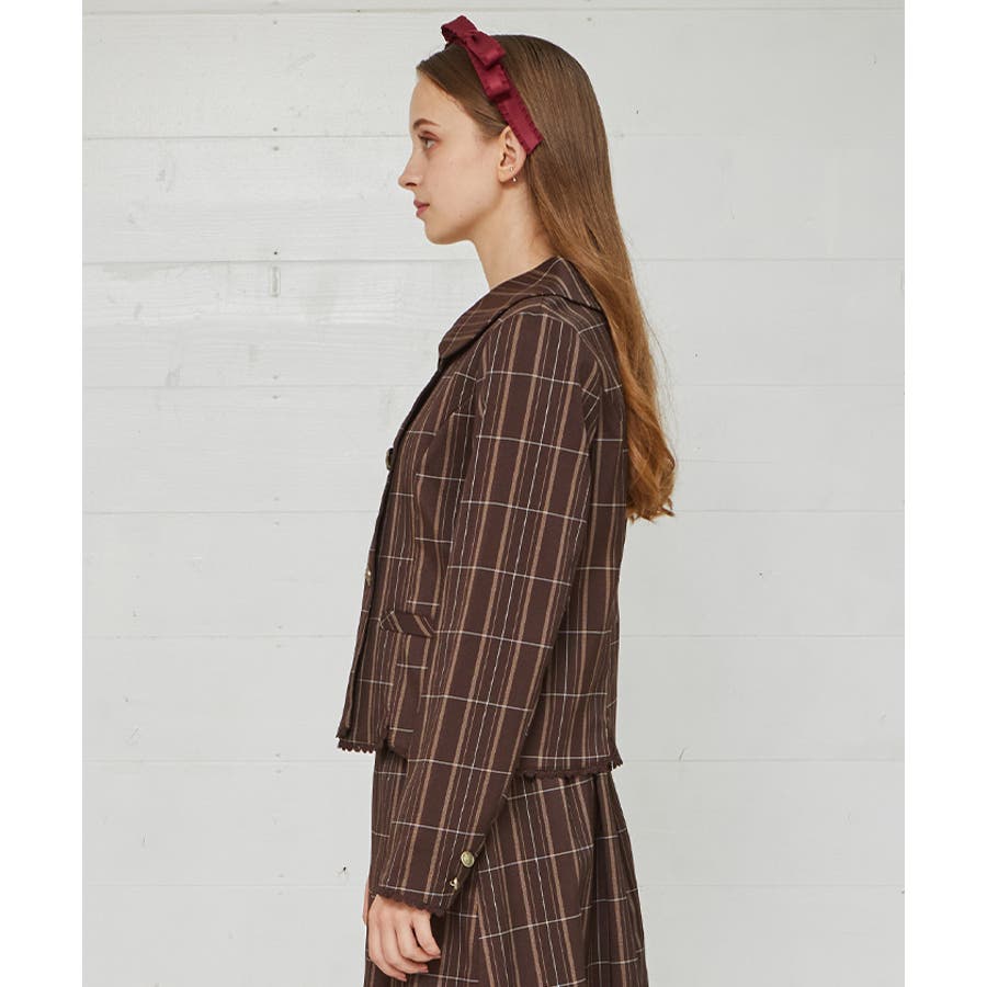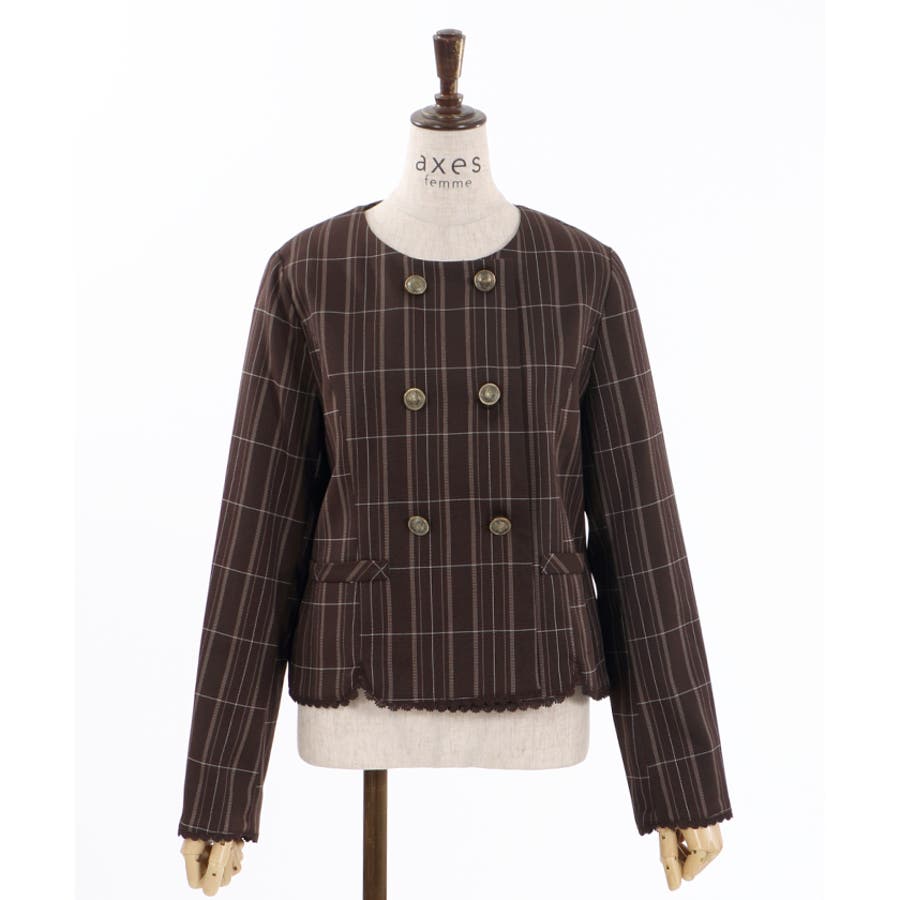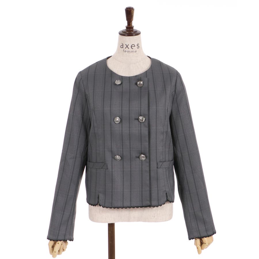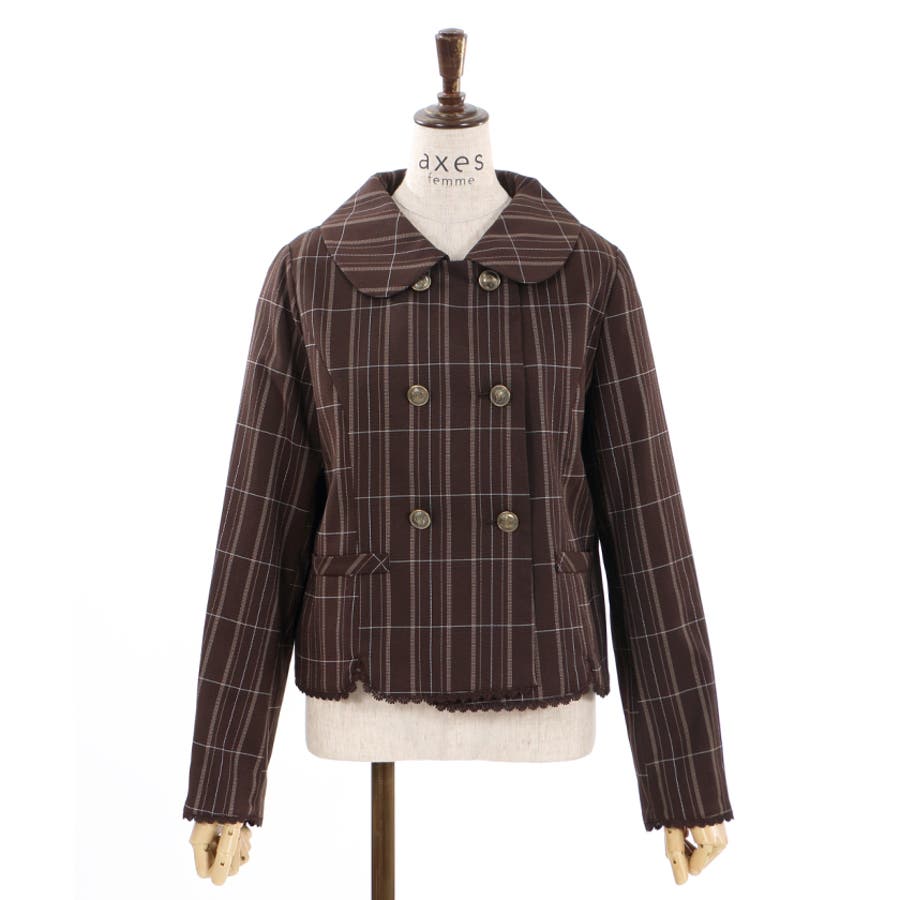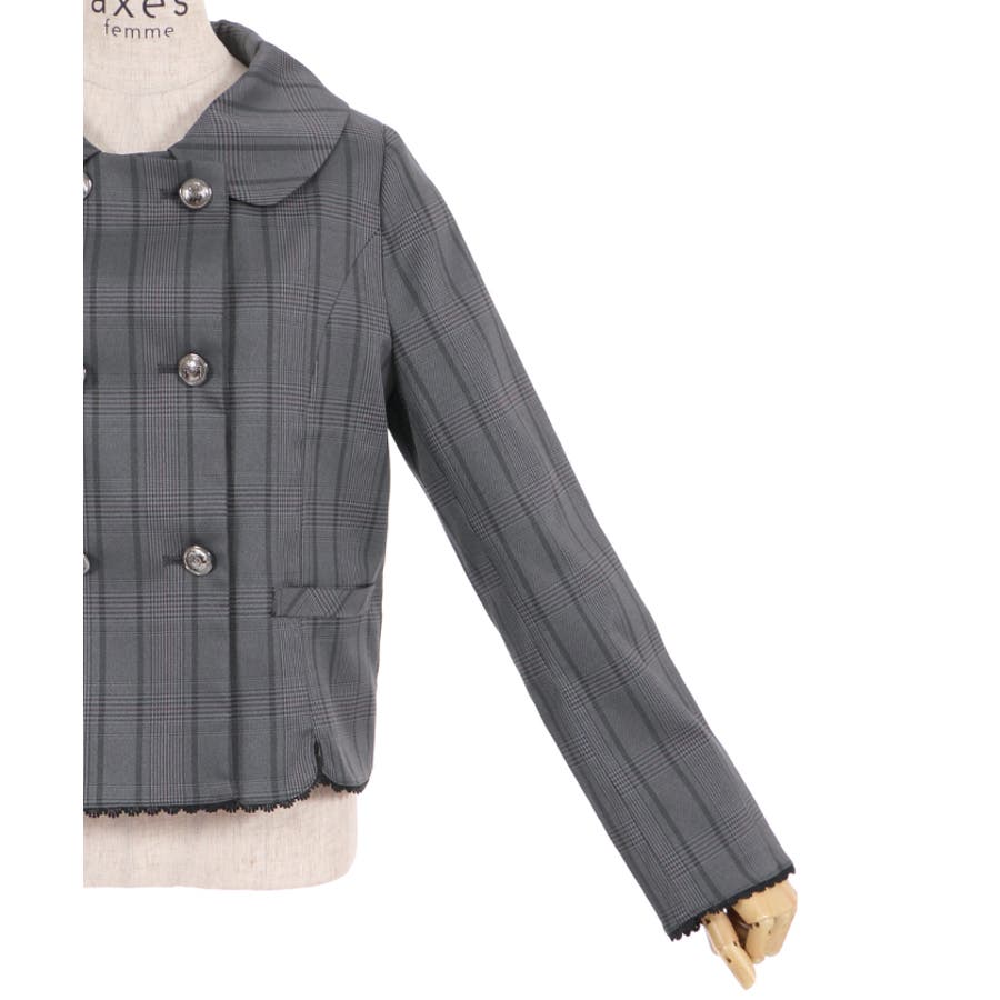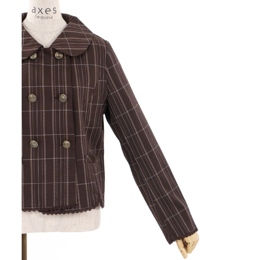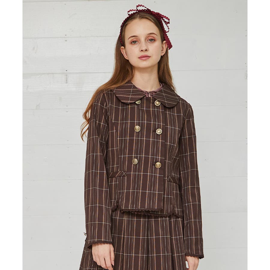ガーリーな丸襟とダブルボタン使いがポイントのジャケットです。