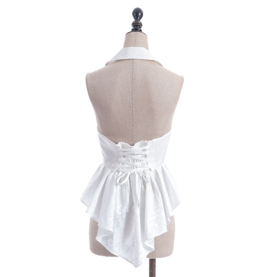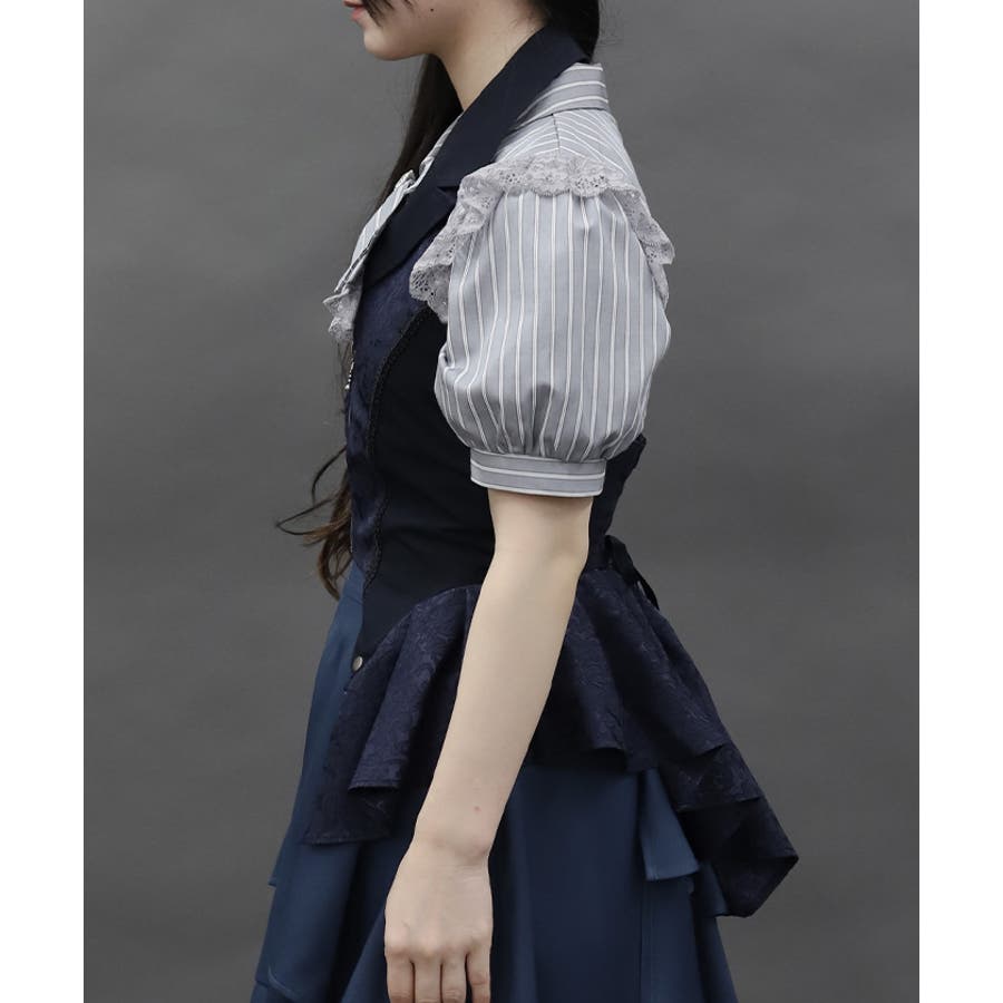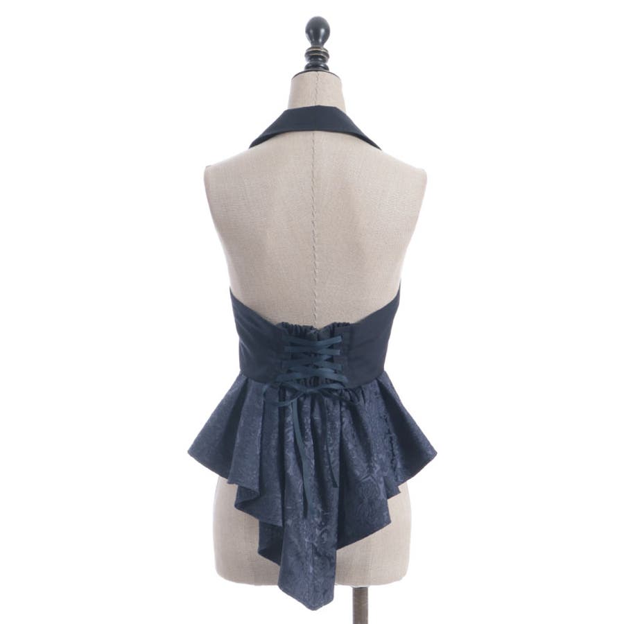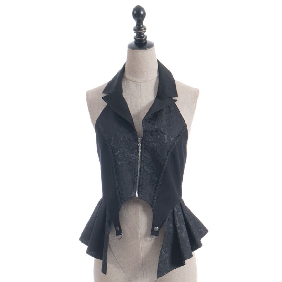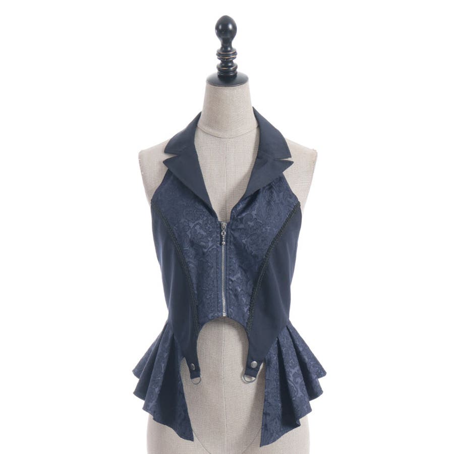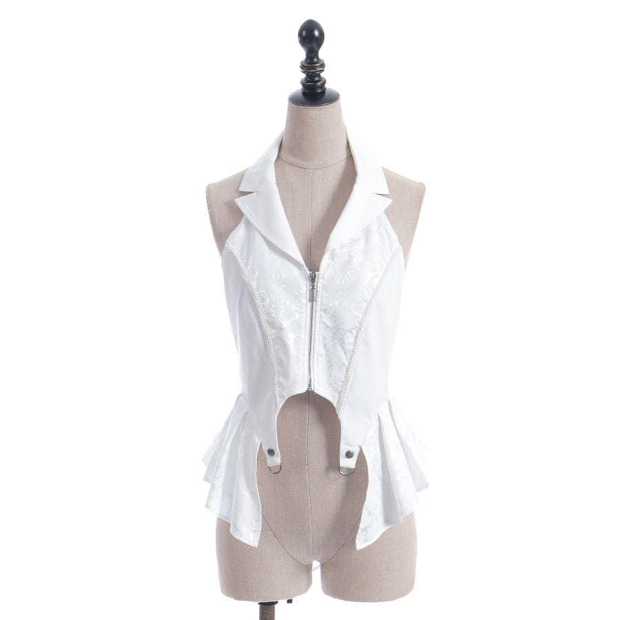 ジャカード生地と無地生地を掛け合わせたショートベストです。