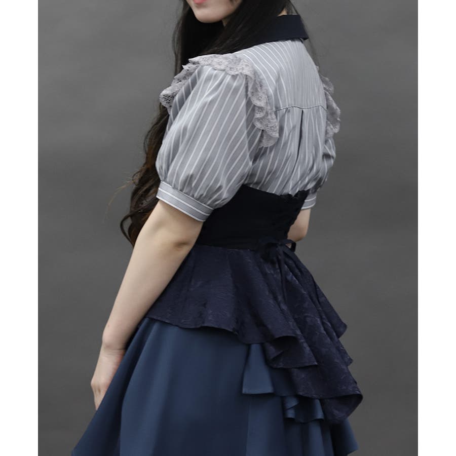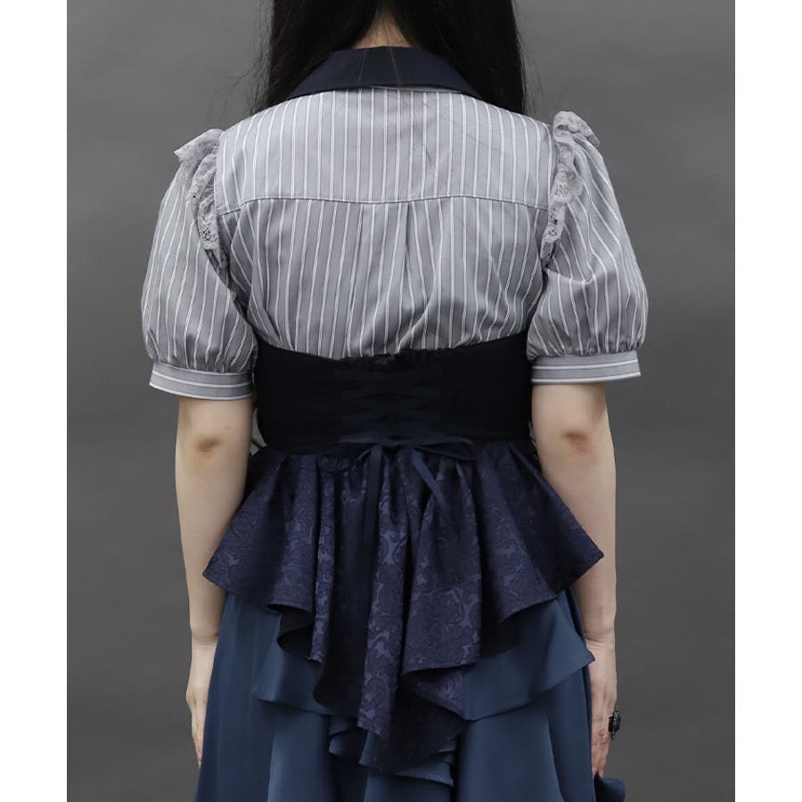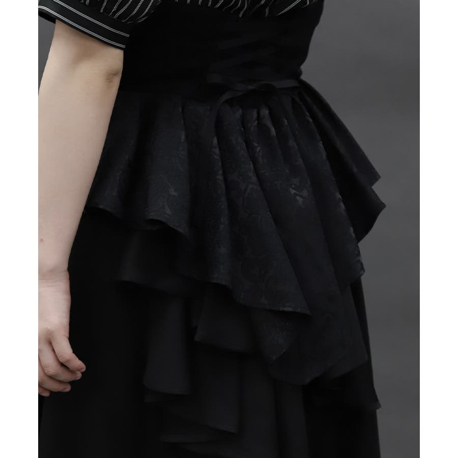 ガーター風のデザインとペプラムフリルがアクセントになりコーデを華やかさをプラスします。