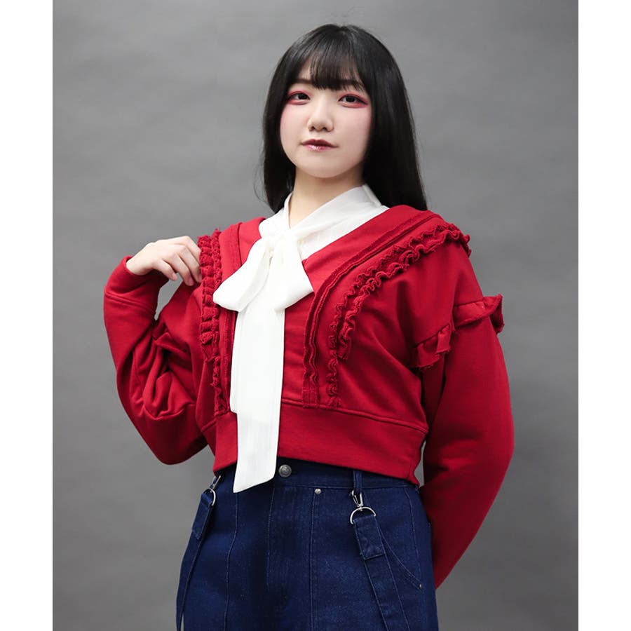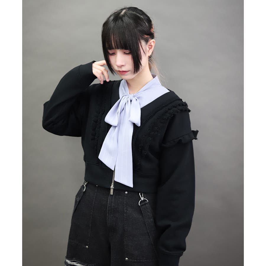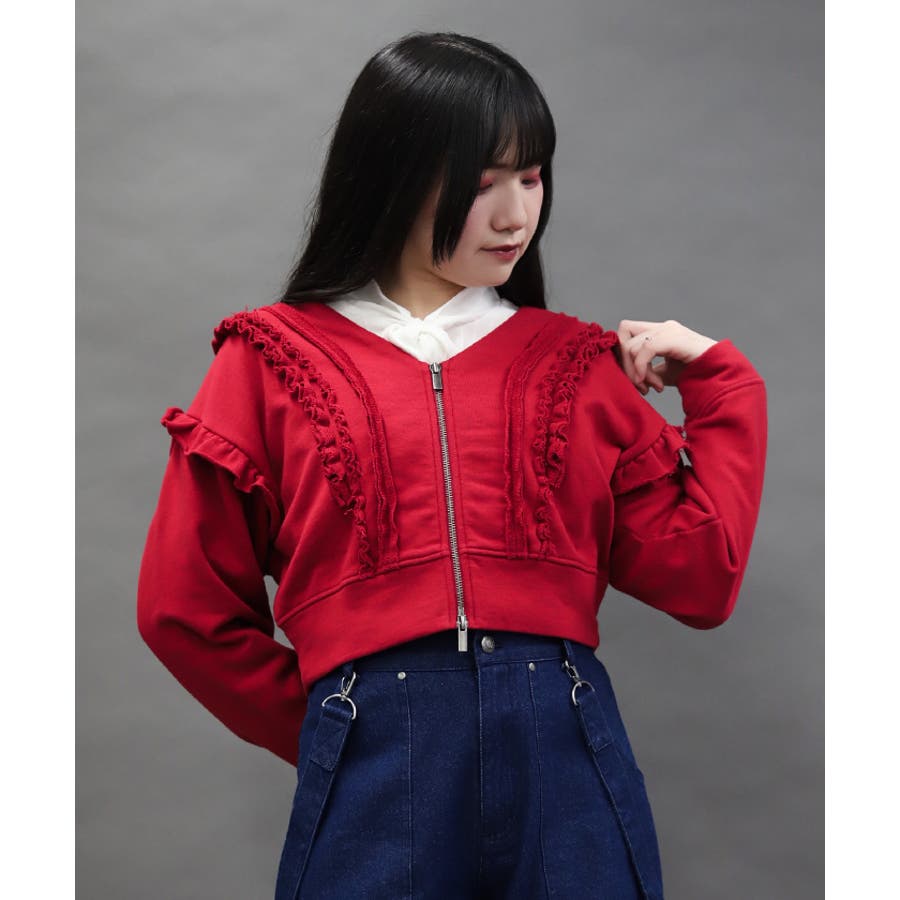 ダメージ加工の入ったフリルが辛口なアクセントになっています。