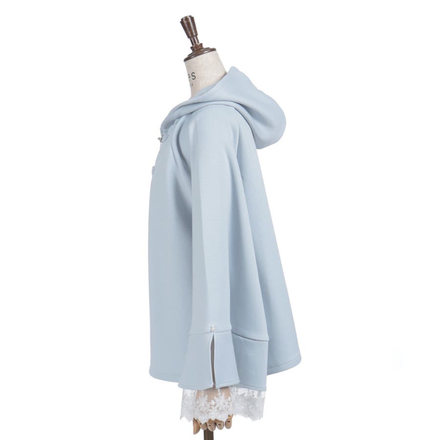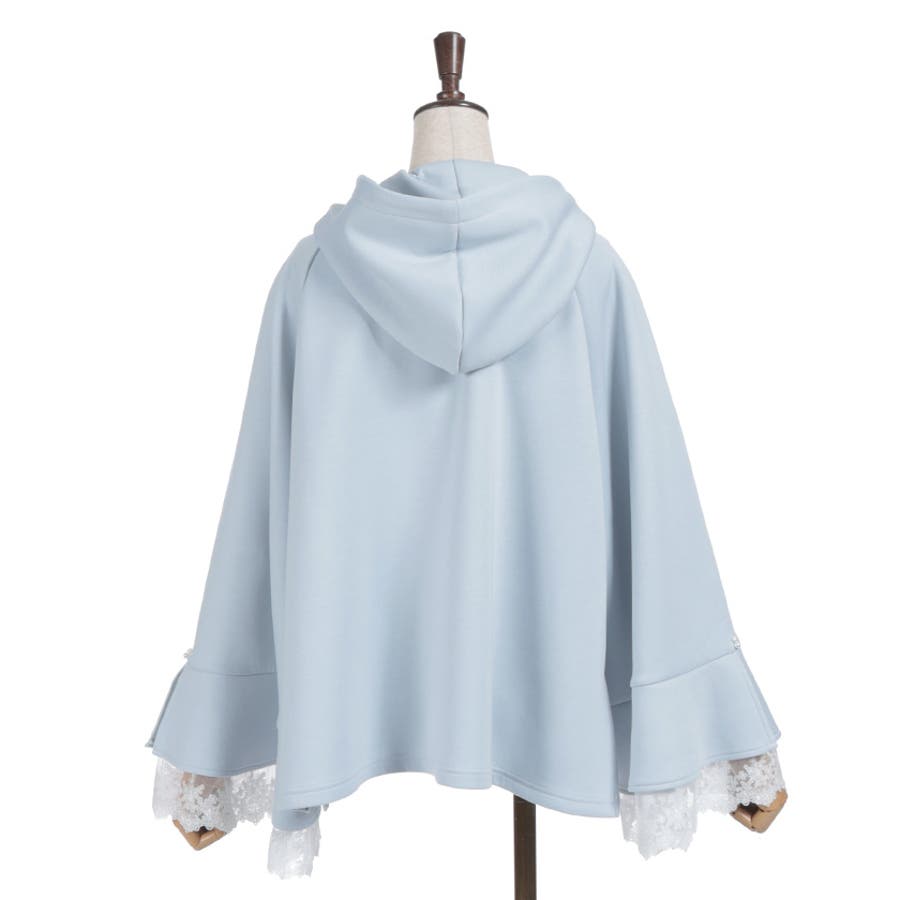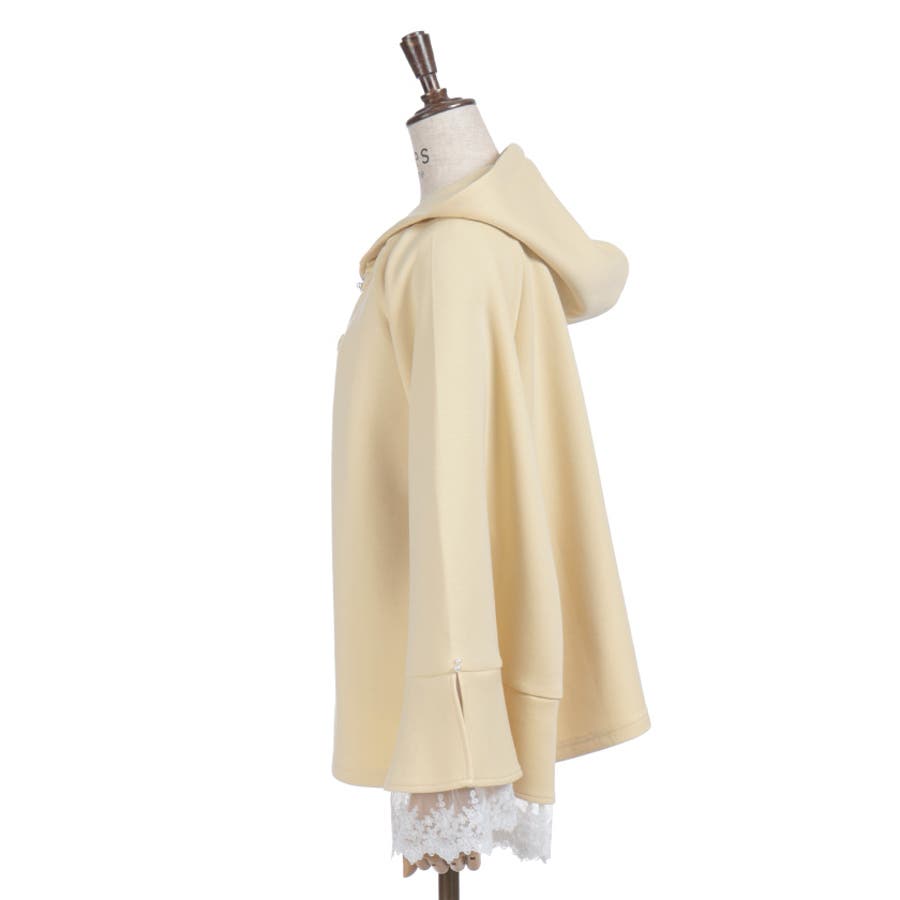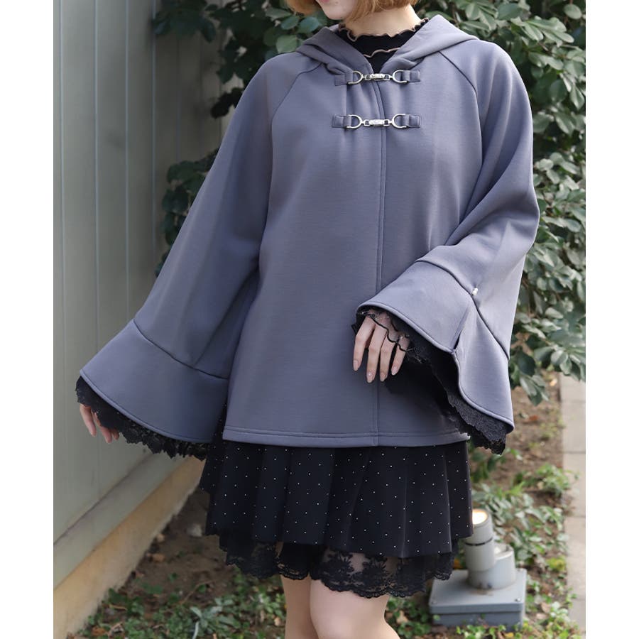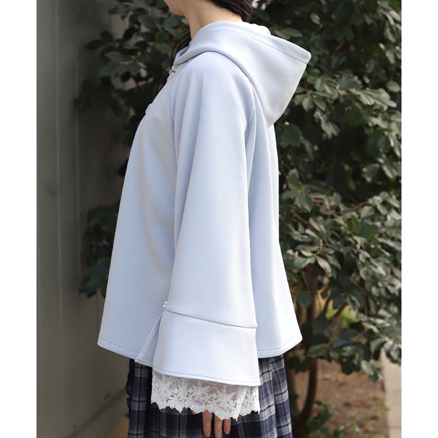 フレア展開のふわっと広がるベルスリーブから、繊細なチュール刺繍レースが覗くデザイン。