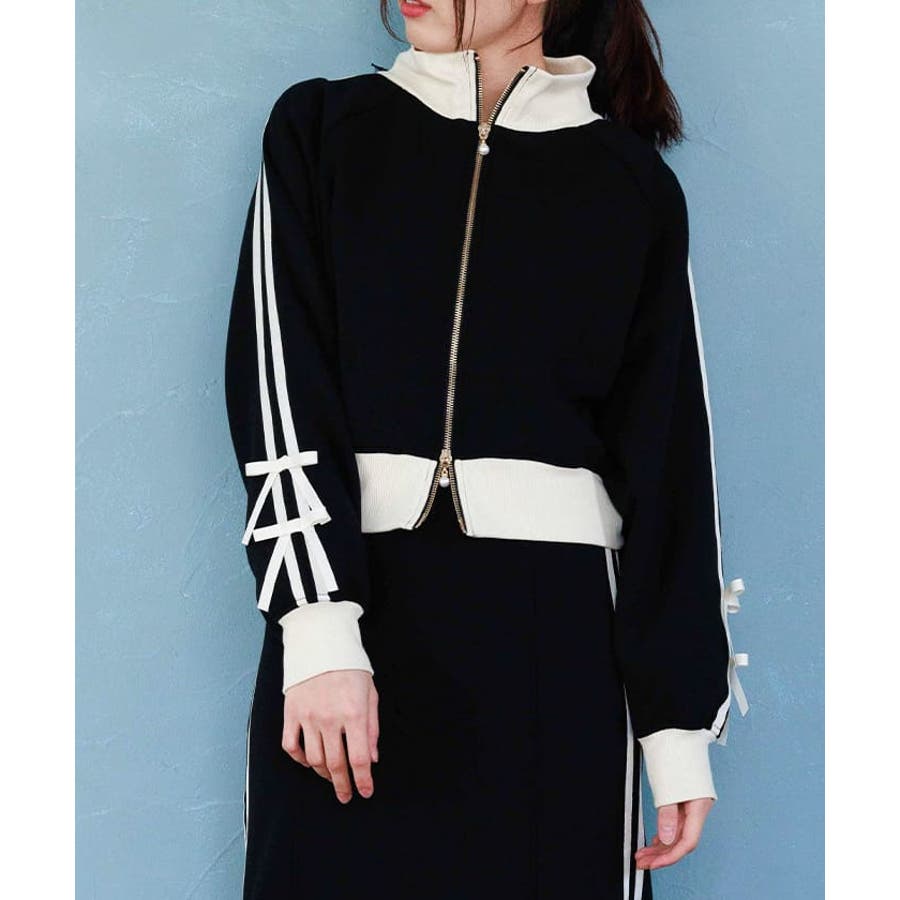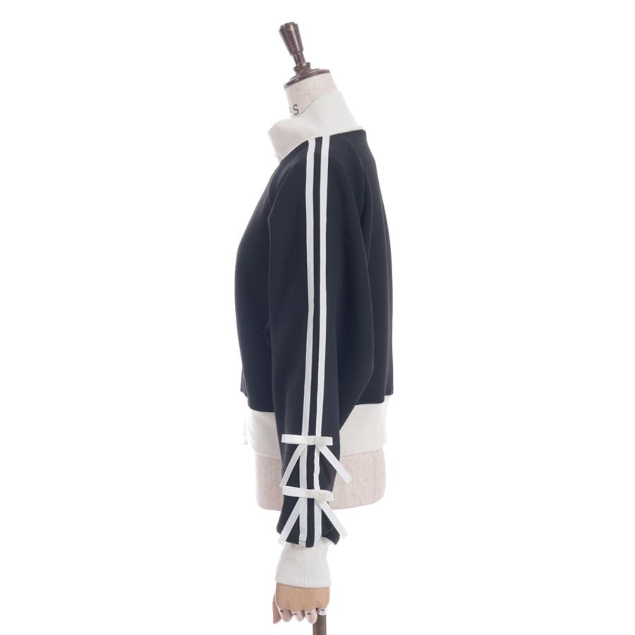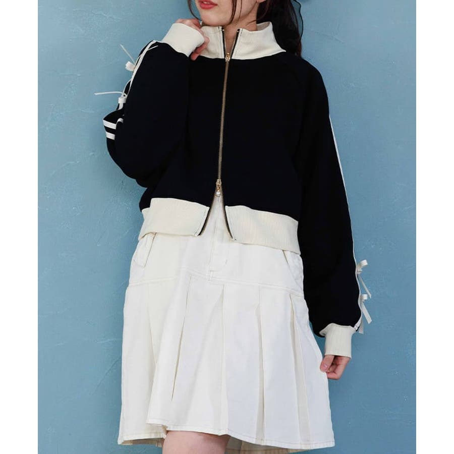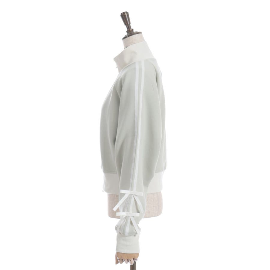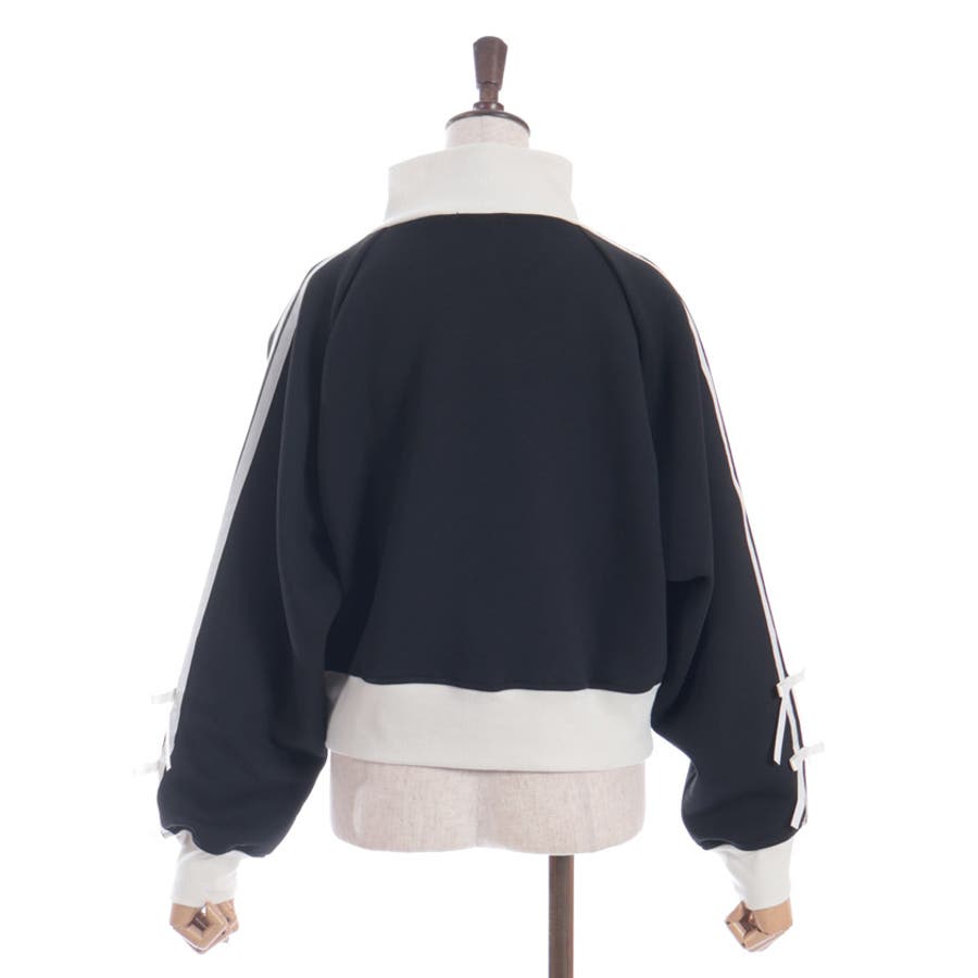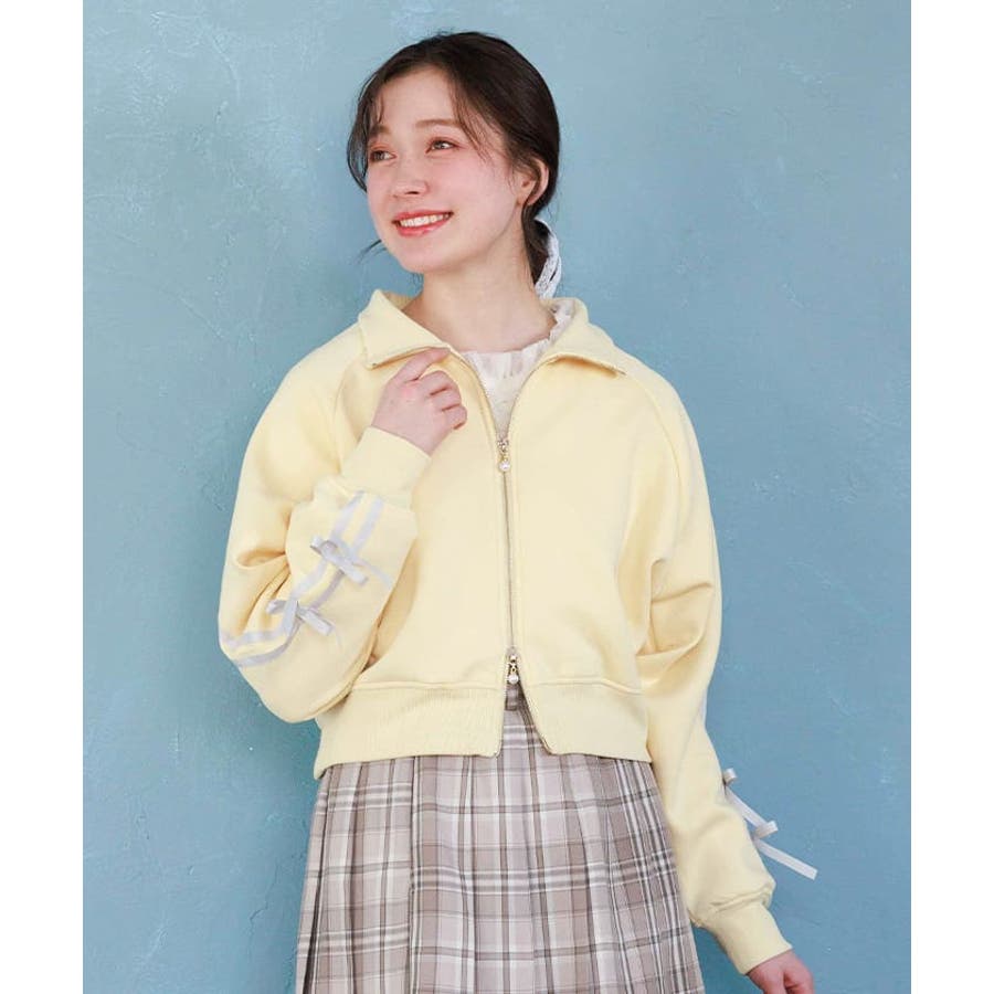 袖のライン×リボンディティールがワンポイントです。ふっくらとしたやわらかく優しい手触りが魅力的なアイテム。