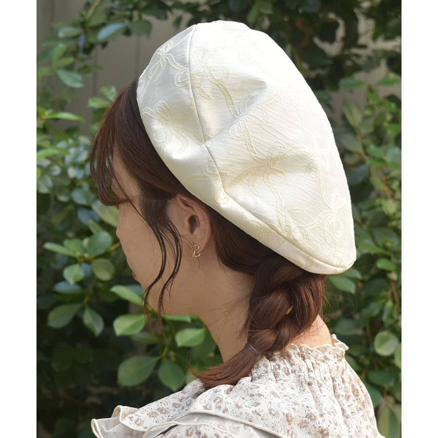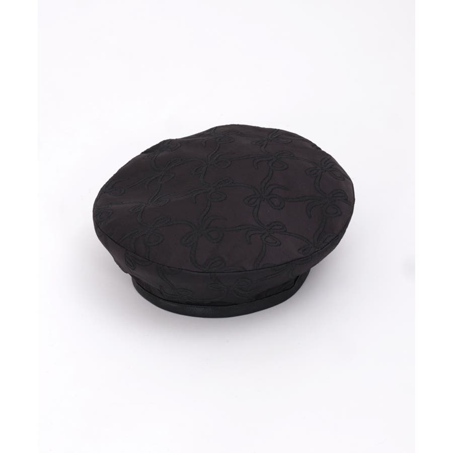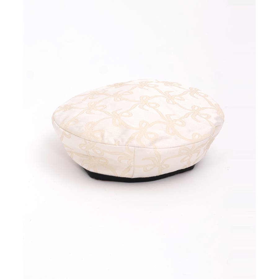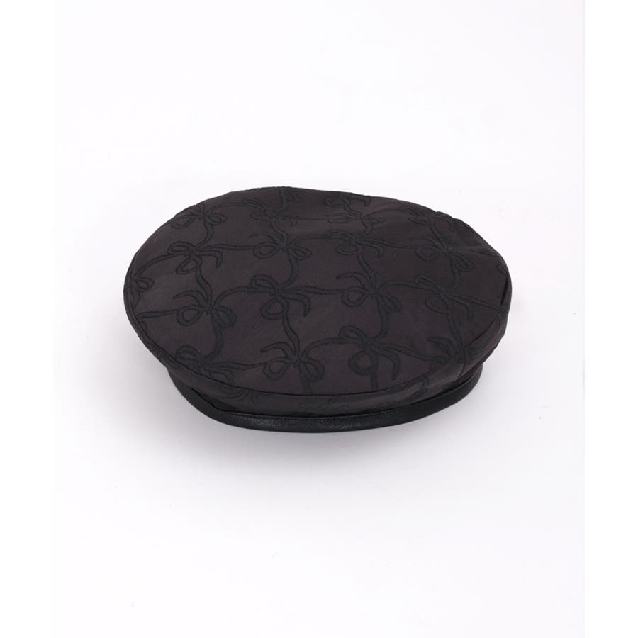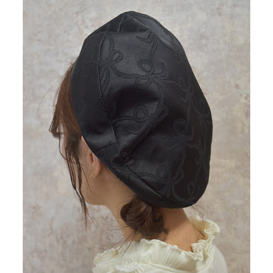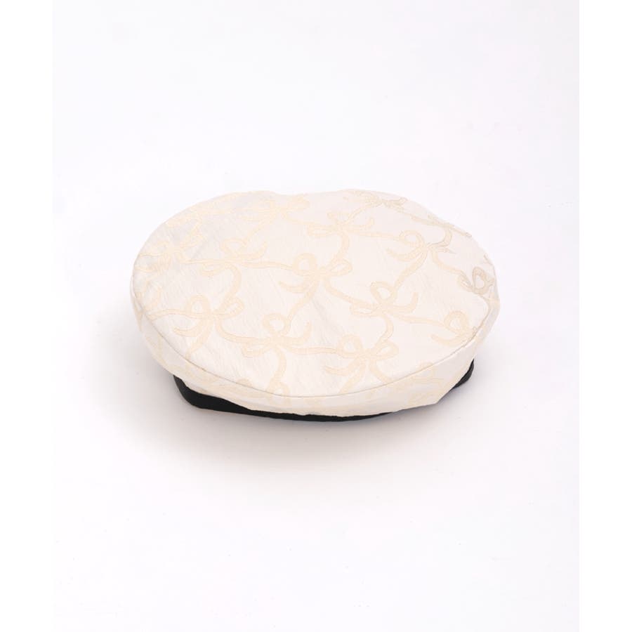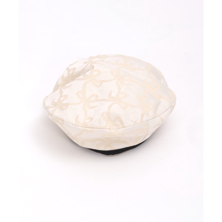 光沢が美しいジャガード生地にリボンの総柄を組み合わせたデザイン。