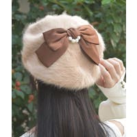 【黒】リボン柄ジャガードベレー