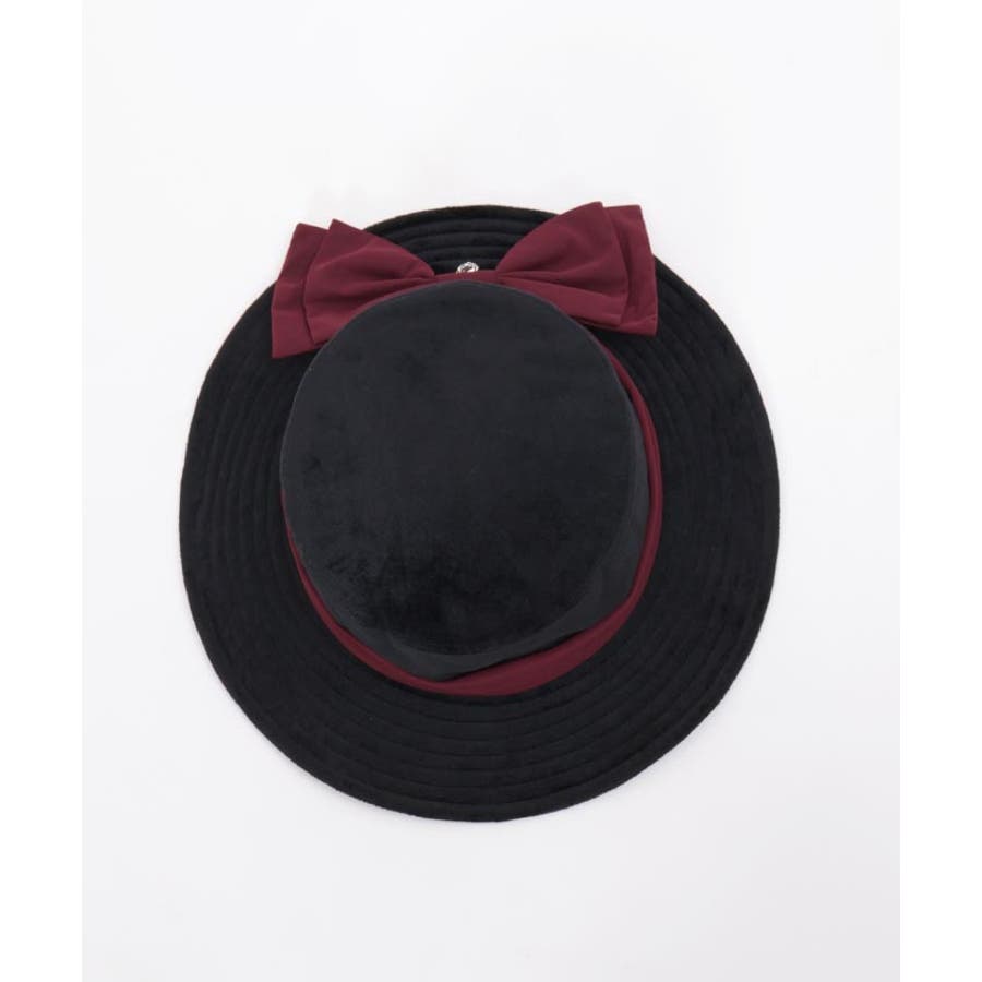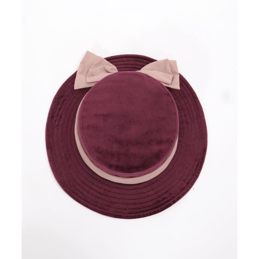 秋らしさと上品さが漂うベロアハットに大きめリボンを合わせた、レディライクな装いにぴったりのアイテム。
