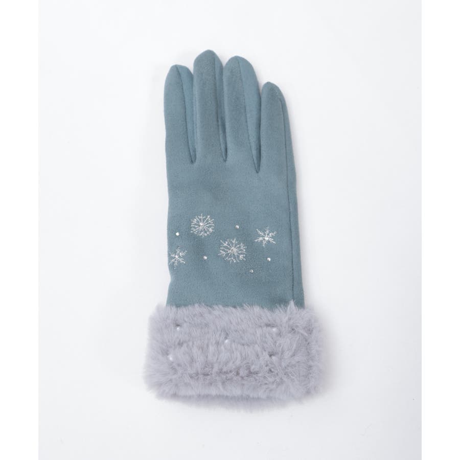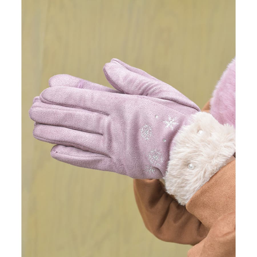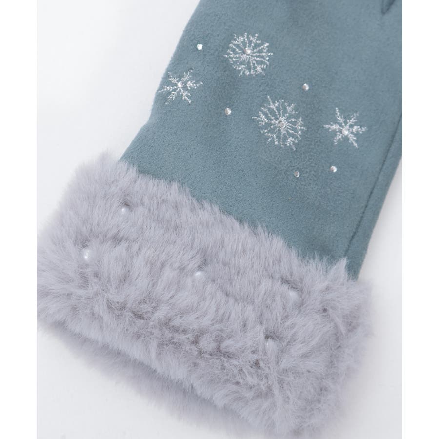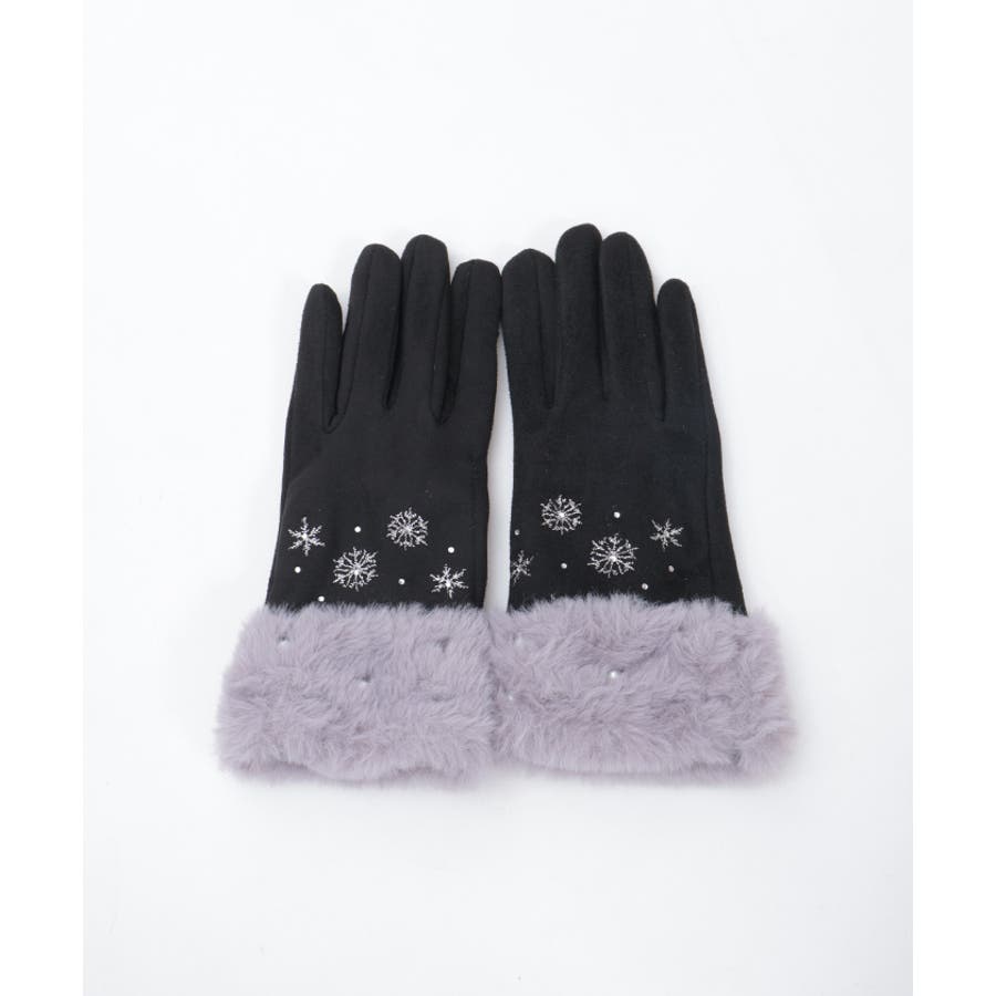 雪の結晶があしらわれた刺繍デザインの手袋です。