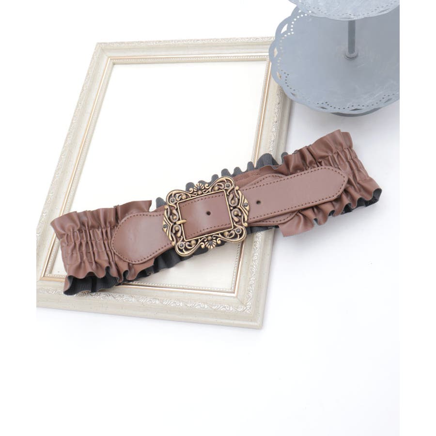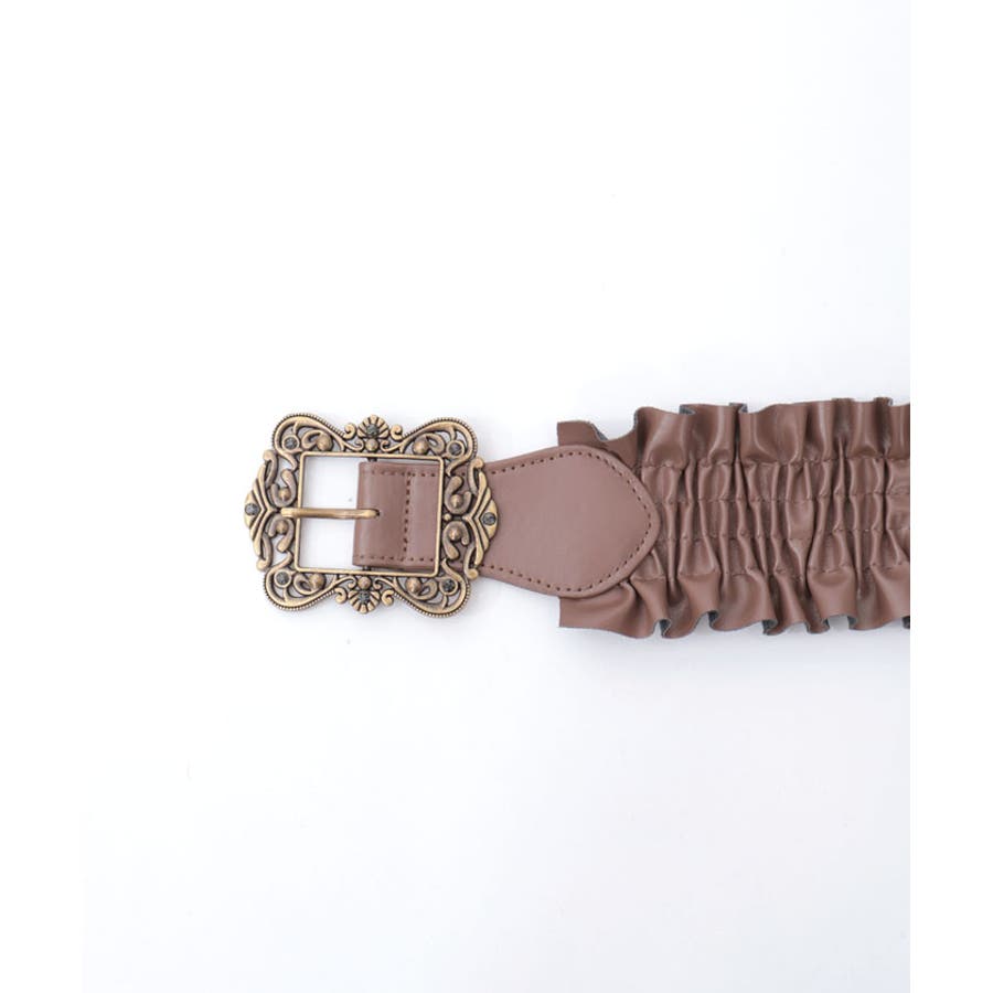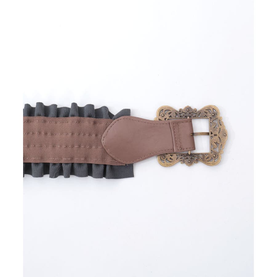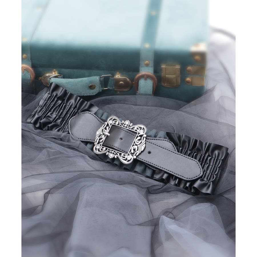 アンティークで繊細なデザインのバックルと、フリルが特徴的なゴムベルトです。