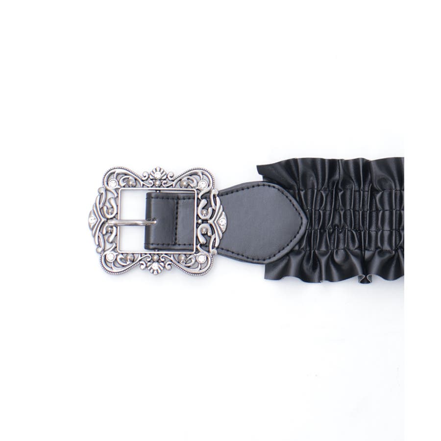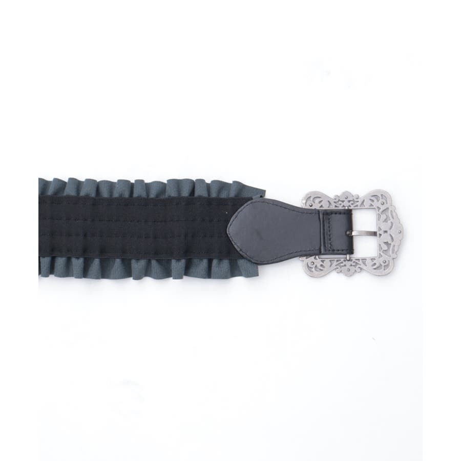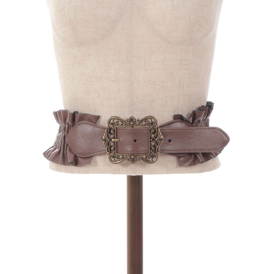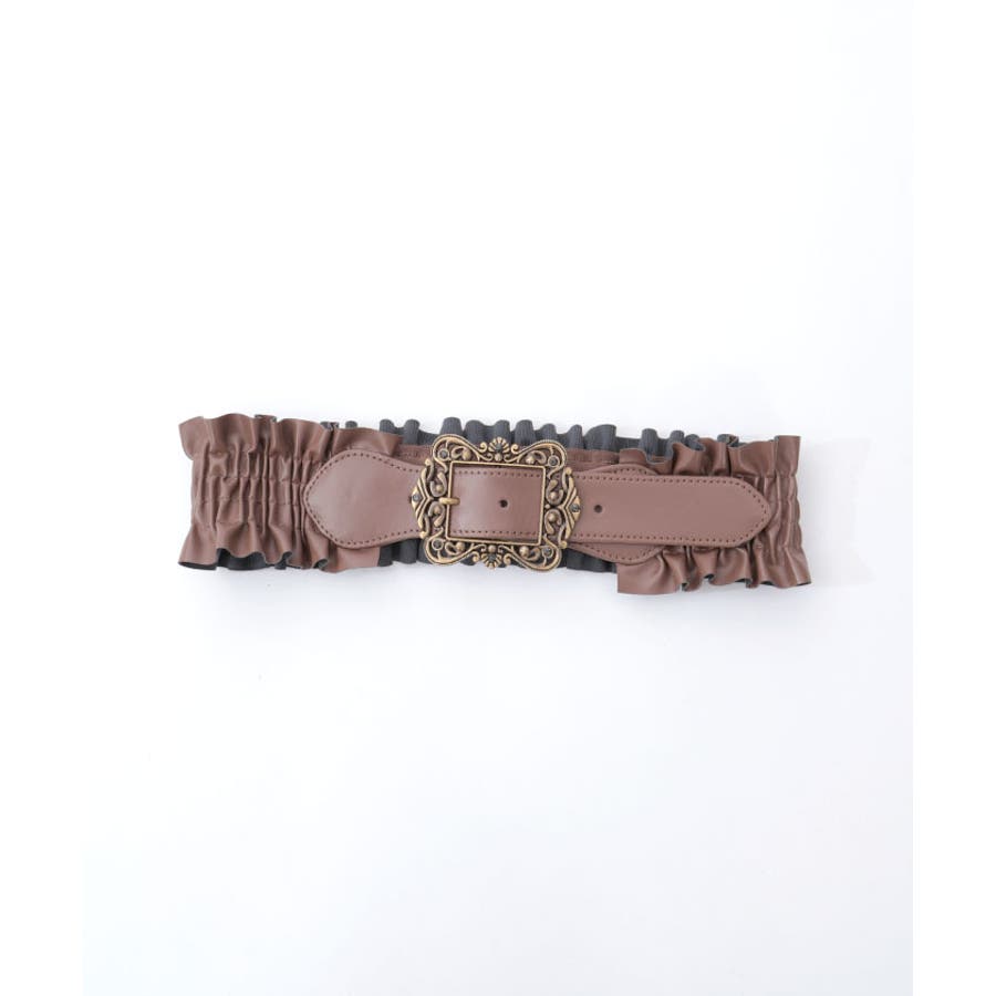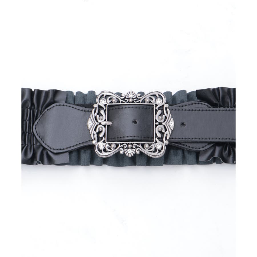 アンティークで繊細なデザインのバックルと、フリルが特徴的なゴムベルトです。
