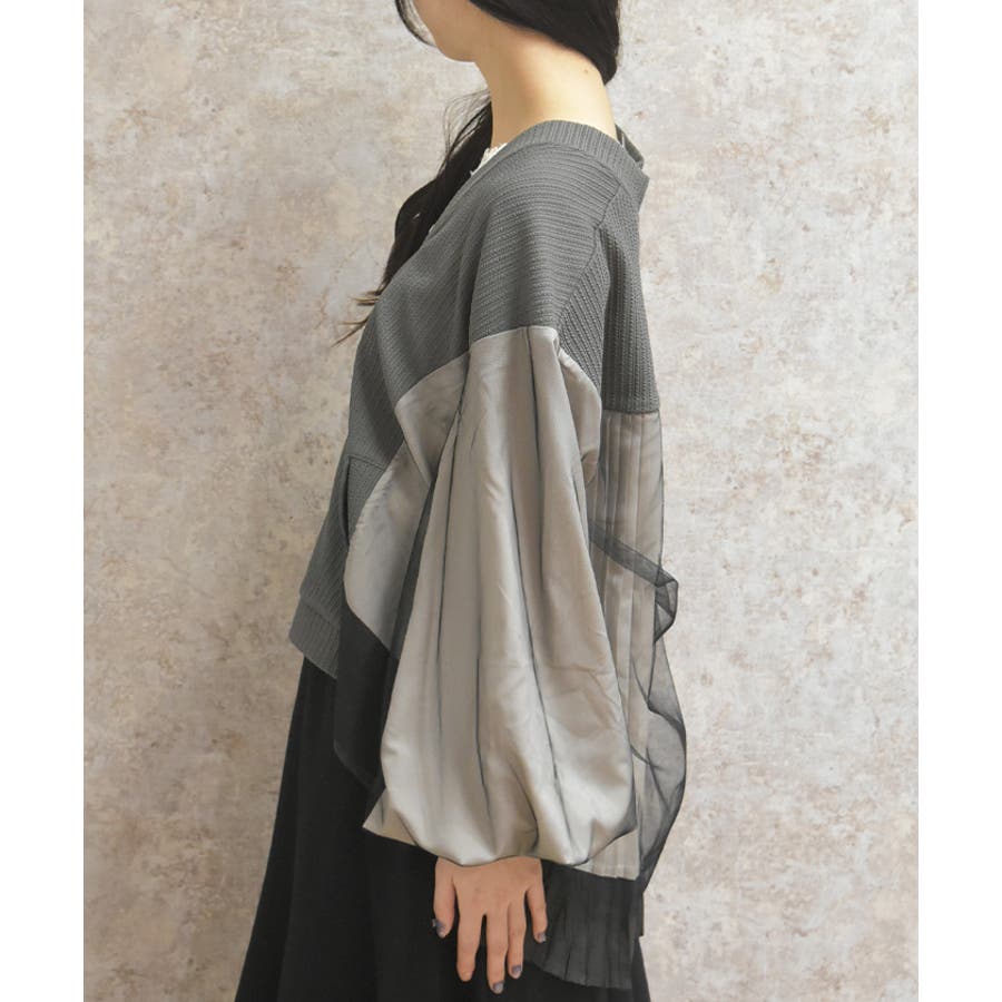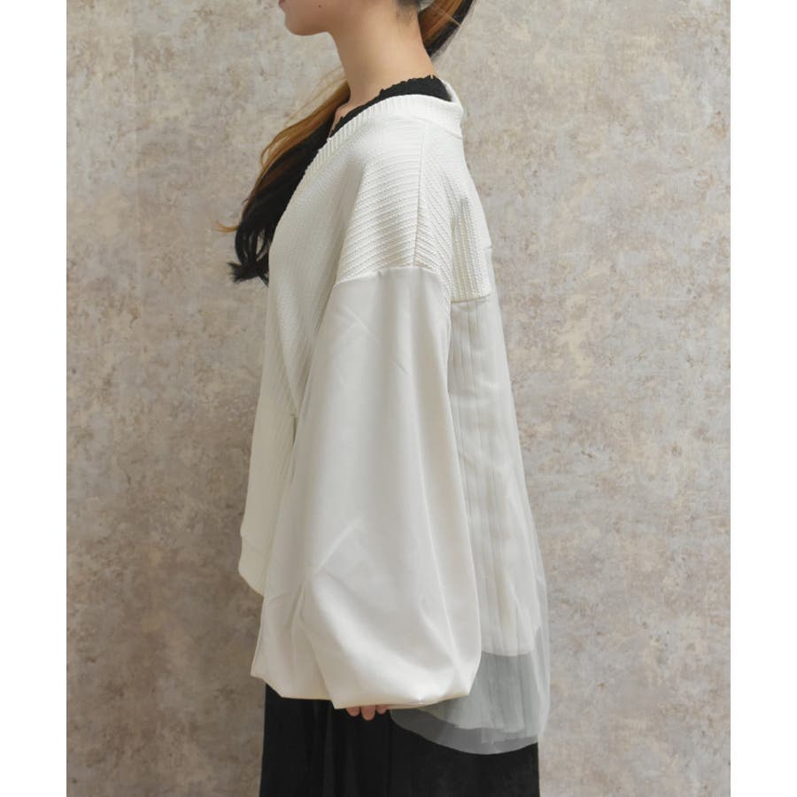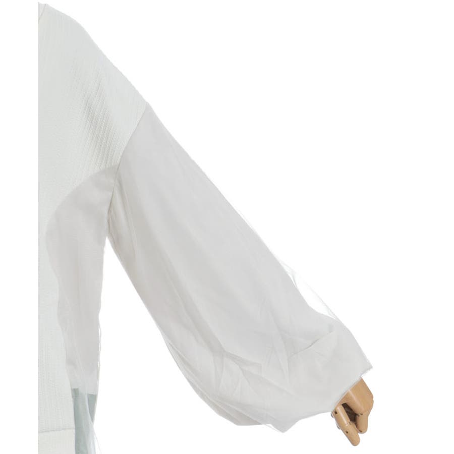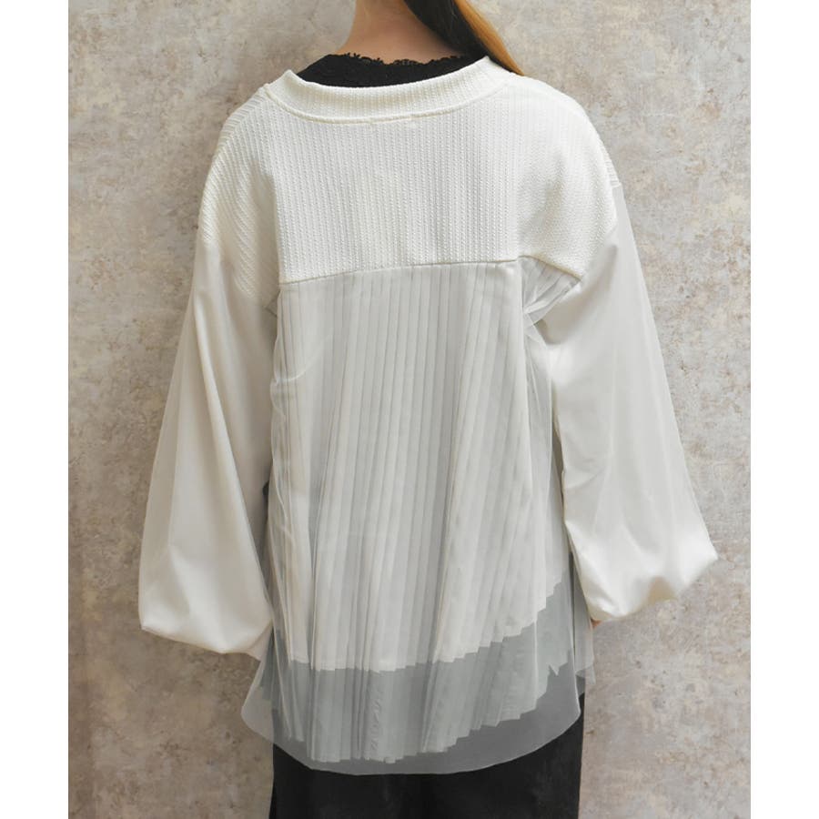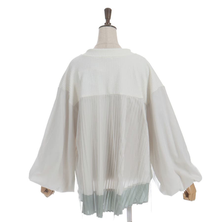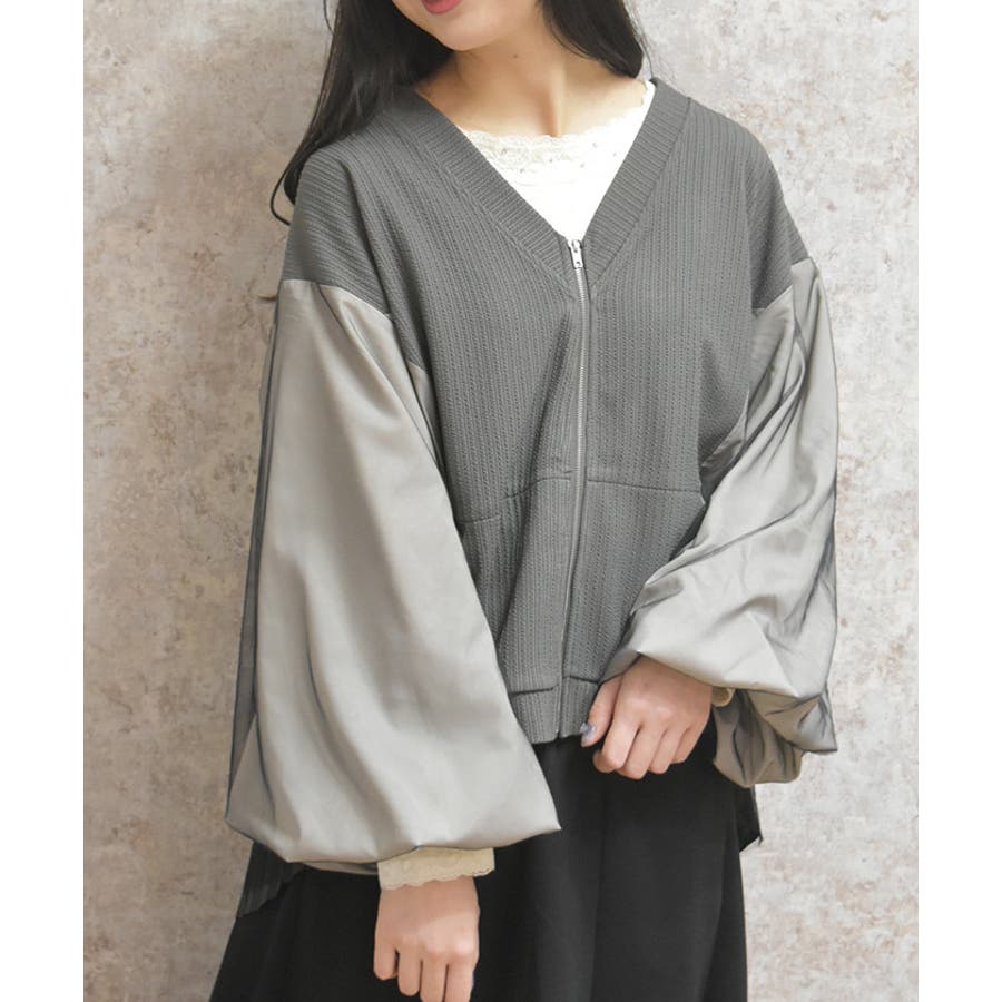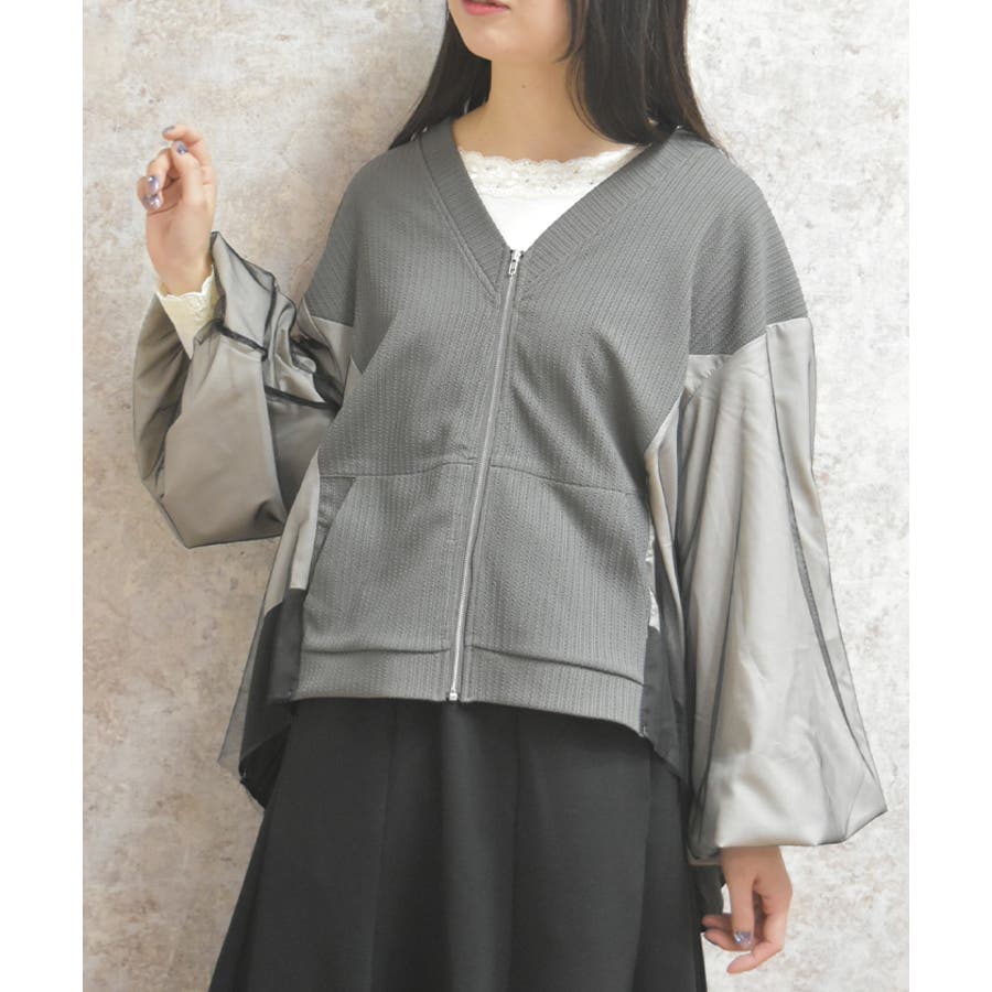 軽やかなチュール切替が目を引く、さっと羽織るだけで雰囲気が変わるデザインカーディガン。