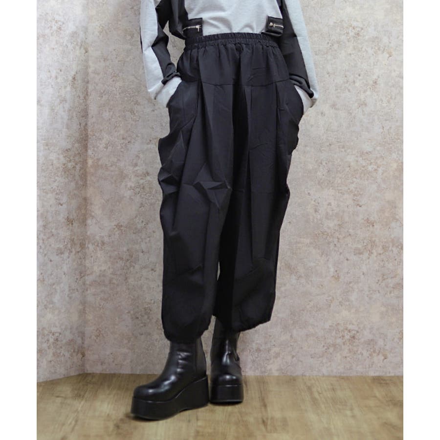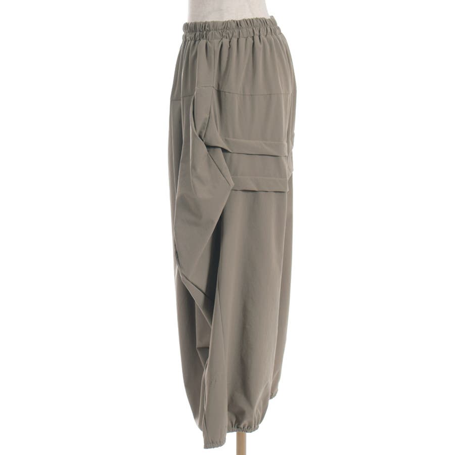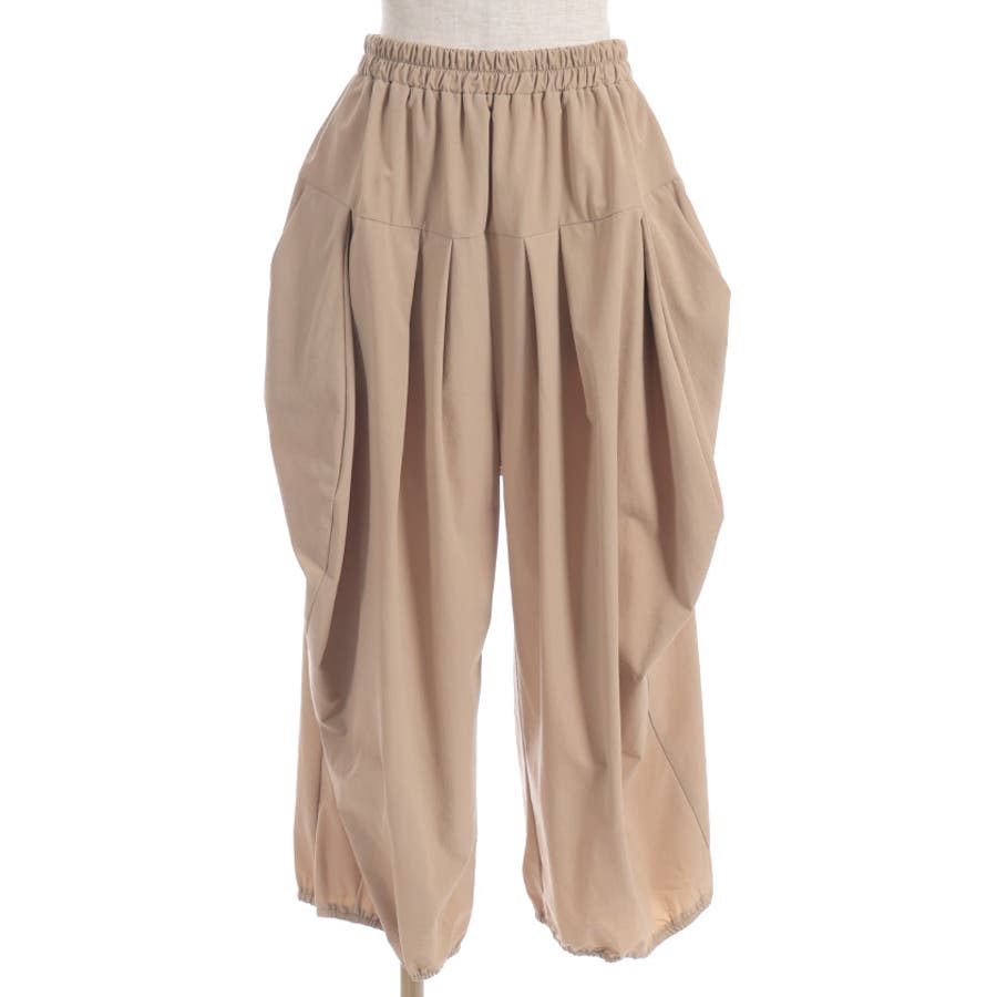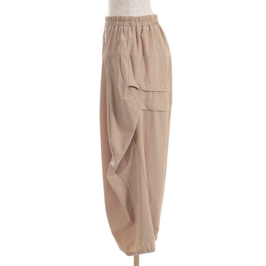ウエスト部分にはタックが施されており、程よくゆとりのあるシルエットを実現。裾に向かって程よくすぼまるデザインが、こなれ感を演出しつつバランスの取れたスタイルを叶えます。ウエストはゴム仕様で、ストレスフリーな履き心地も魅力です。サイドには便利なポケット付きで、実用性も兼ね備えています。