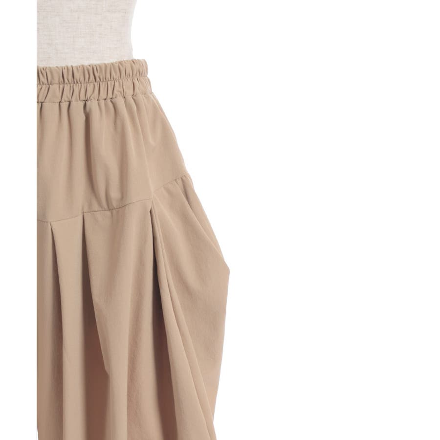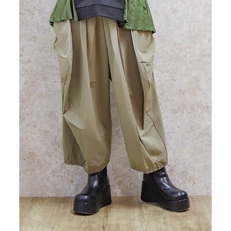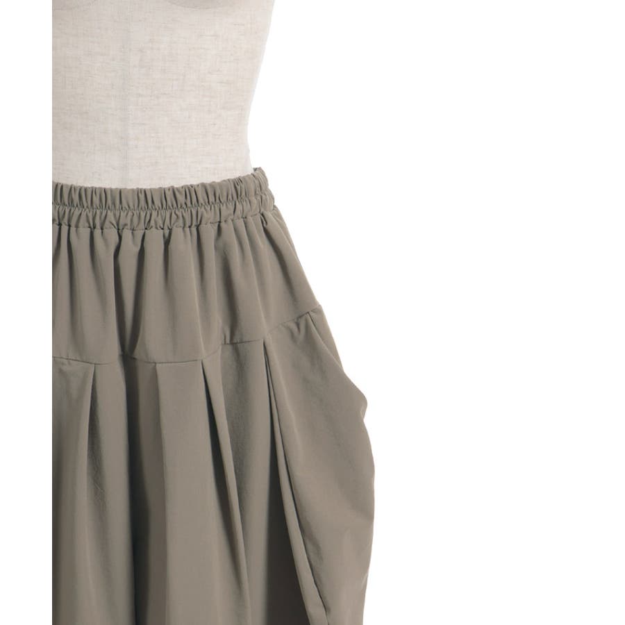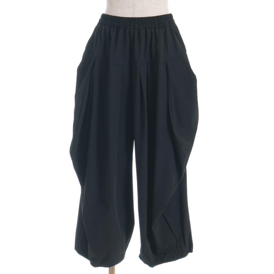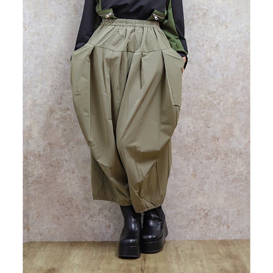 ウエスト部分にはタックが施されており、程よくゆとりのあるシルエットを実現。裾に向かって程よくすぼまるデザインが、こなれ感を演出しつつバランスの取れたスタイルを叶えます。ウエストはゴム仕様で、ストレスフリーな履き心地も魅力です。サイドには便利なポケット付きで、実用性も兼ね備えています。