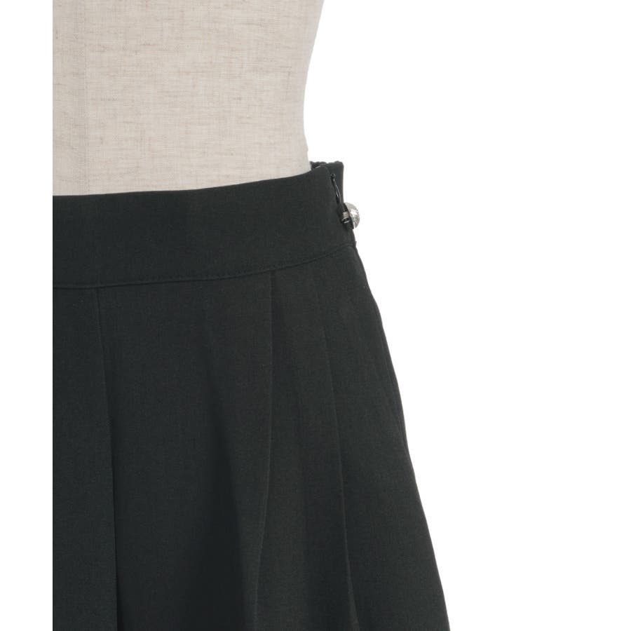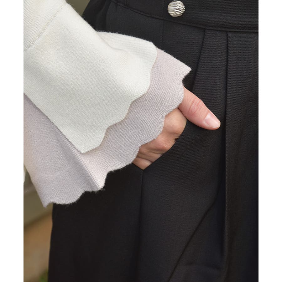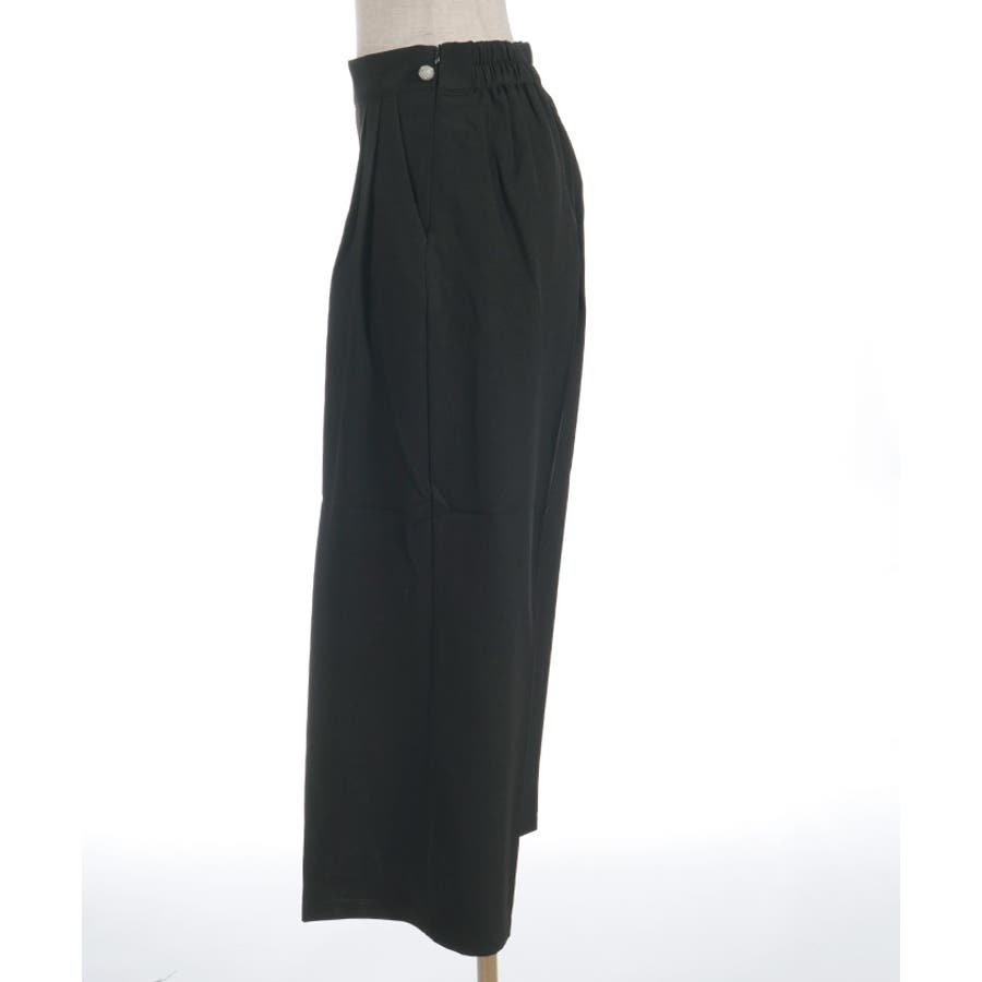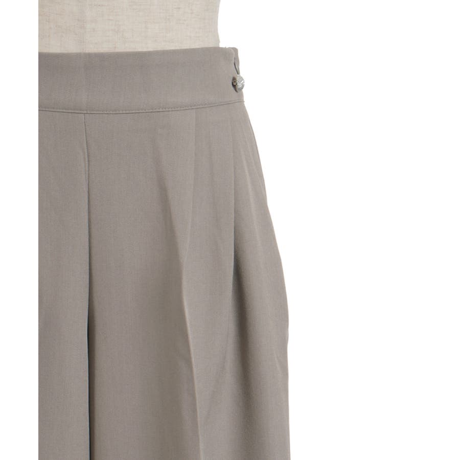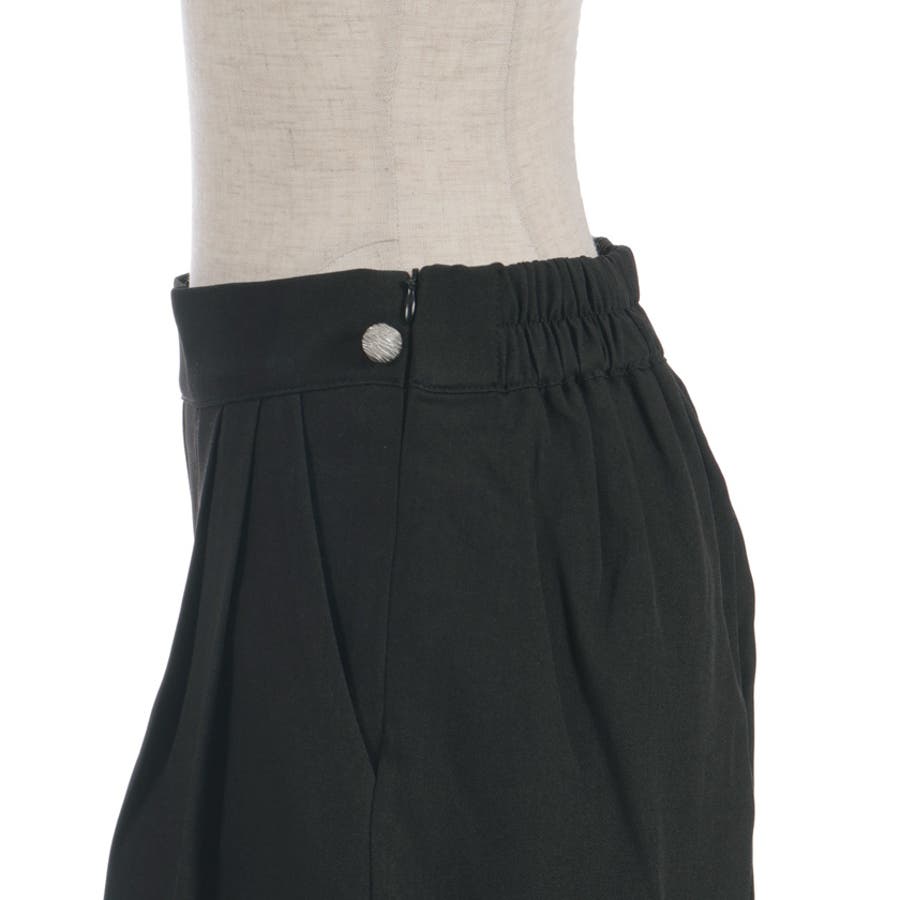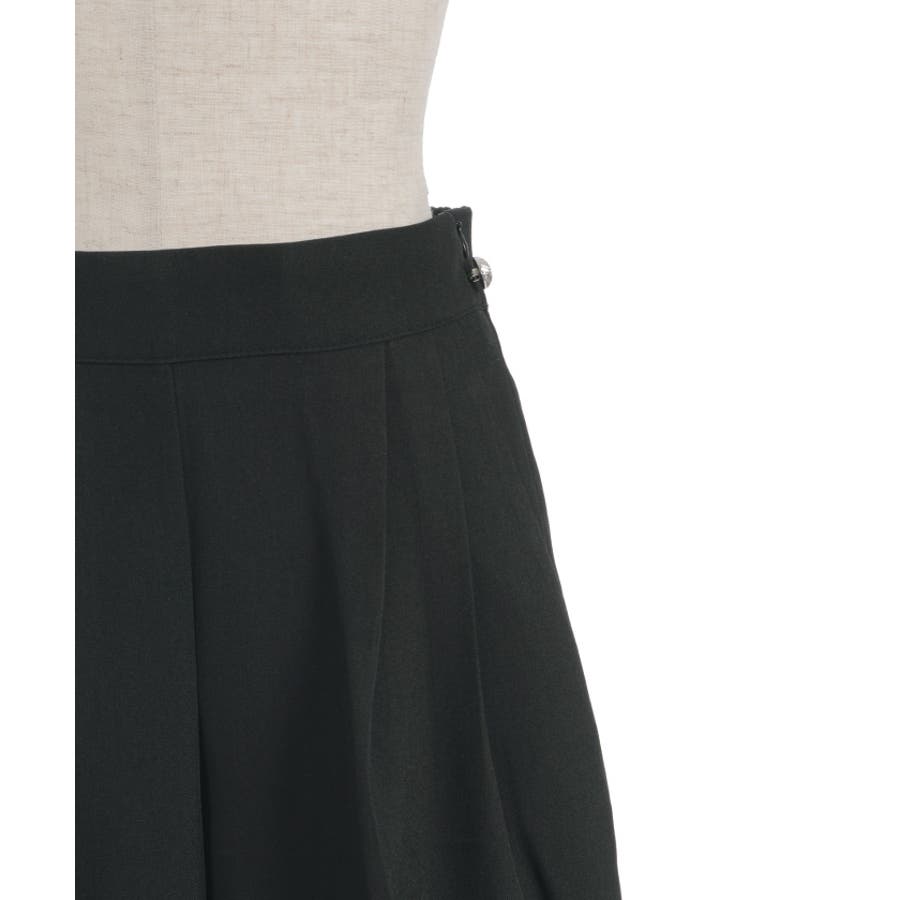 フロントに入れたタックが腰まわりをすっきり見せ、落ち感のあるシルエットで上品に仕上げています。サイドボタンがさりげないアクセントになり、シンプルな中にもデザイン性を感じられる一着です。