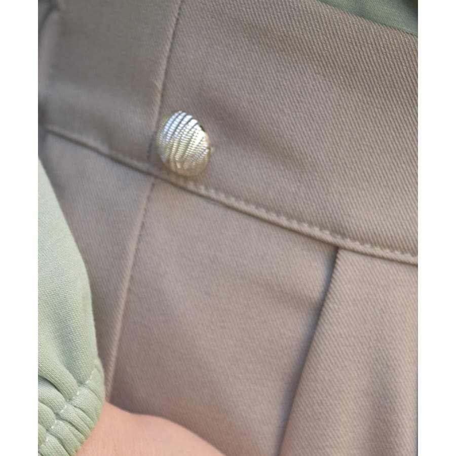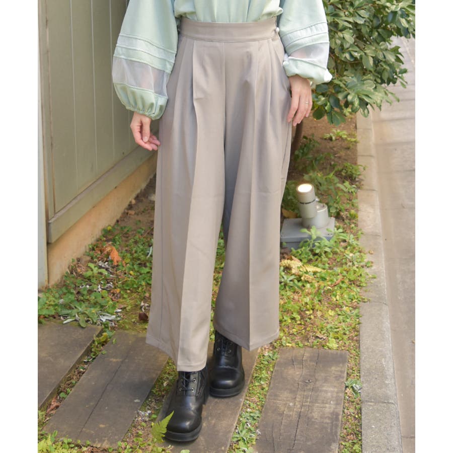 サイドにあしらったボタンディテールが目を引き、きれいめにも取り入れやすいサイドボタンタックパンツ。
