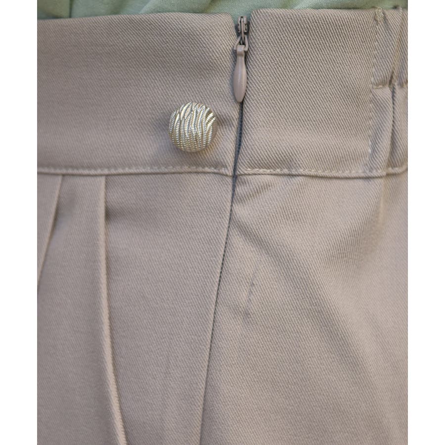 トップスをインしてタックとボタンを見せるとバランスよくまとまり、ブラウスで上品に、カットソーで程よくカジュアルにと幅広く対応。オンオフ問わず活躍し、ワードローブにあると心強いパンツです。
