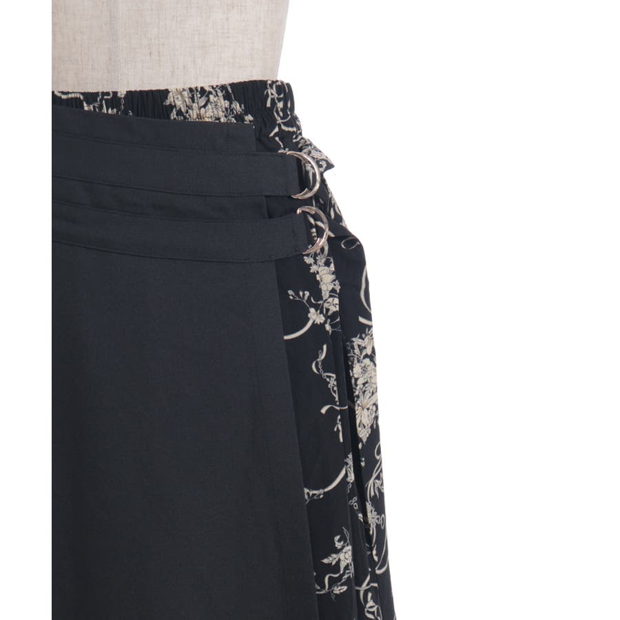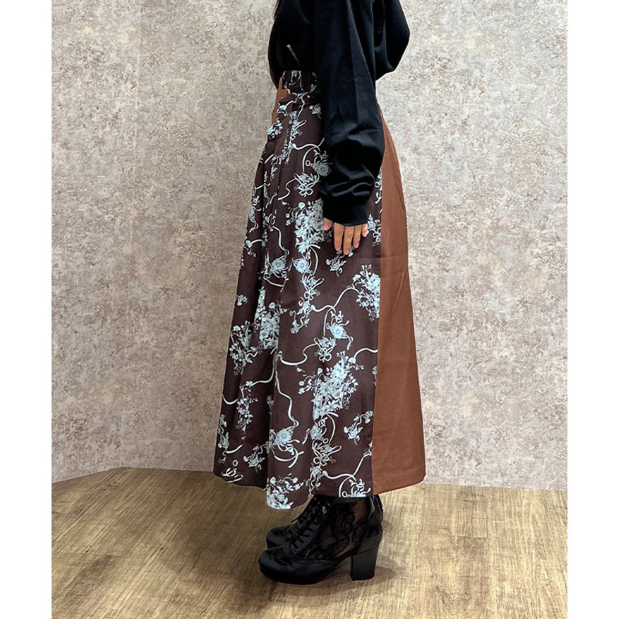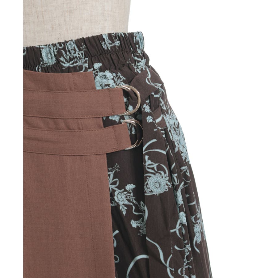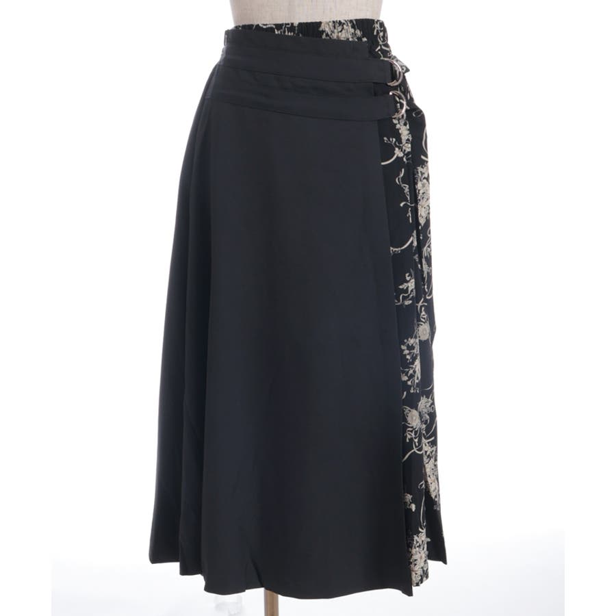 オーナメント柄を大胆に取り入れた、存在感のあるアシメスカート。動きのあるシルエットとベルトデザインがポイントで、コーデの主役になる一枚です。