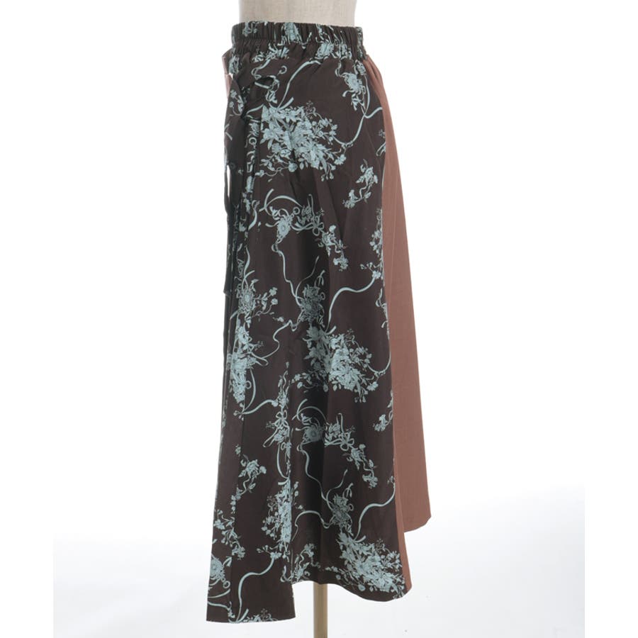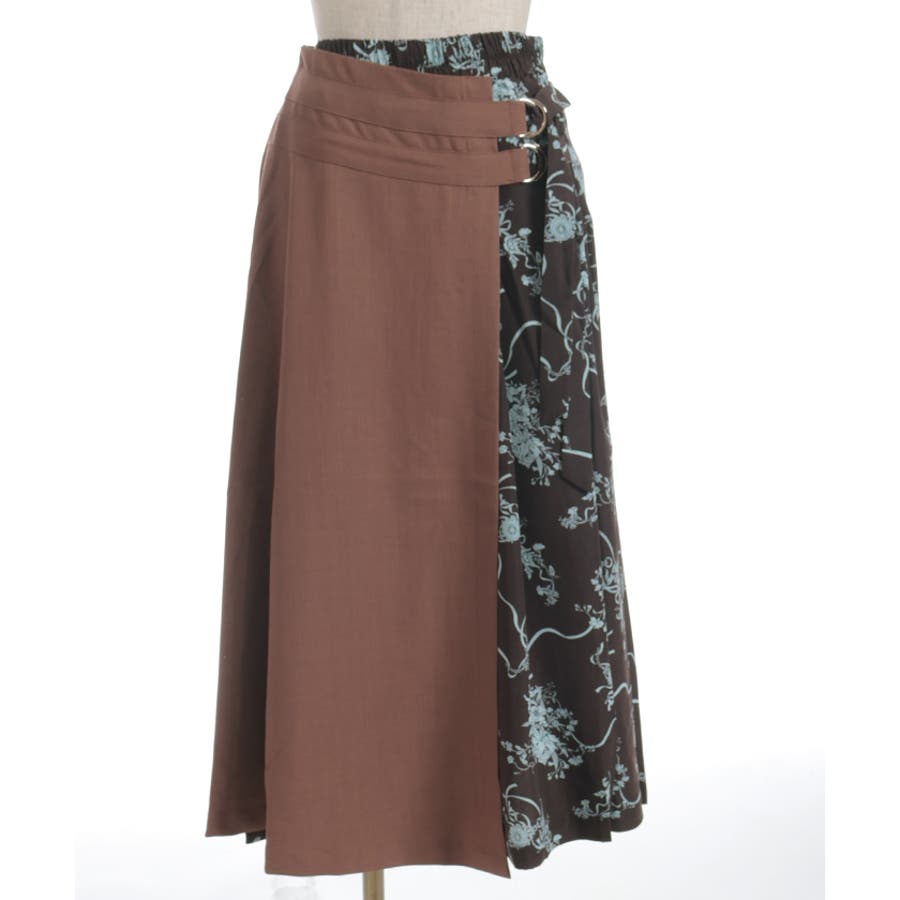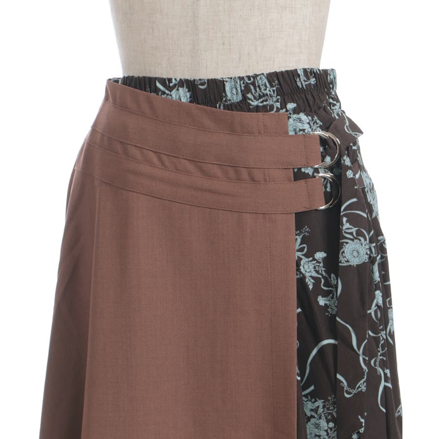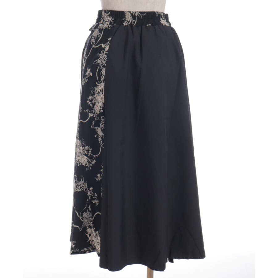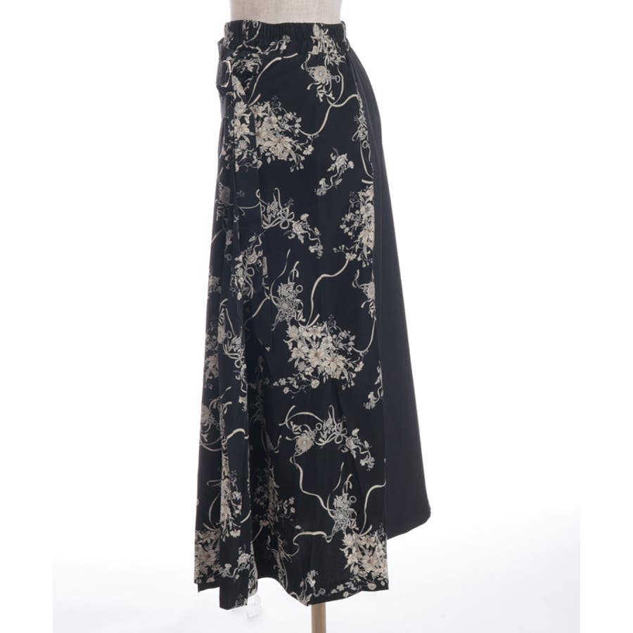オーナメント柄を大胆に取り入れた、存在感のあるアシメスカート。動きのあるシルエットとベルトデザインがポイントで、コーデの主役になる一枚です。