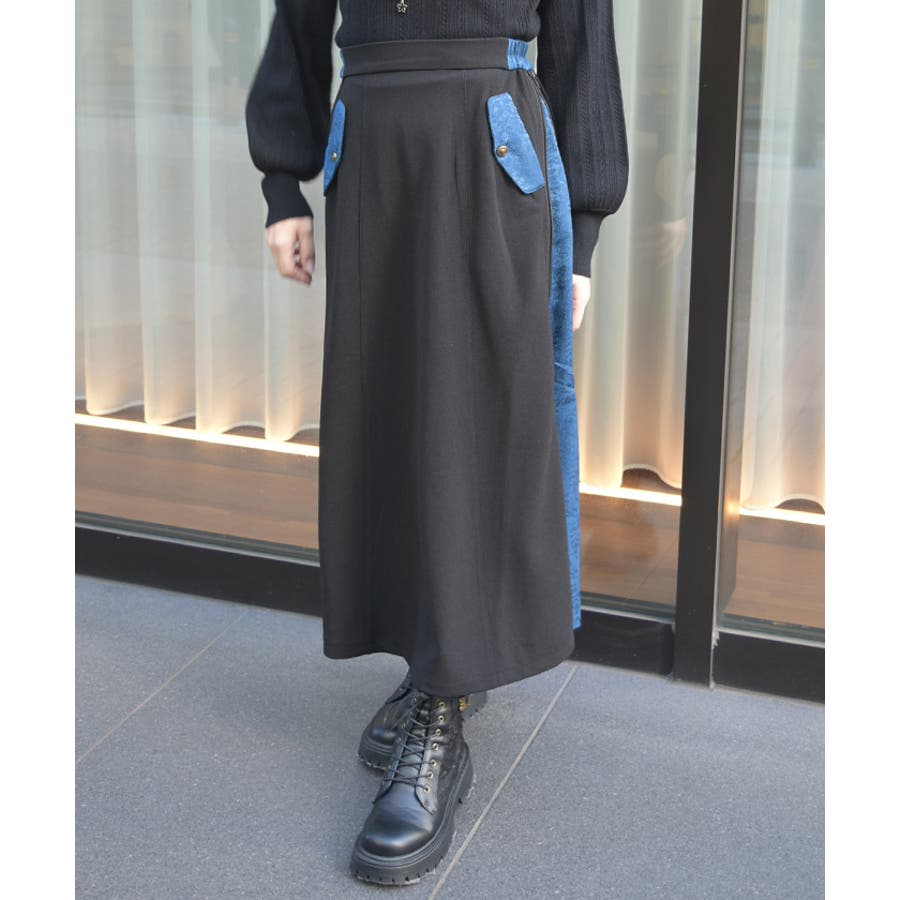 異素材の組み合わせが目を惹くデザインスカート。動くたびに表情が変わる切替ラインが魅力で、シンプルなトップスに合わせるだけでコーデが華やぐ主役級アイテムです。