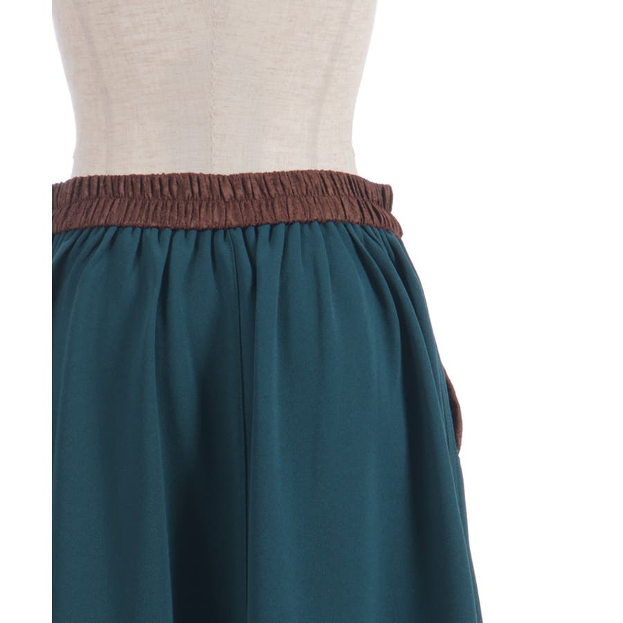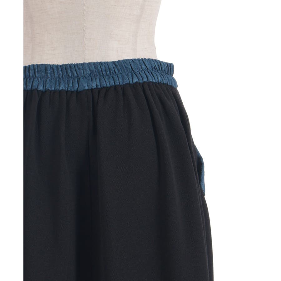 フロントはすっきりと、サイドに異素材を贅沢に切り替えることで、立体感のあるフレアシルエットを実現。ポケット風のパーツがアクセントになり、遊び心と実用性を兼ね備えたデザインに仕上げました。ウエストは安定感がありつつもラクな着用感でデイリーにも◎