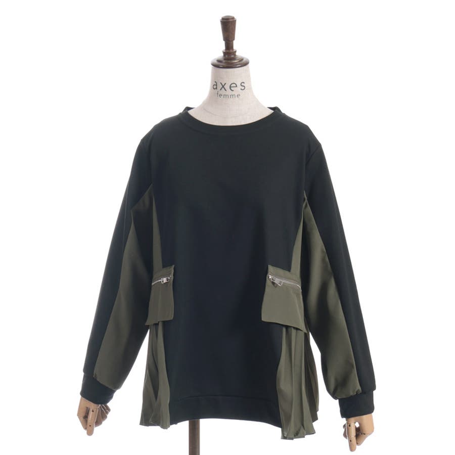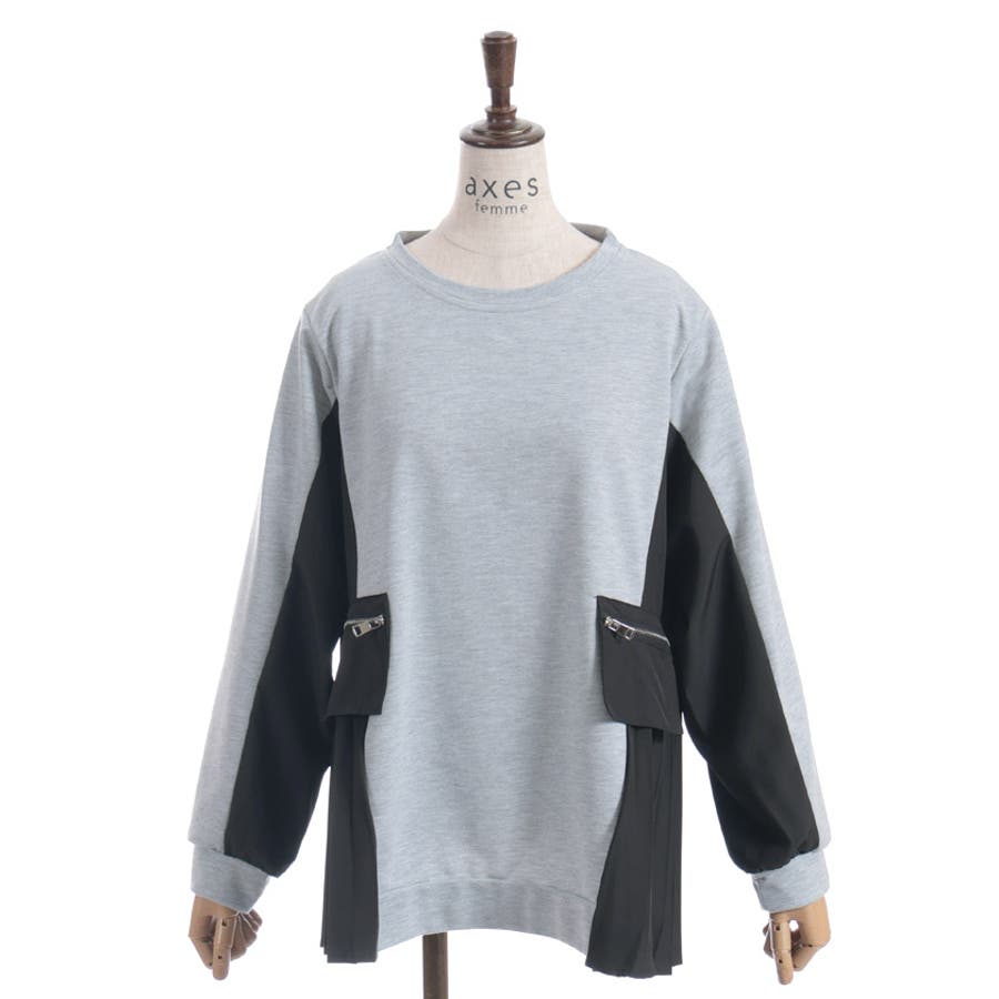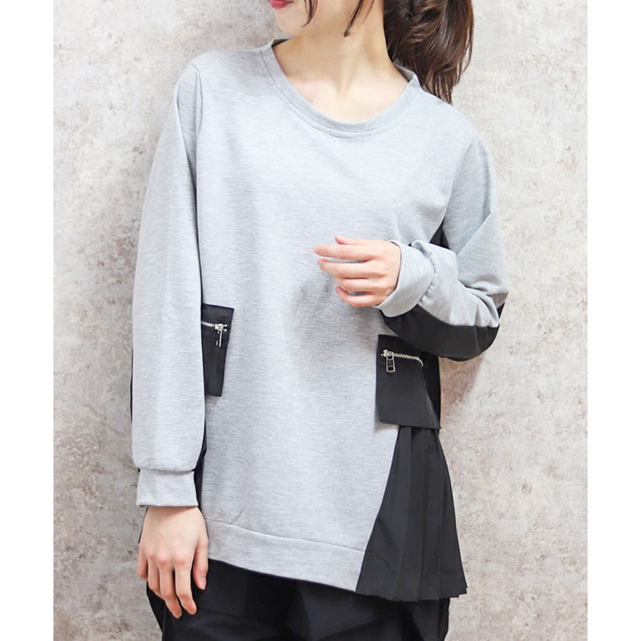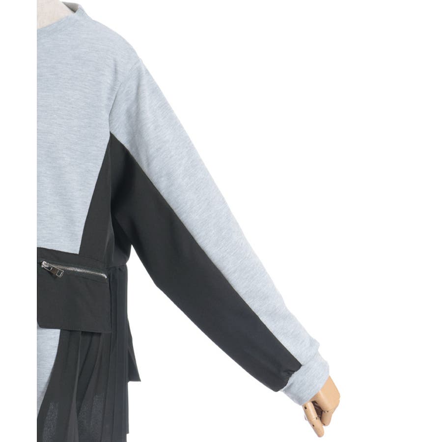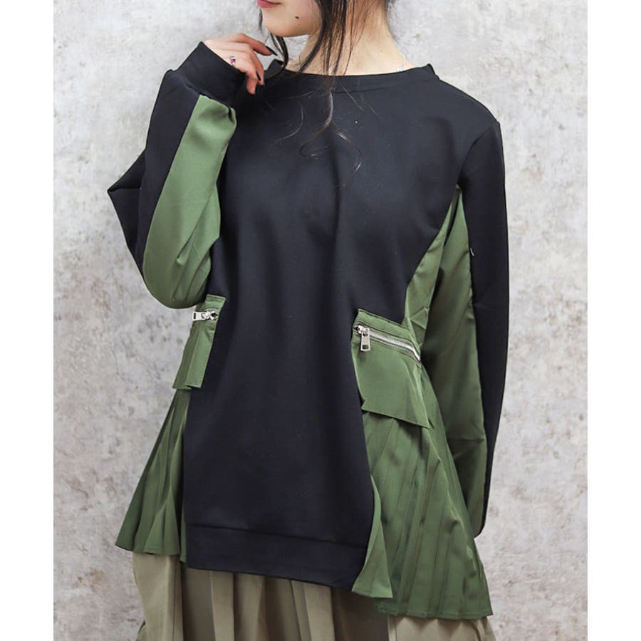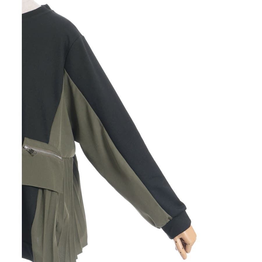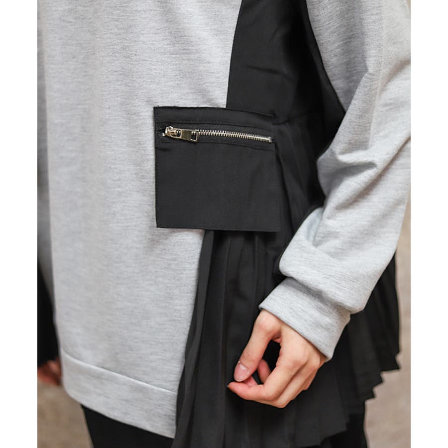 サイドプリーツ異素材切替プルオーバー