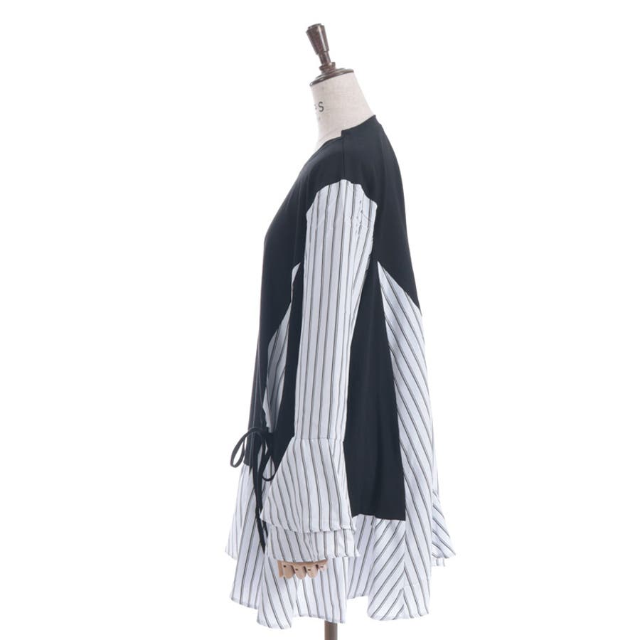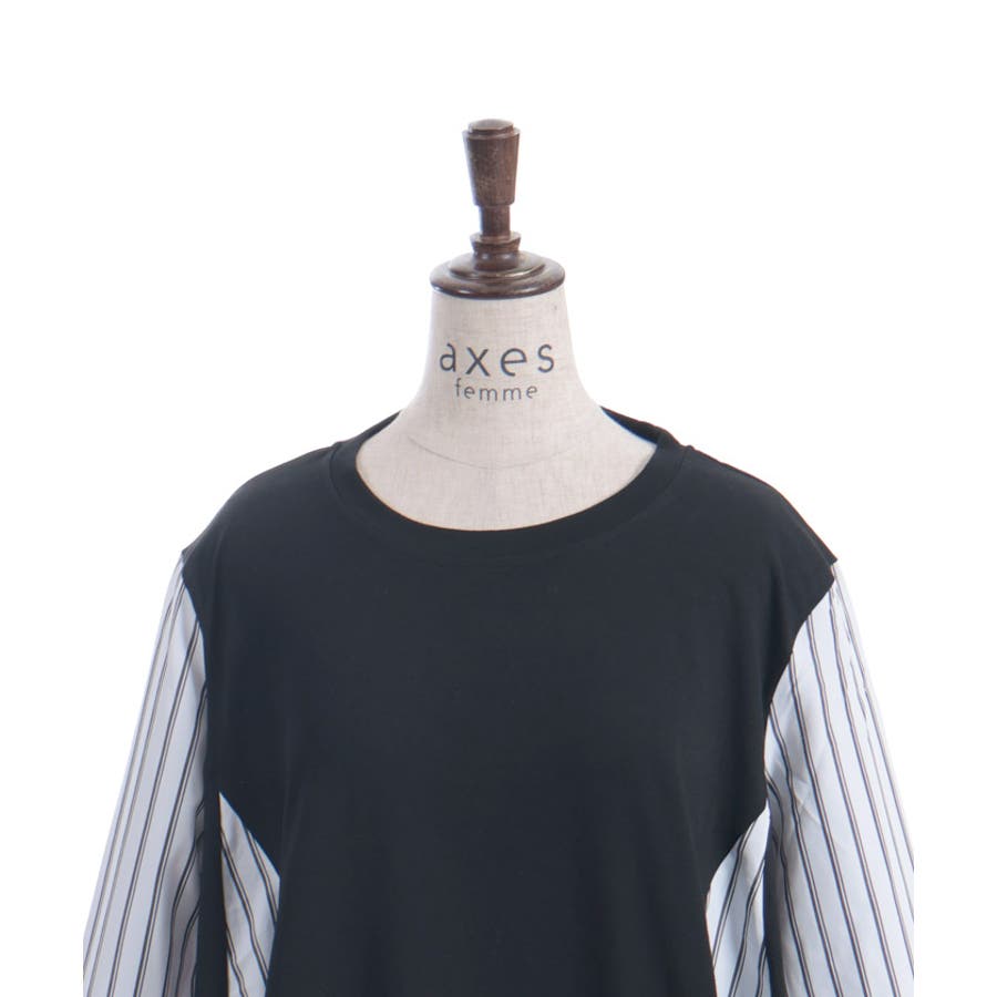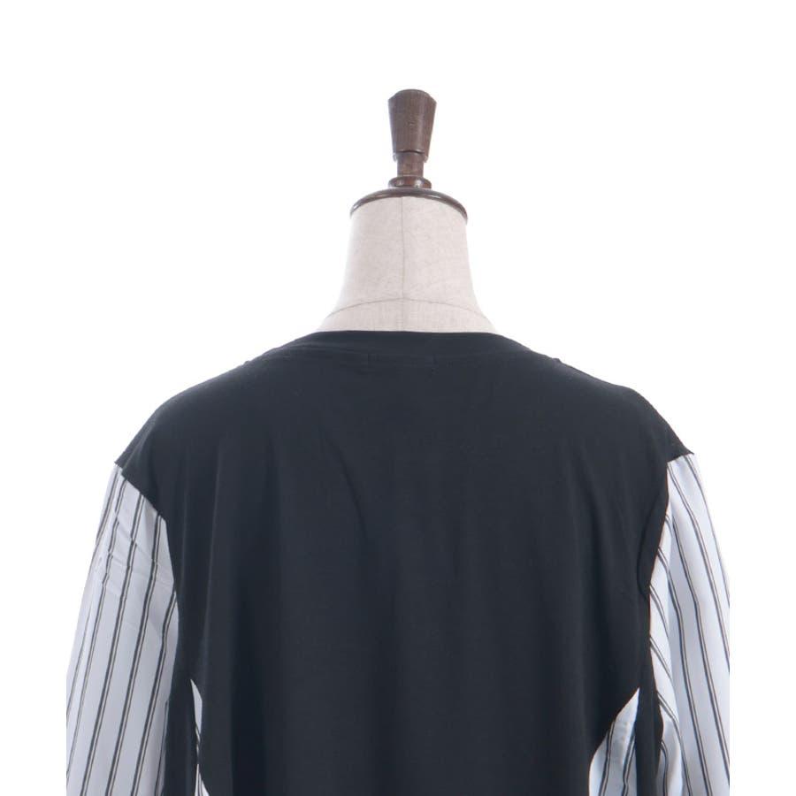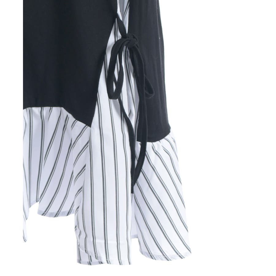 ストライプ切替チュニックは、シンプルでありながらも個性を引き出すデザインが特徴です。黒とストライプ柄の切替がユニークで、シンプルなコーディネートにアクセントを加えてくれます。