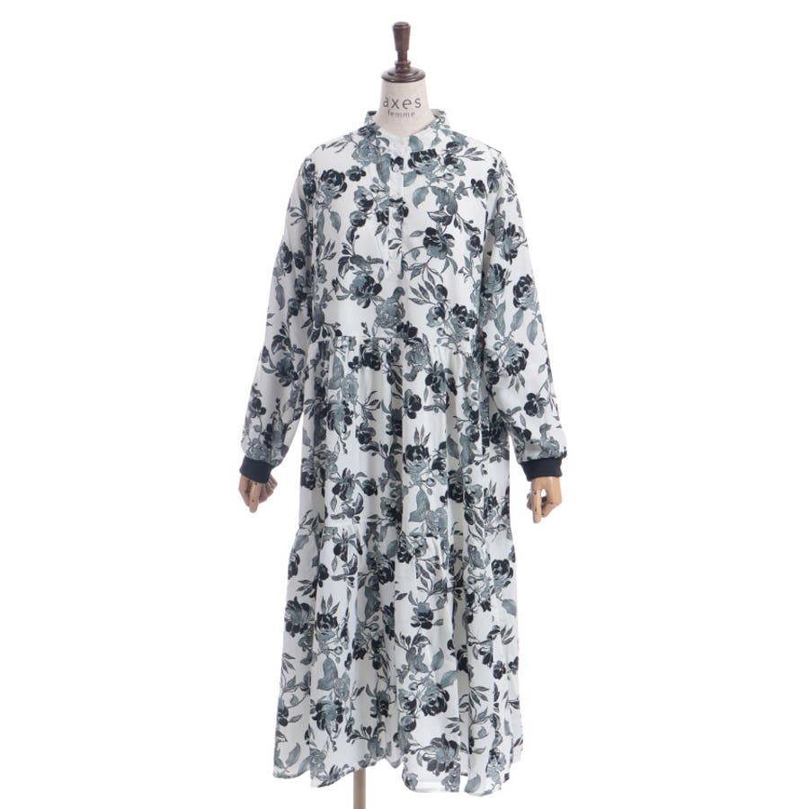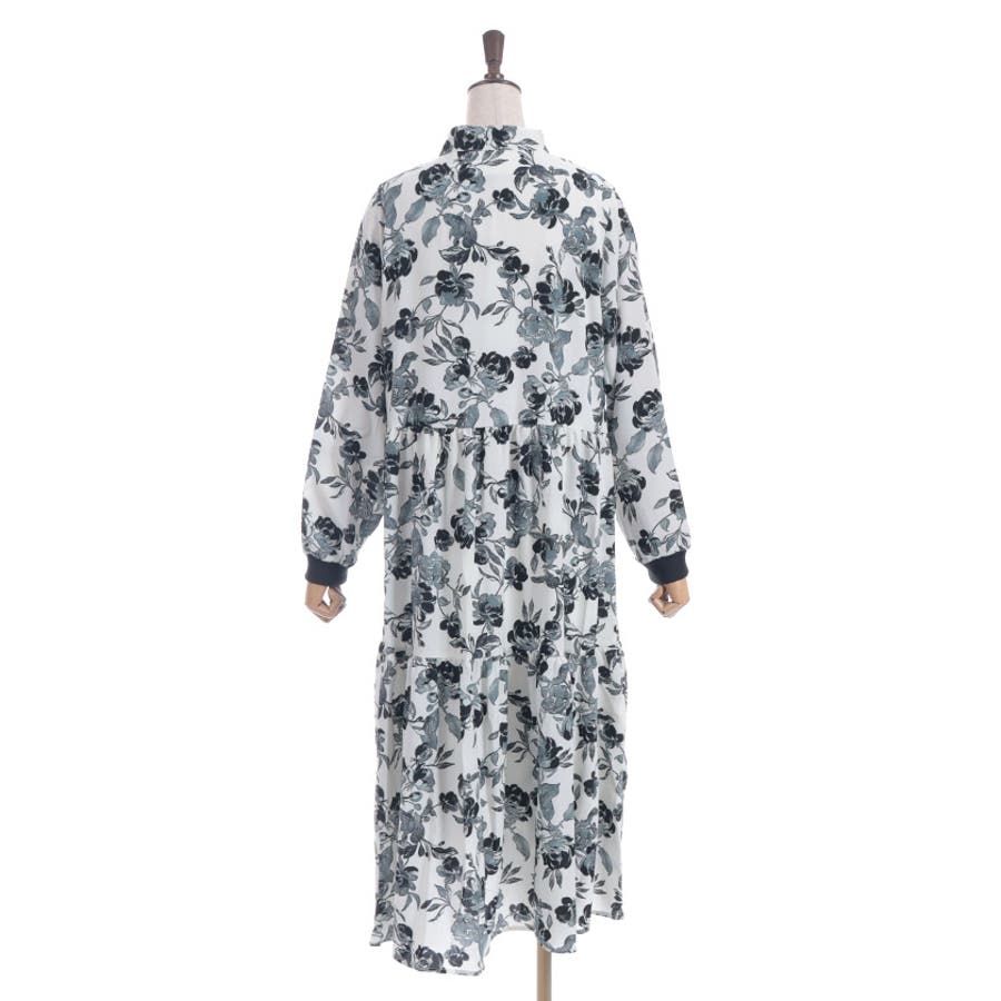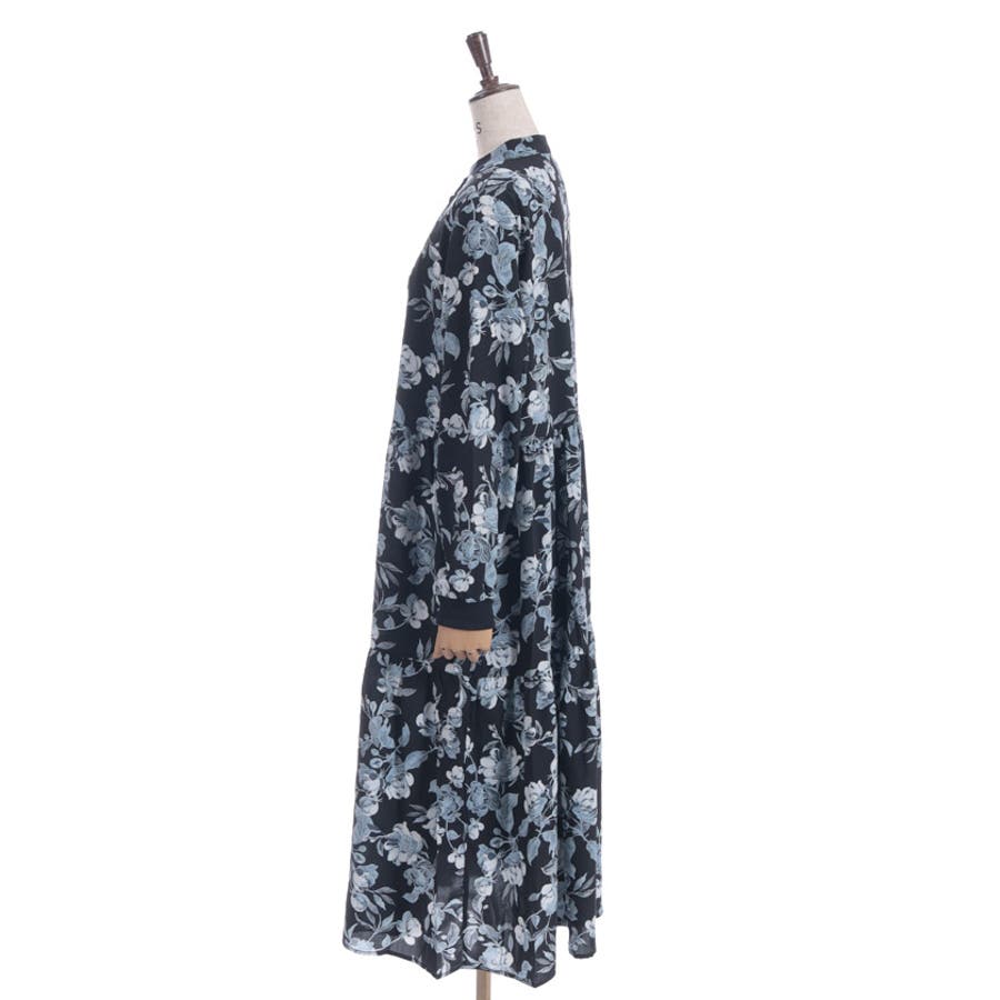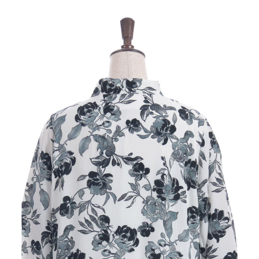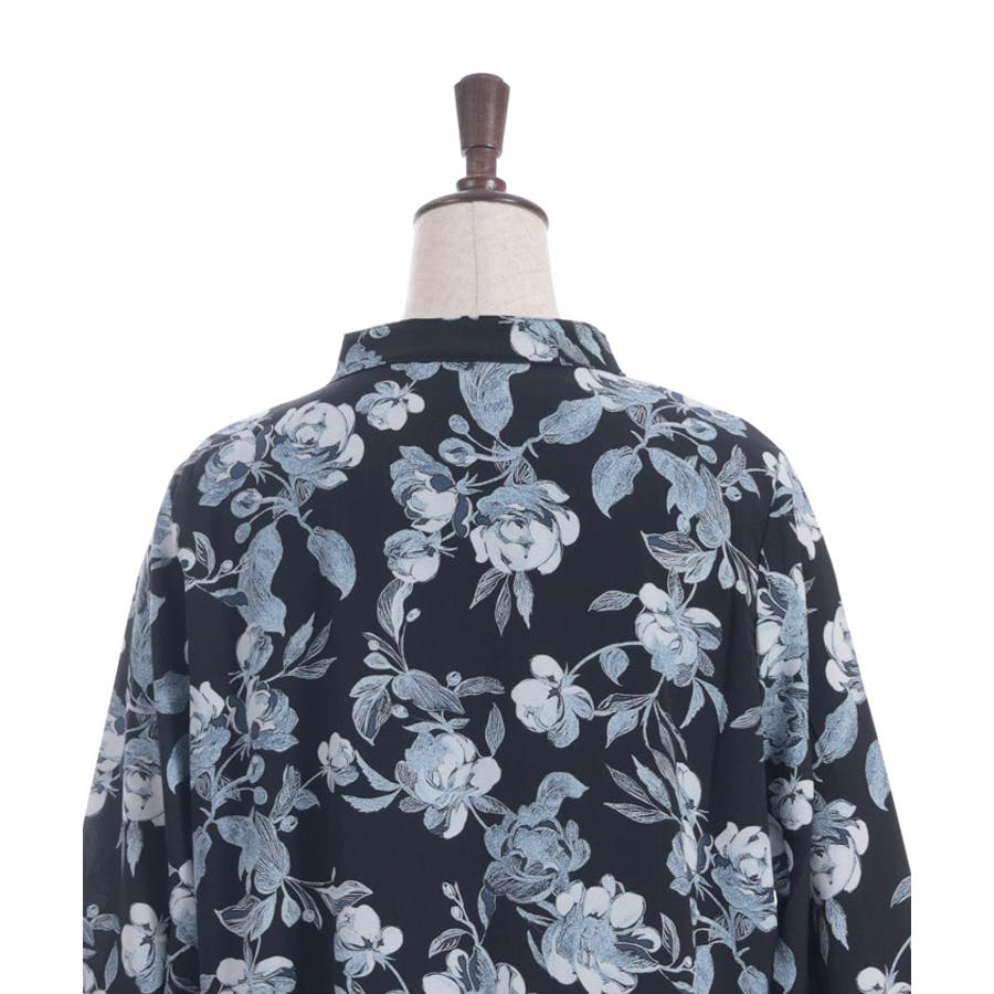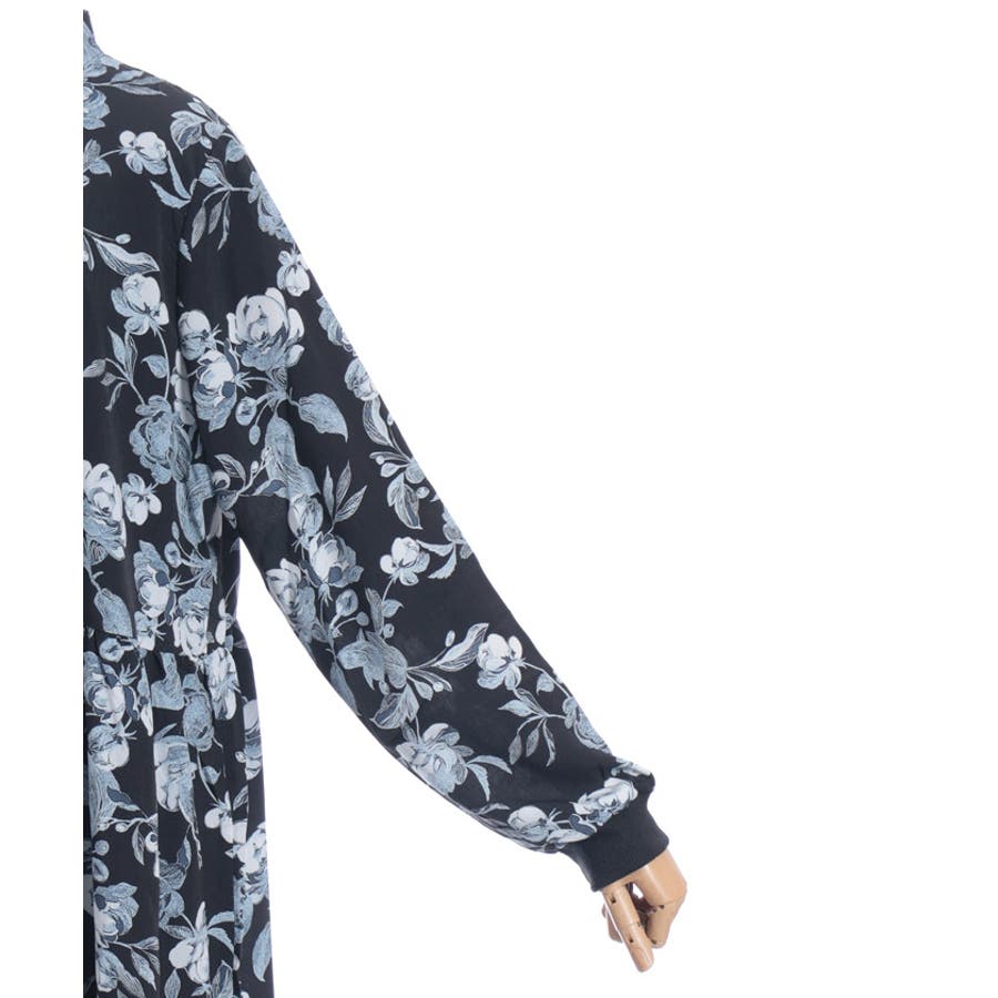 落ち着いたカラーに繊細な花柄が映えるデザイン。程よくゆとりのあるシルエットで、体のラインを拾いすぎず上品に着こなせます。ウエストにはさりげない切り替えが施され、スタイルアップ効果も期待できます。長めの丈感が大人っぽい雰囲気をプラスし、軽やかな動きを演出します。