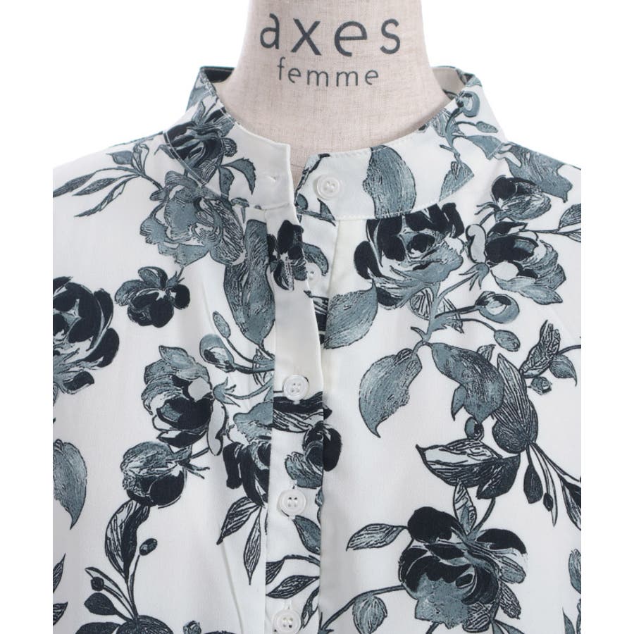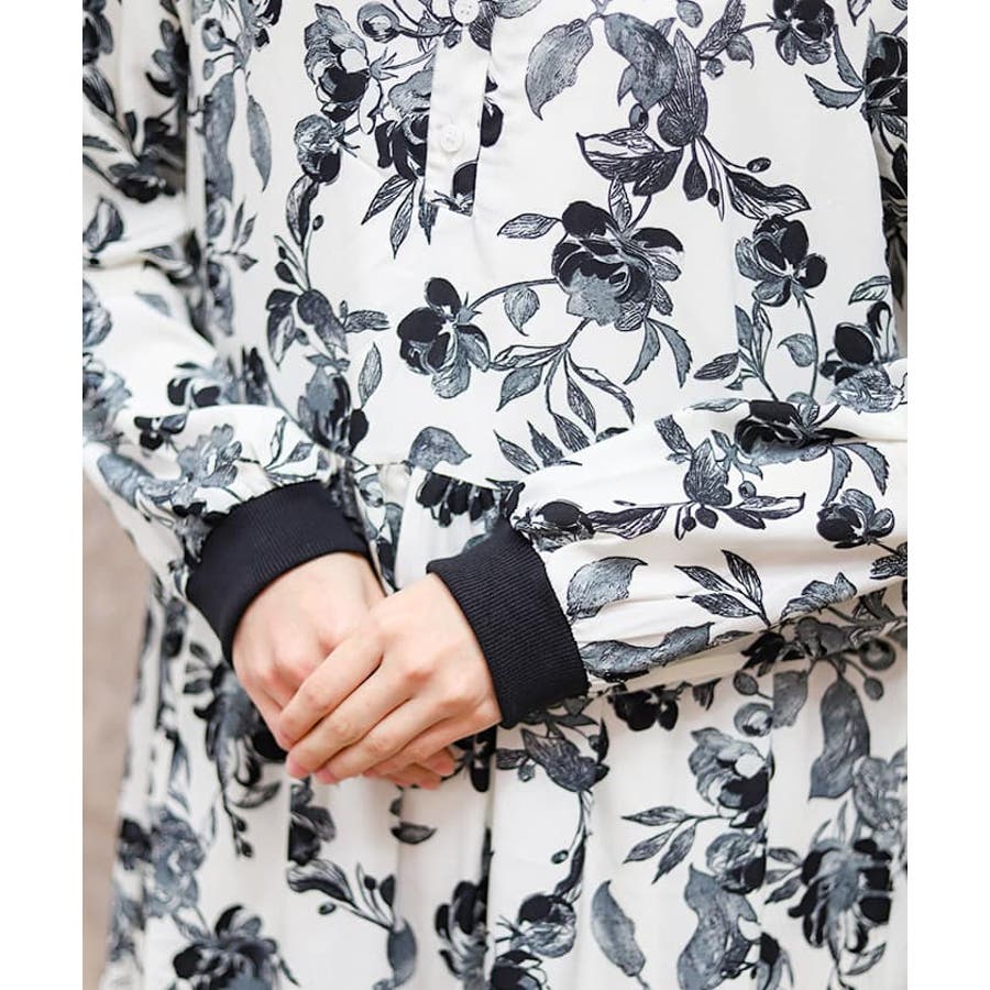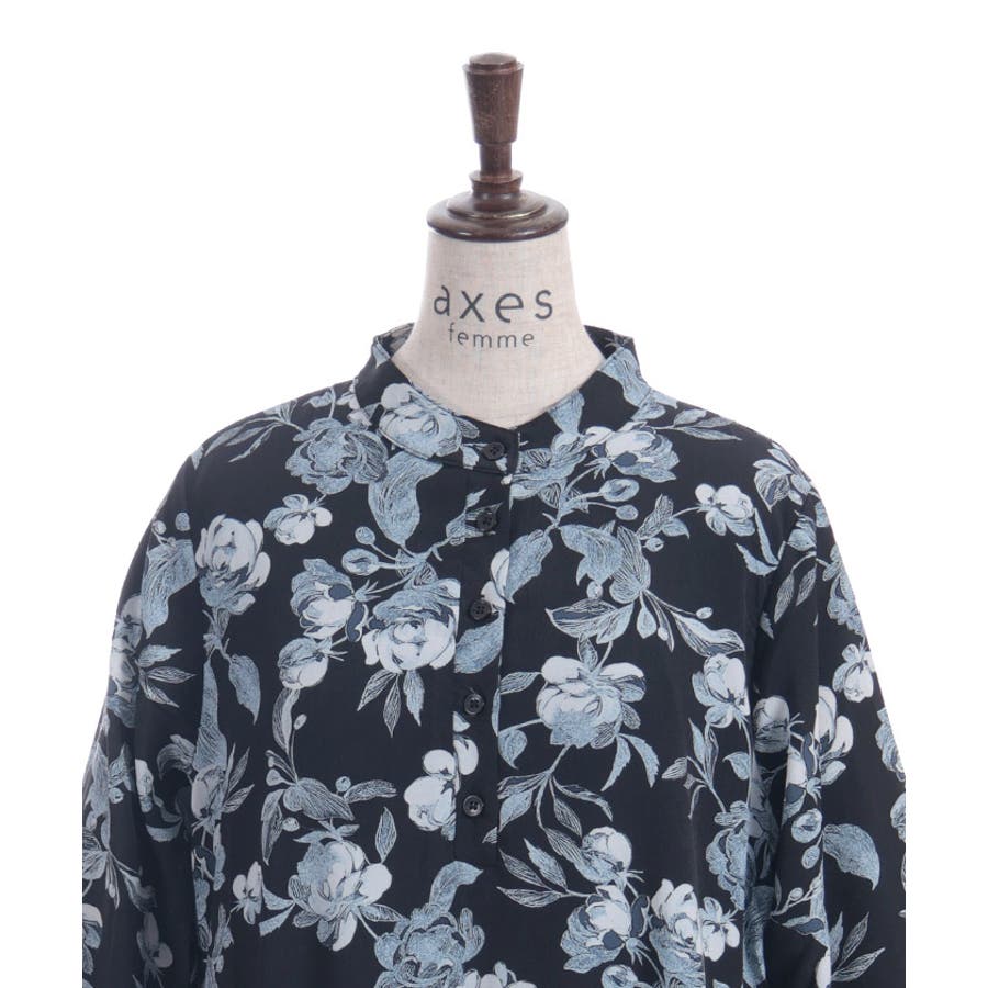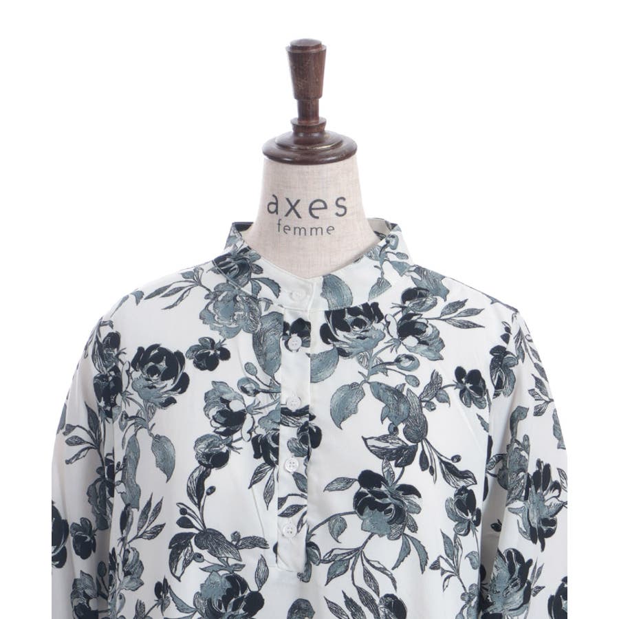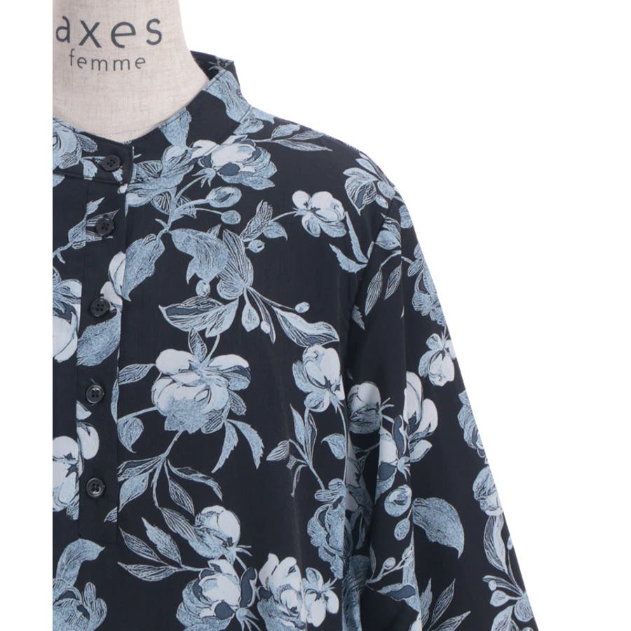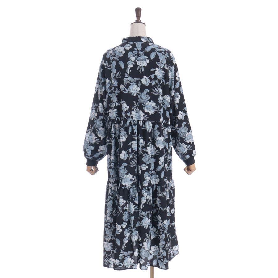 落ち着いたカラーに繊細な花柄が映えるデザイン。程よくゆとりのあるシルエットで、体のラインを拾いすぎず上品に着こなせます。ウエストにはさりげない切り替えが施され、スタイルアップ効果も期待できます。長めの丈感が大人っぽい雰囲気をプラスし、軽やかな動きを演出します。