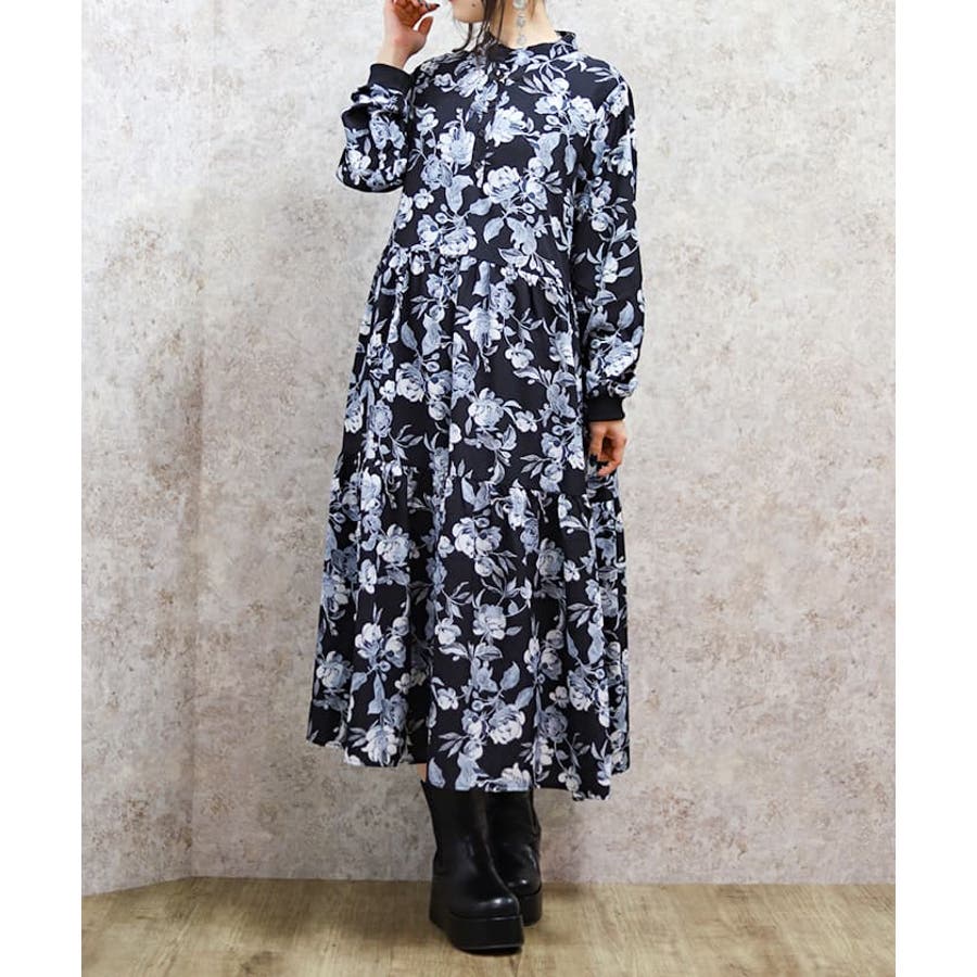 華やかな花柄が魅力のロングワンピースです。上品なシルエットとエレガントなデザインが特徴で、1枚でコーディネートが完成する主役級のアイテム。デイリー使いからお出かけまで幅広いシーンで活躍します。