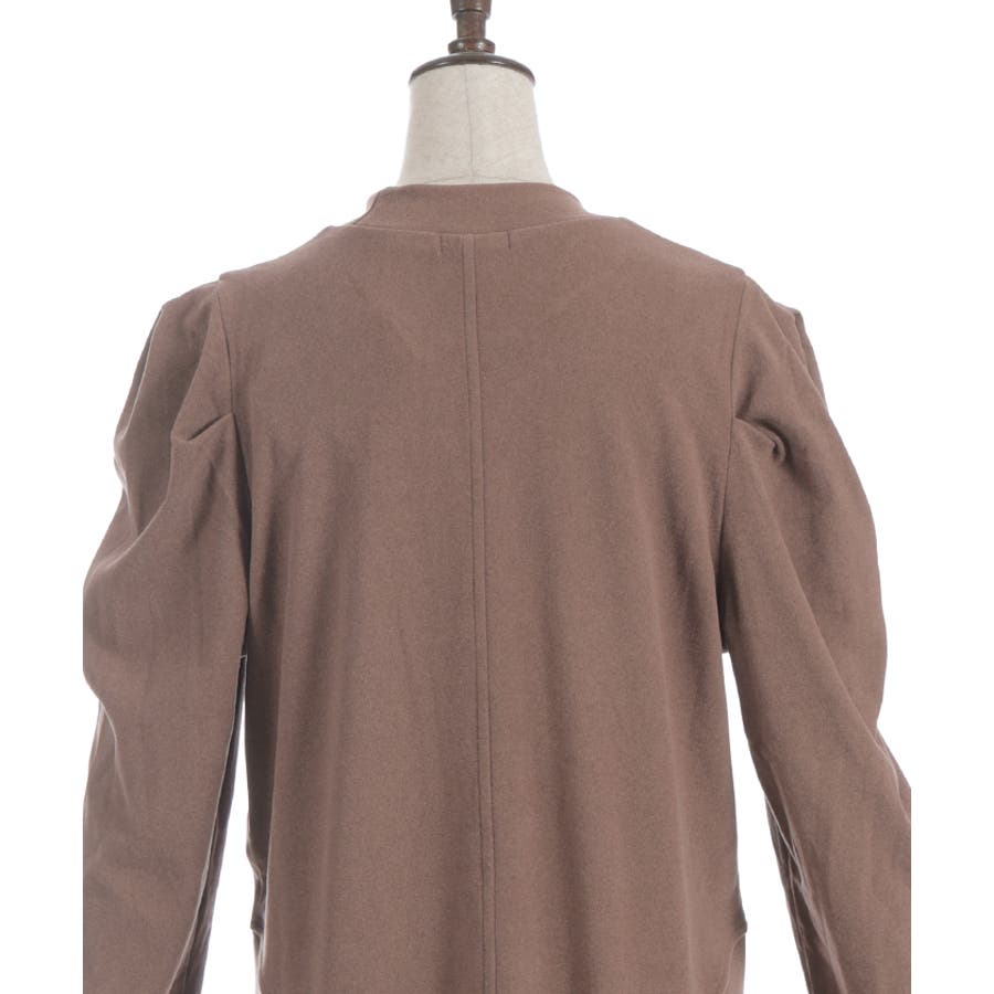 ストンと落ちるシルエットが縦ラインを強調し、すっきりとした印象に。肩や袖にタックを入れることでさりげない立体感をプラス。シンプルながらも、素材感が温かみを演出します。