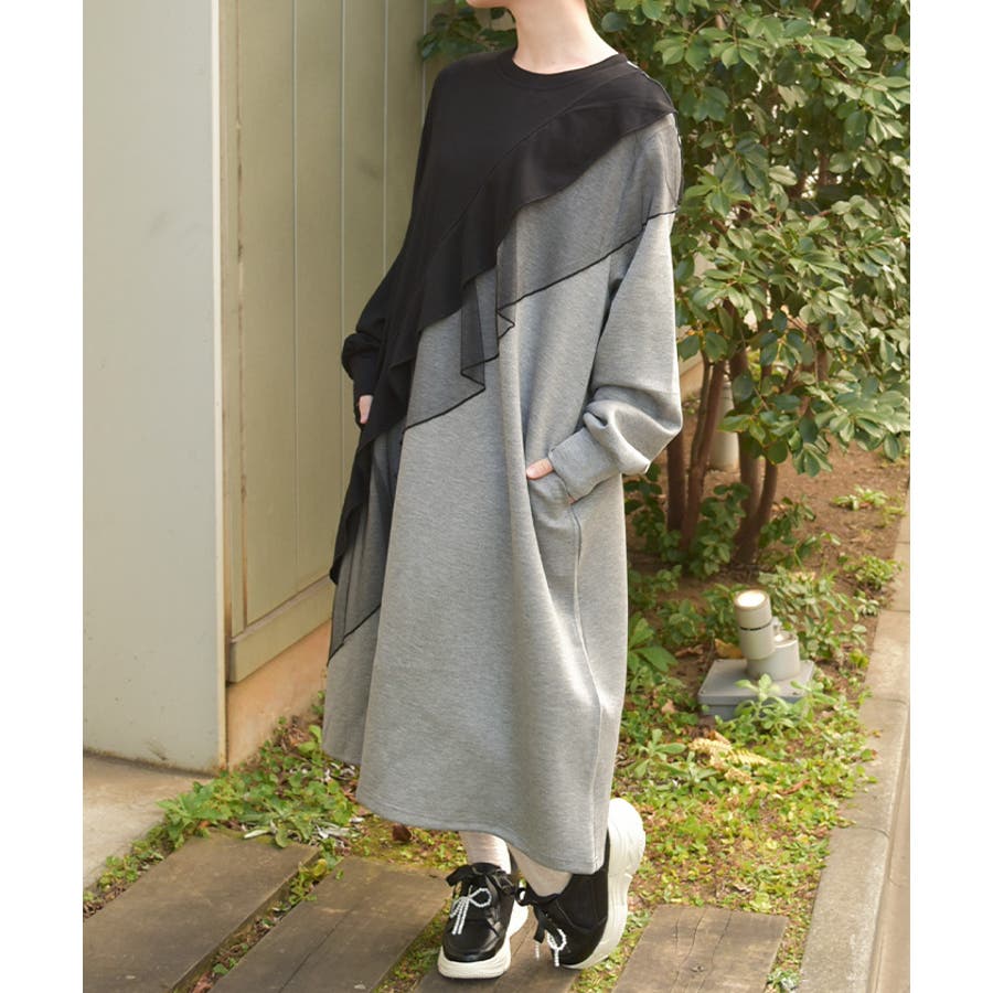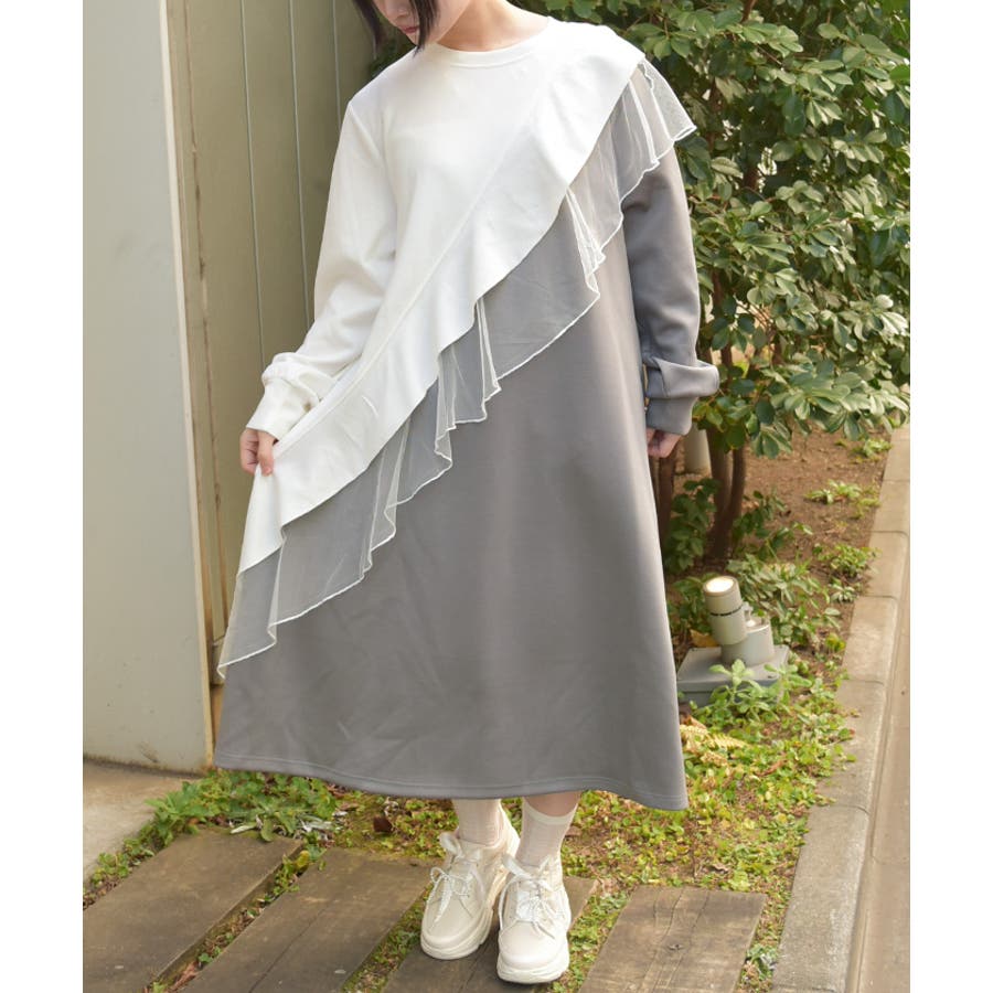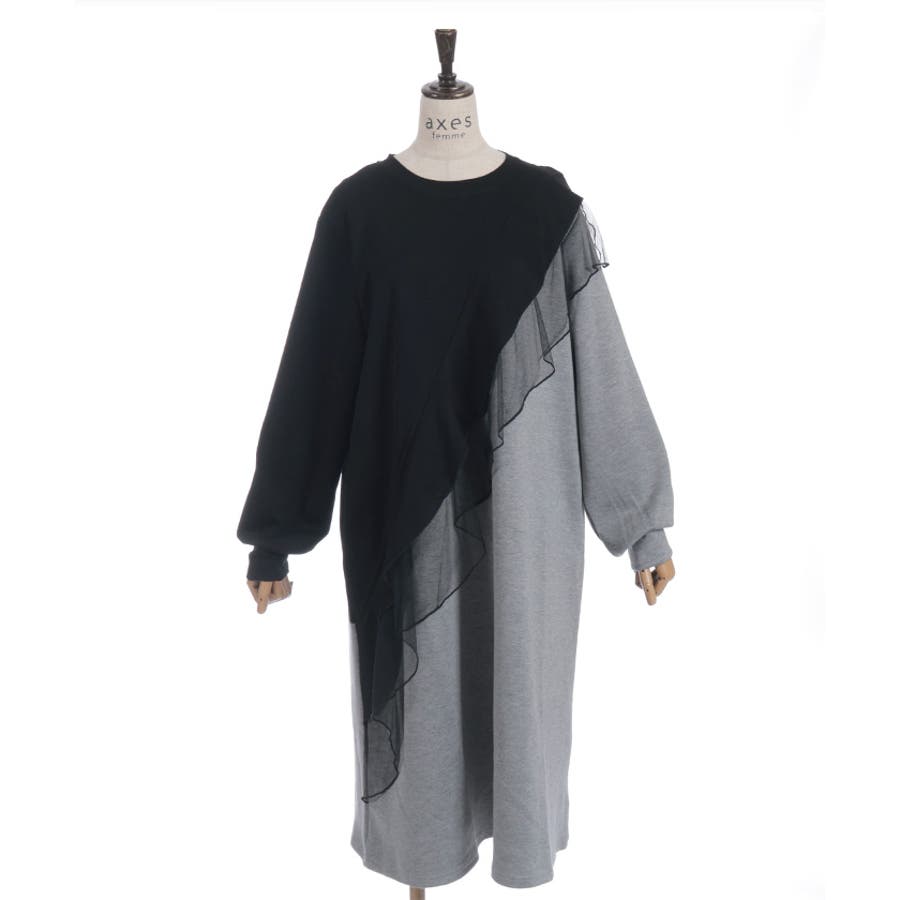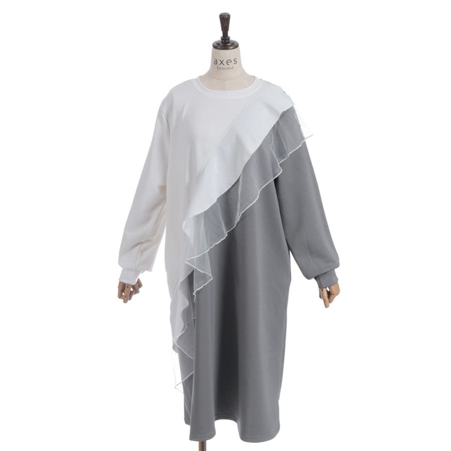 アシメフリルバイカラーワンピース