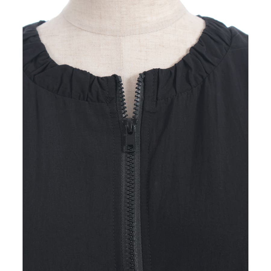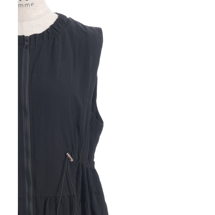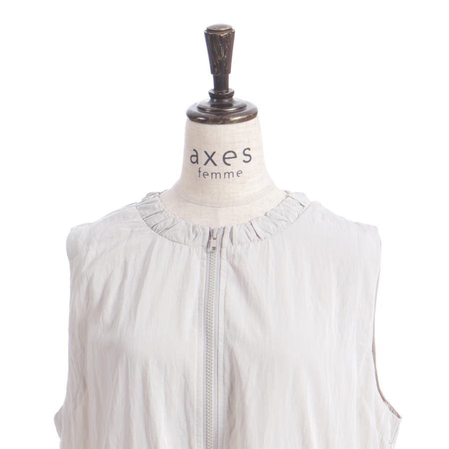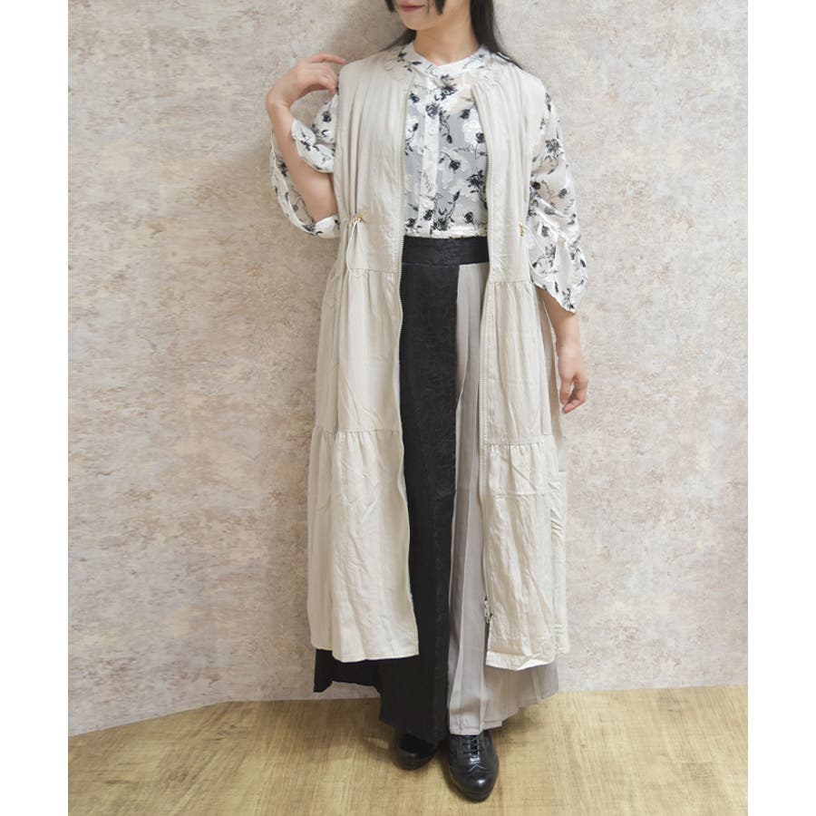 ティアードデザインが目を引く布帛素材のジレ。フロントジップ仕様で着脱もスムーズに行え、レイヤードコーデにアクセントを加えてくれる1枚です。