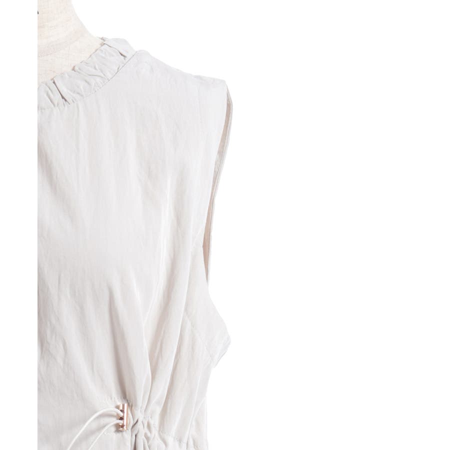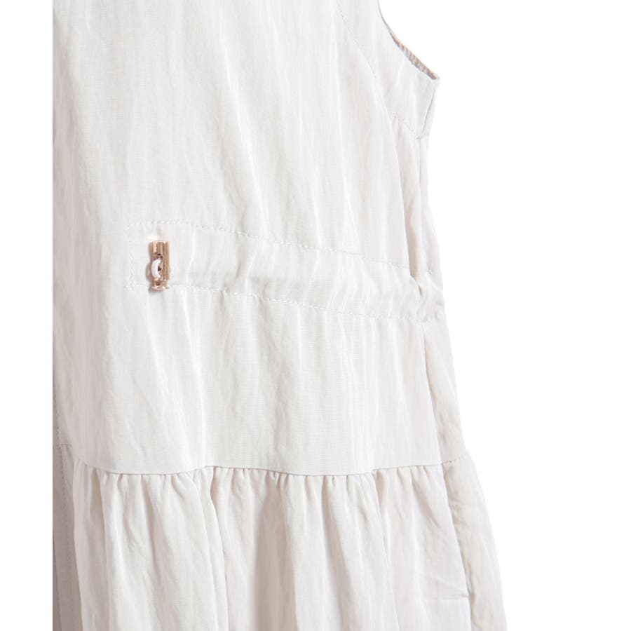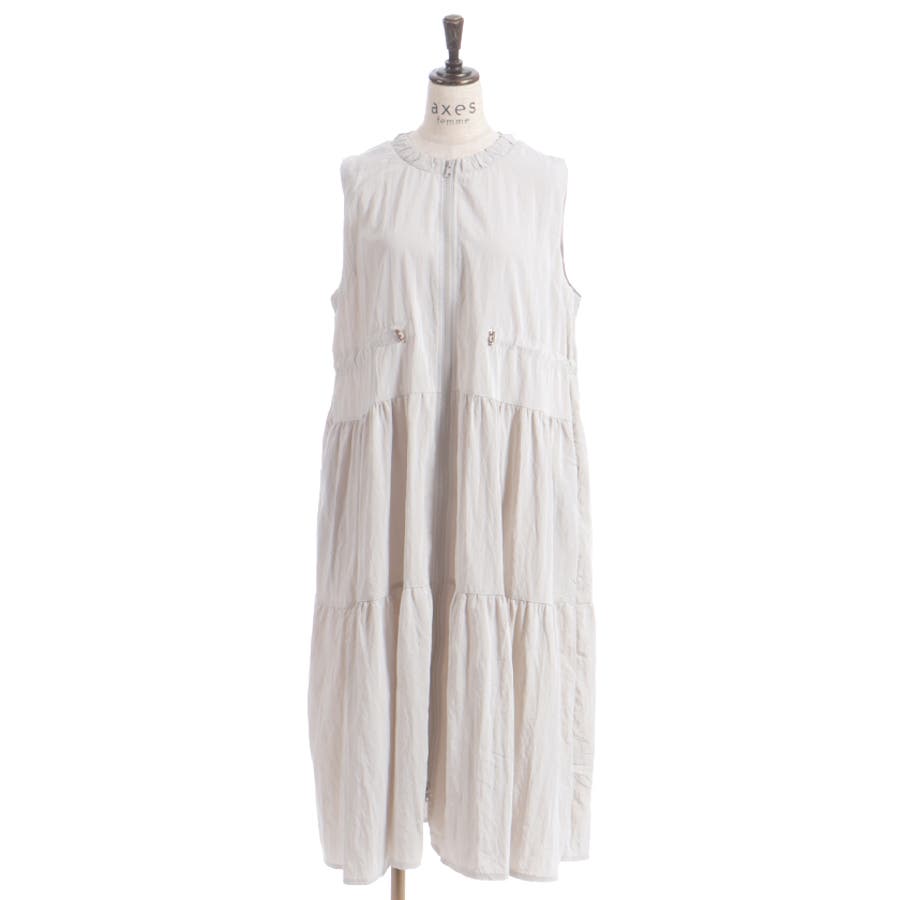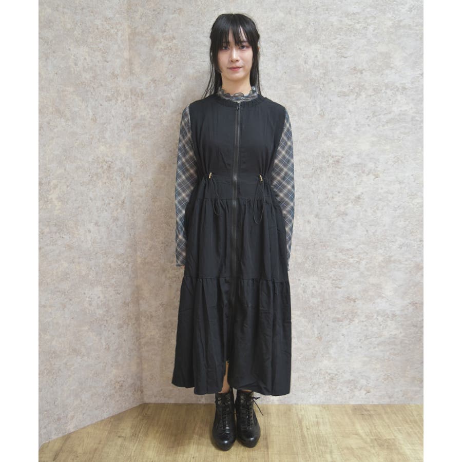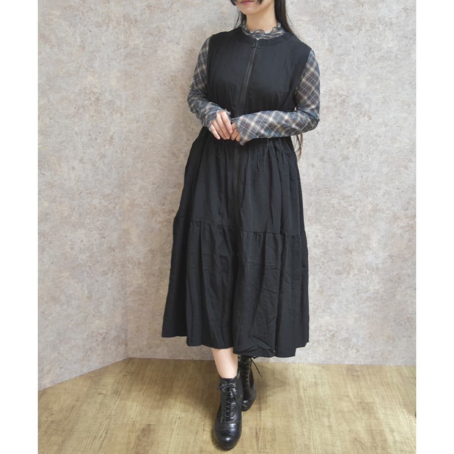 ティアードデザインが目を引く布帛素材のジレ。フロントジップ仕様で着脱もスムーズに行え、レイヤードコーデにアクセントを加えてくれる1枚です。