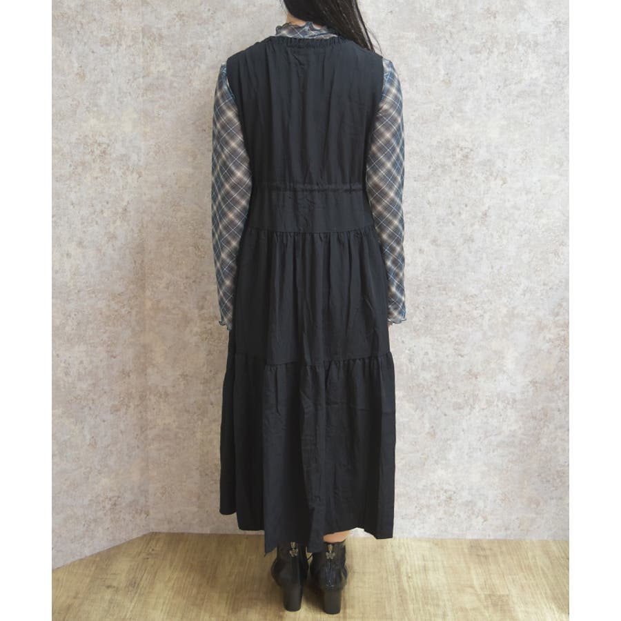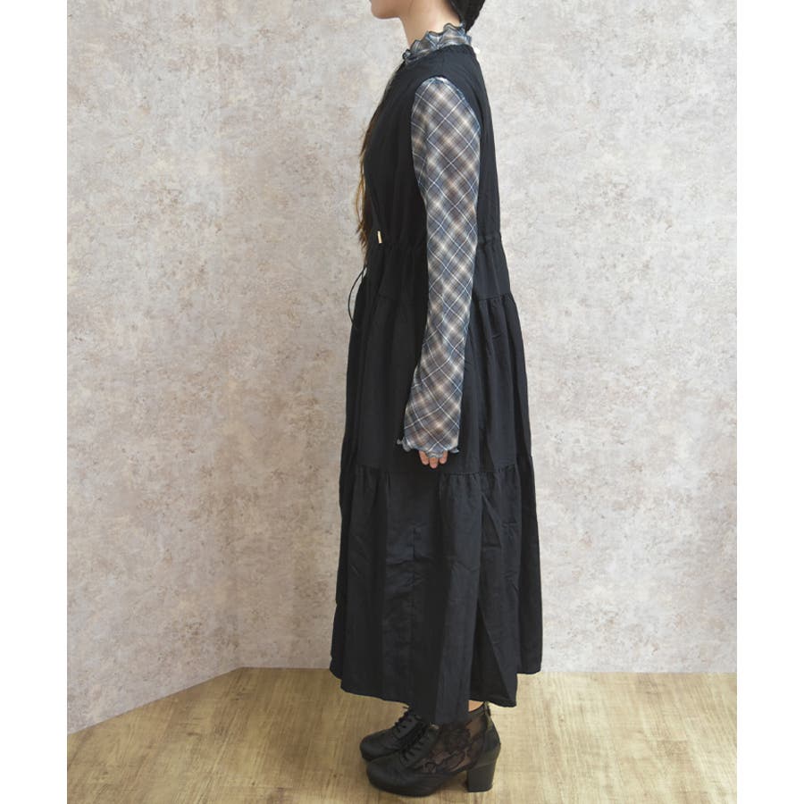 軽やかなティアード切替が華やかな印象をプラス。ストレートシルエットで縦ラインを強調し、スタイルアップ効果も期待できます。