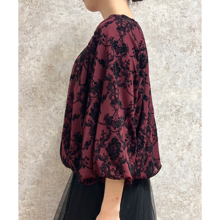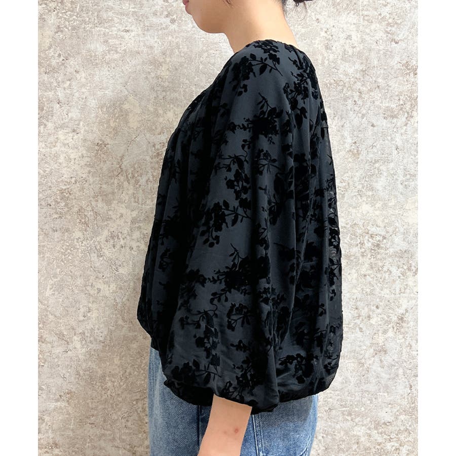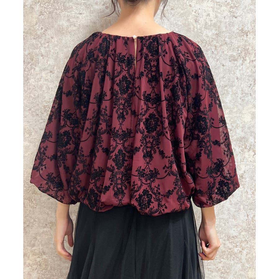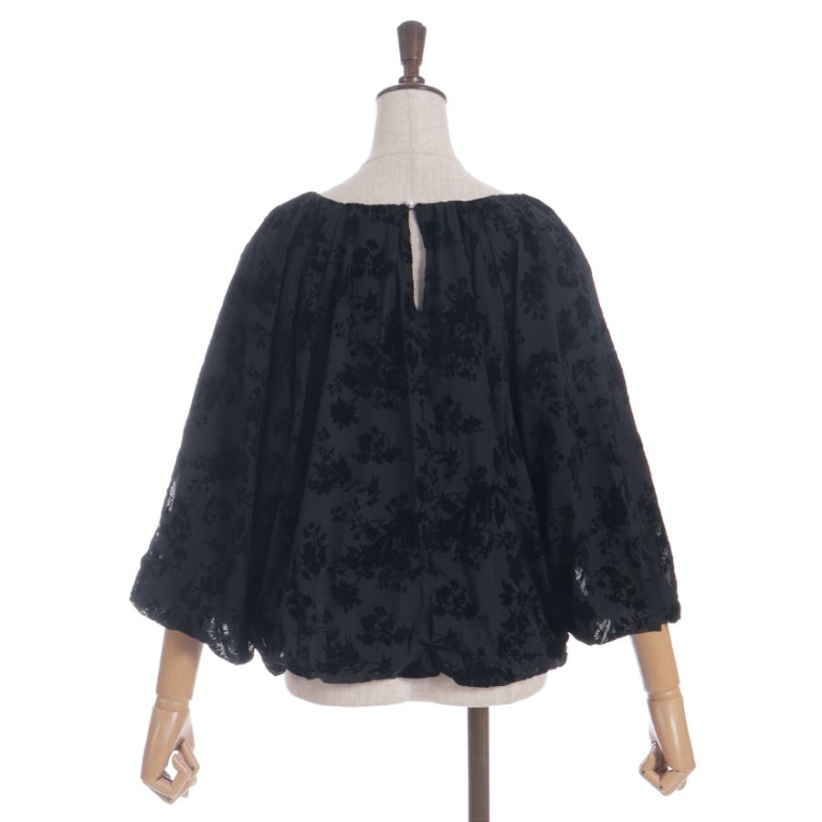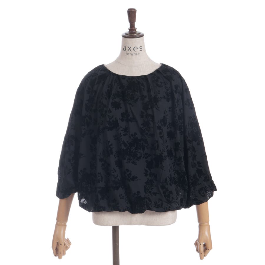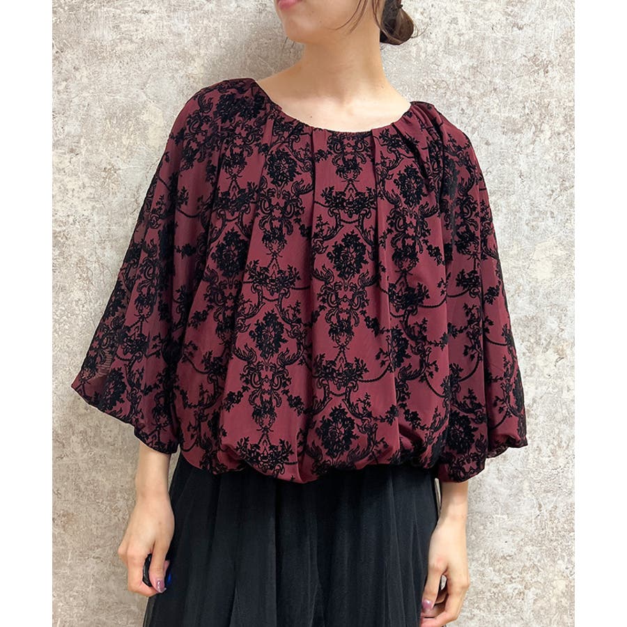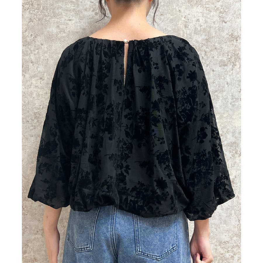 繊細なチュールにフロッキープリントを施した華やかなプルオーバー。存在感のある1枚でコーディネートの主役に。
