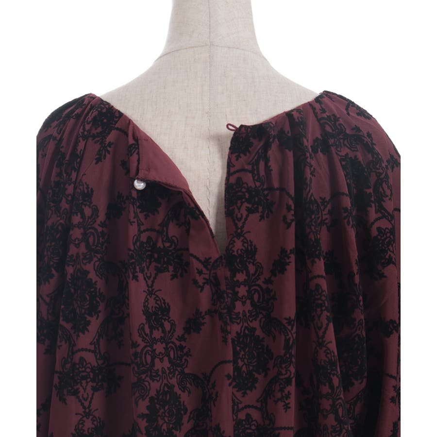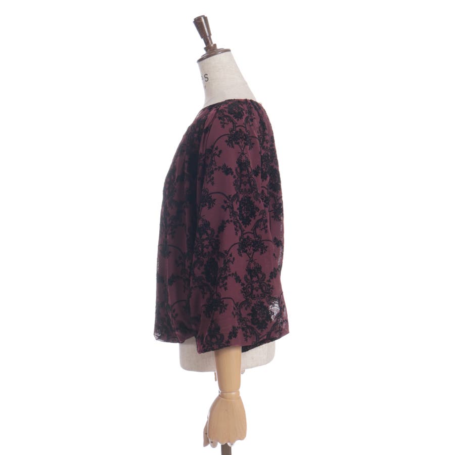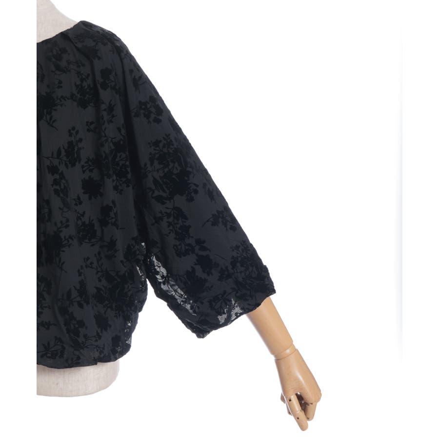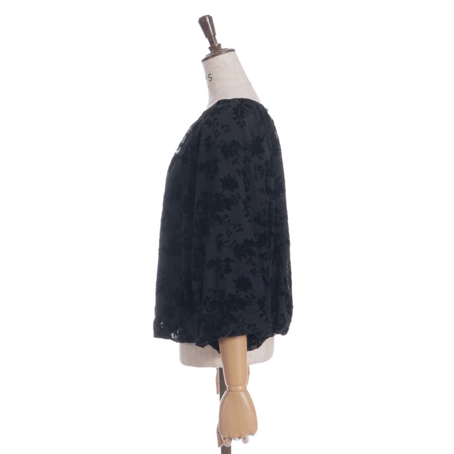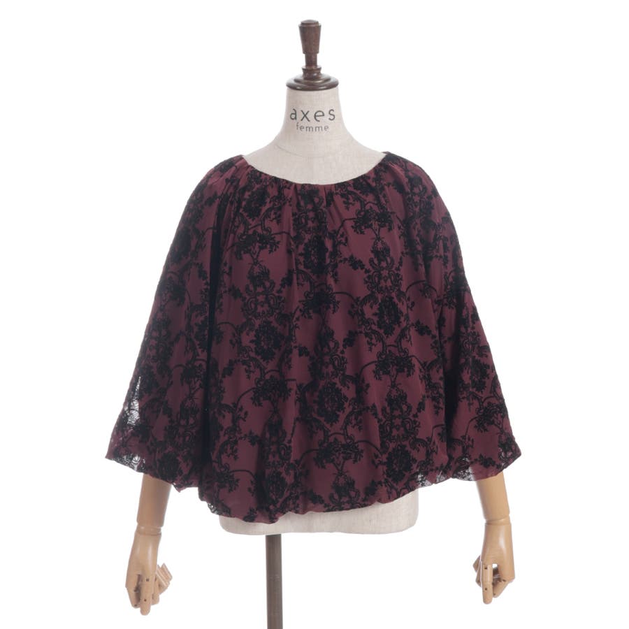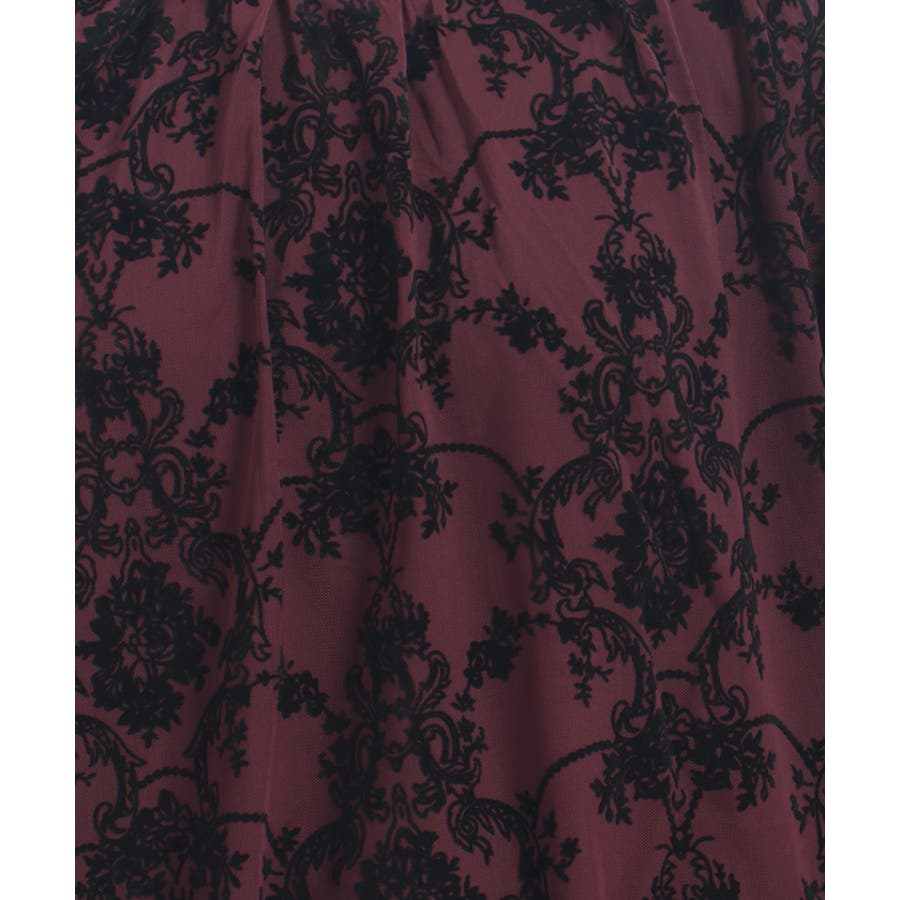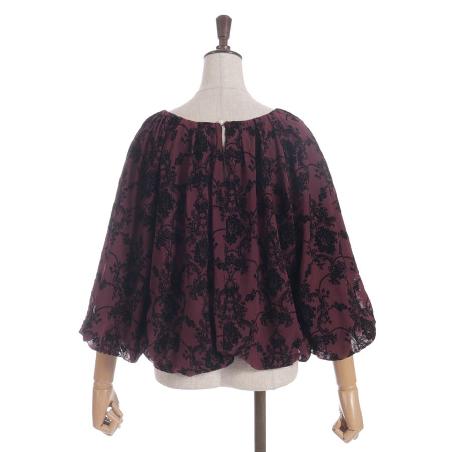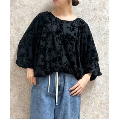 繊細なチュールにフロッキープリントを施した華やかなプルオーバー。存在感のある1枚でコーディネートの主役に。