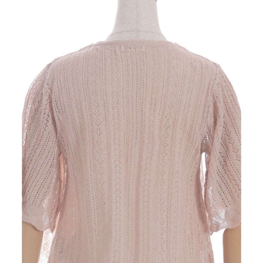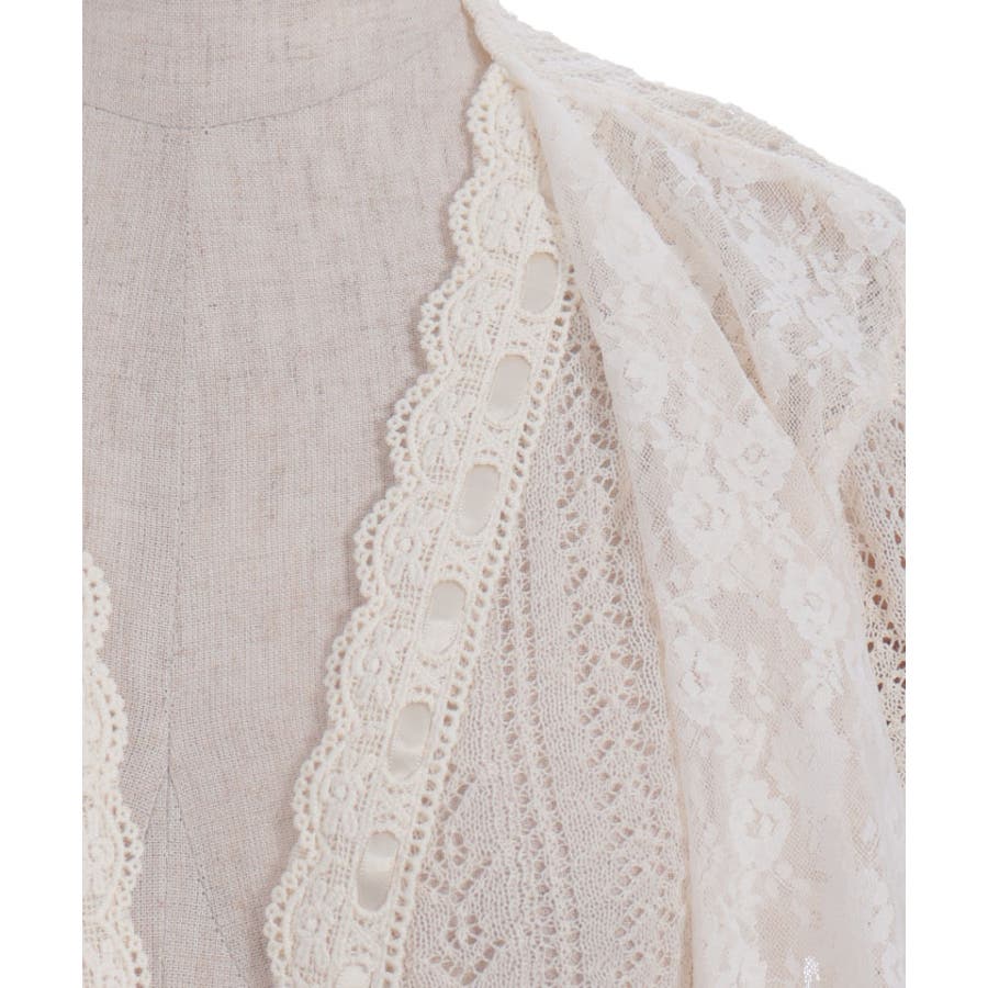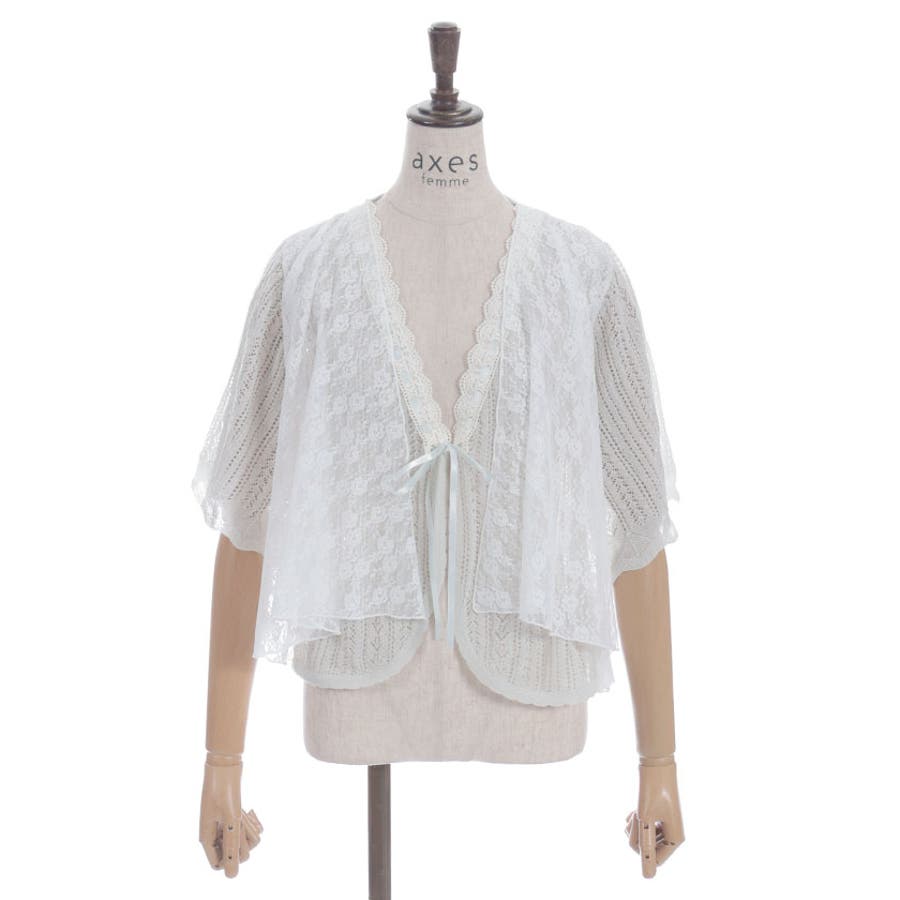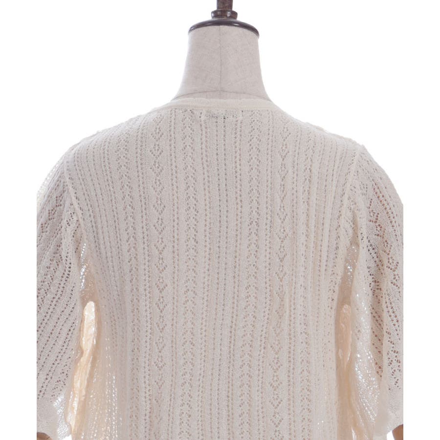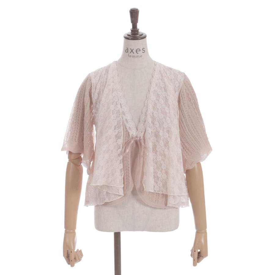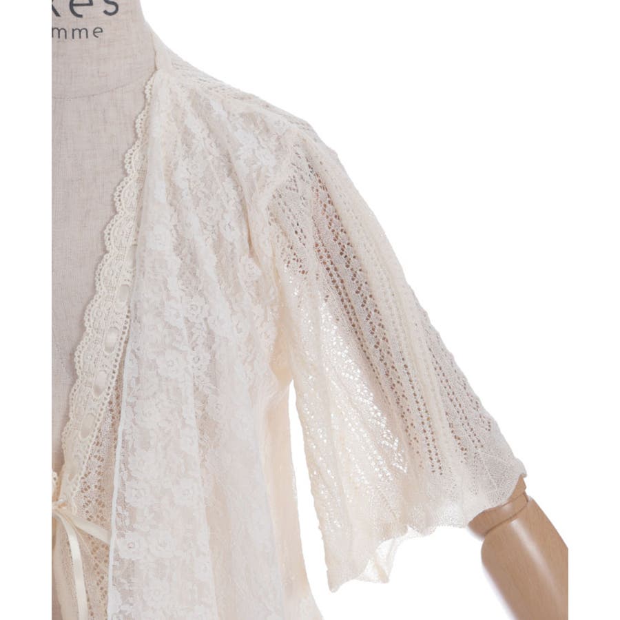 繊細なレース風の編地がフェミニンな印象を与えるショートカーデは、1枚でレイヤードスタイルが完成する便利なアイテムです。