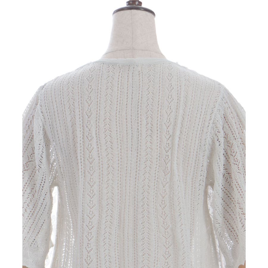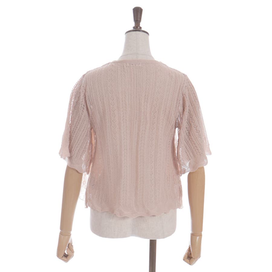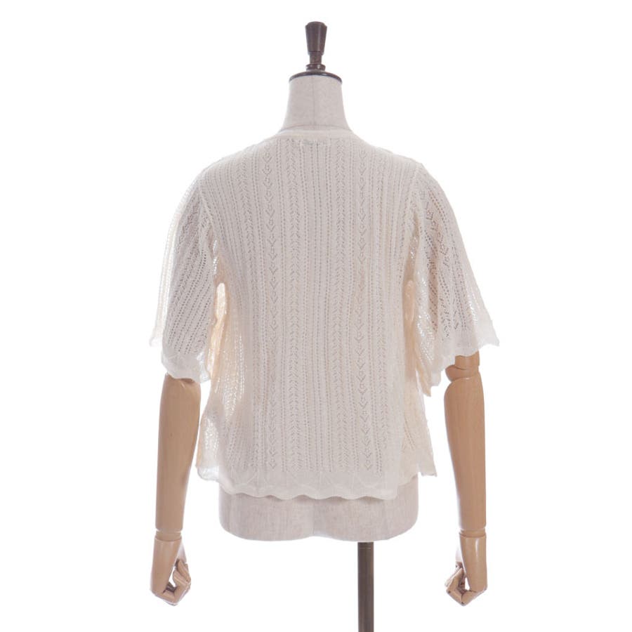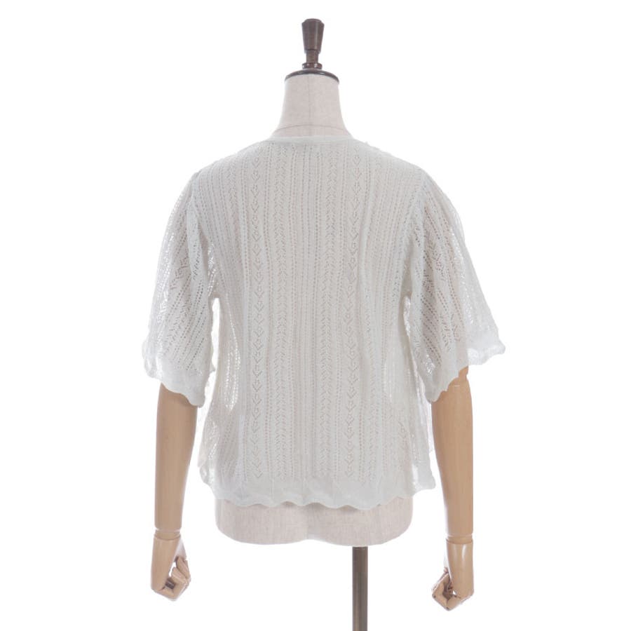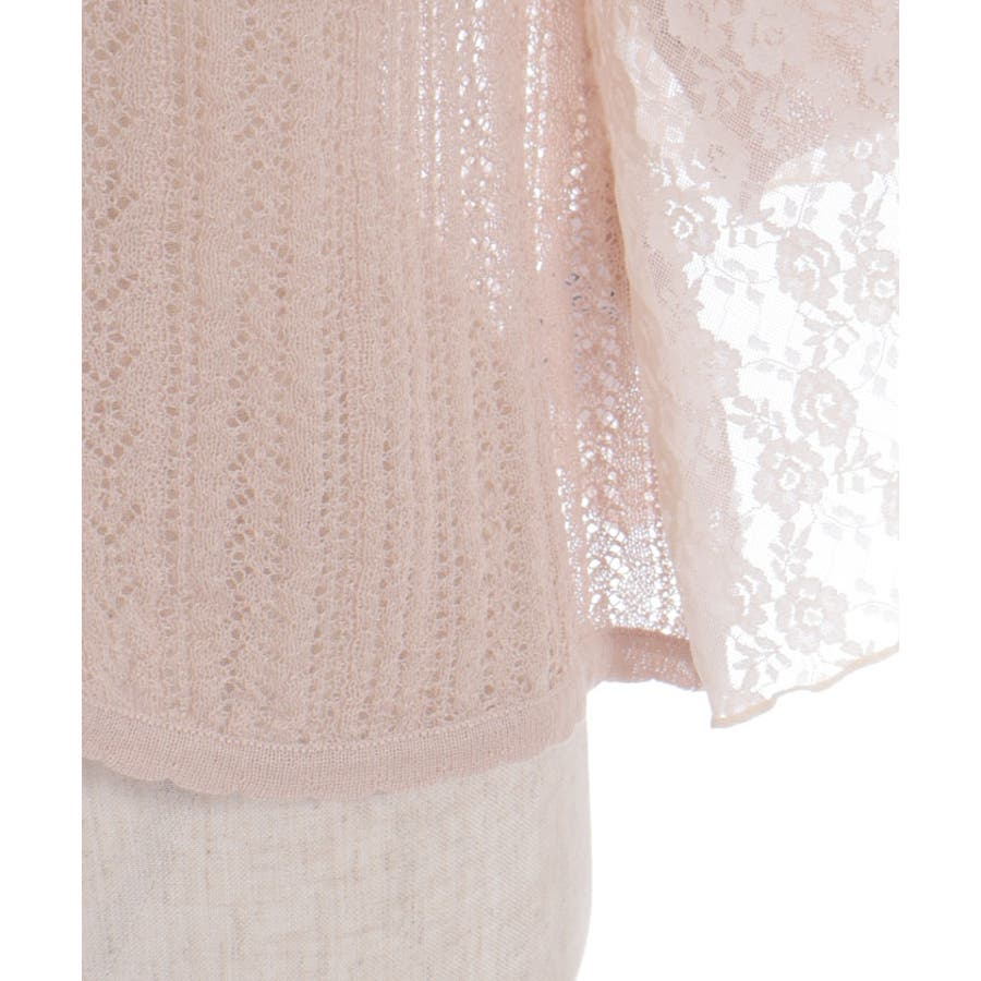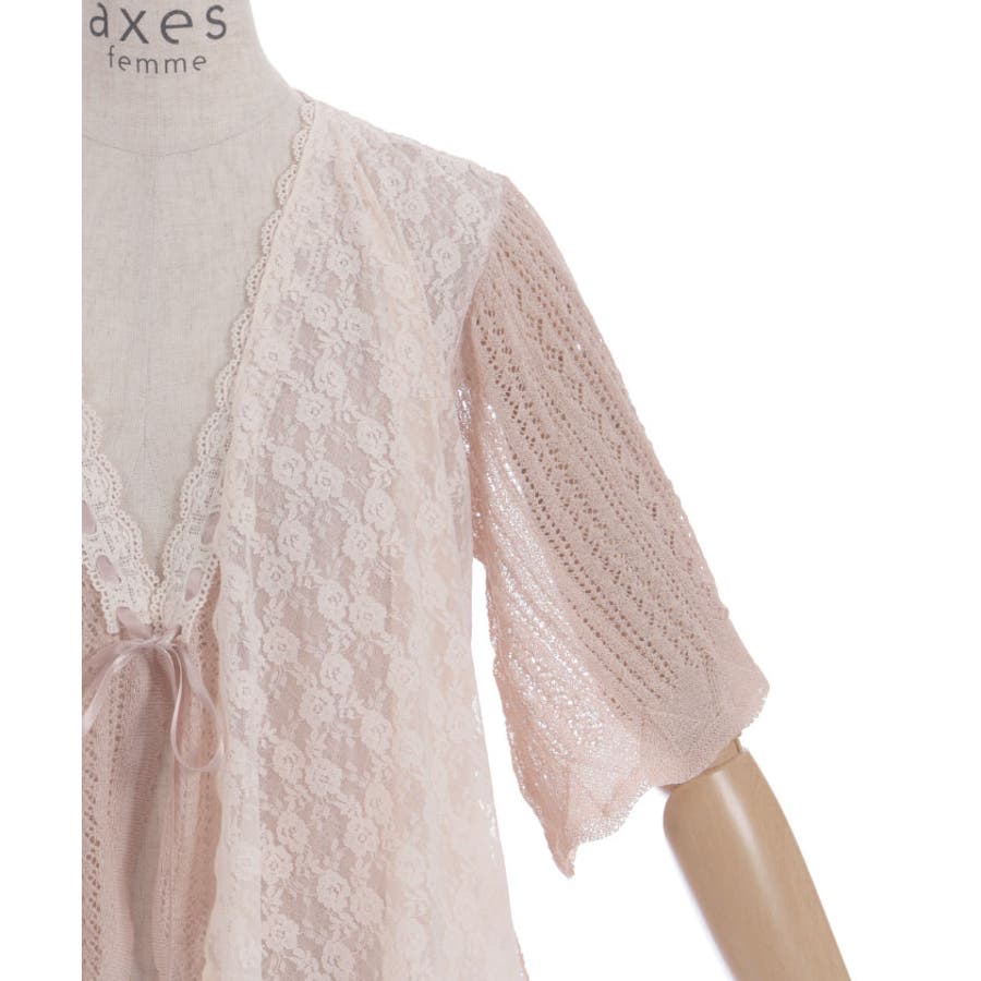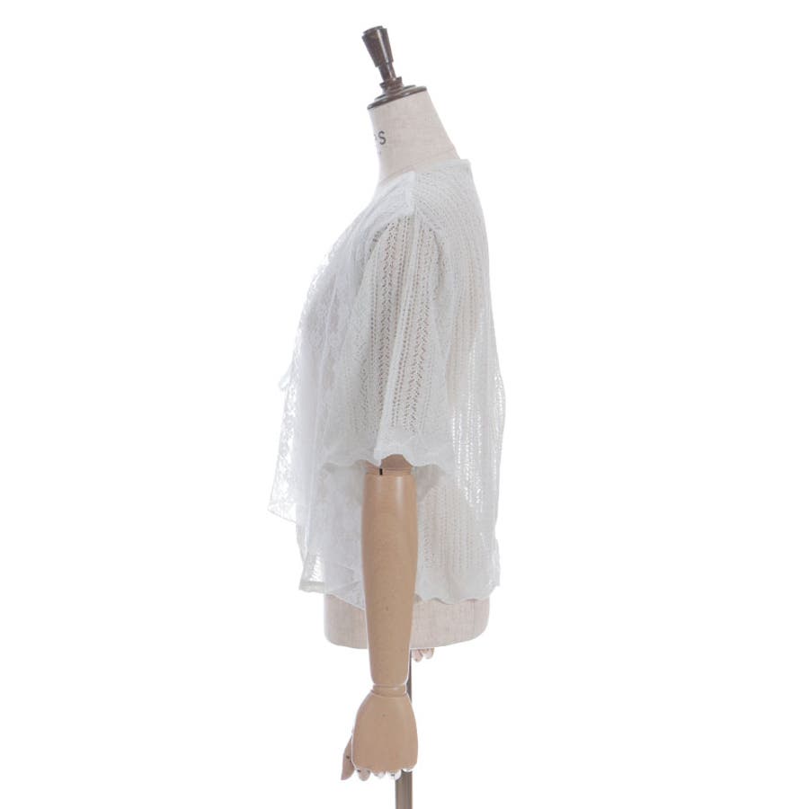 繊細なレース風の編地がフェミニンな印象を与えるショートカーデは、1枚でレイヤードスタイルが完成する便利なアイテムです。