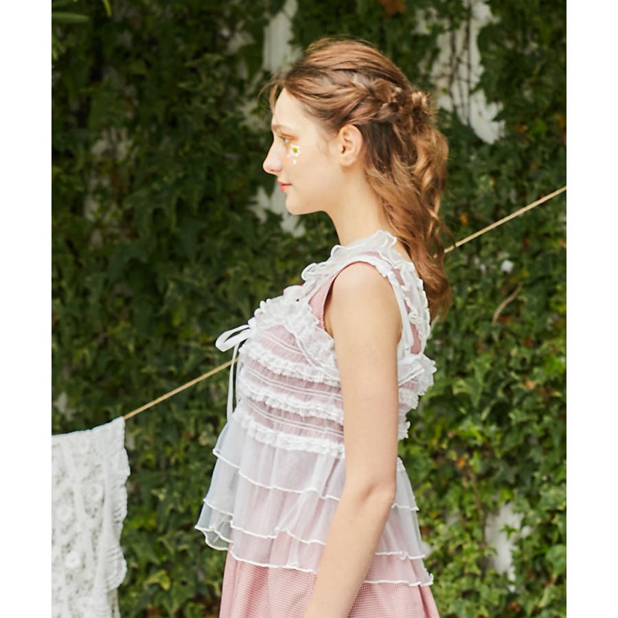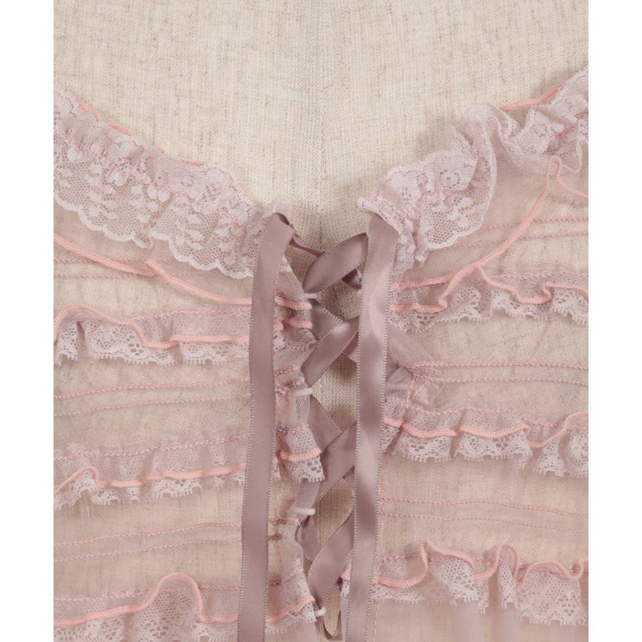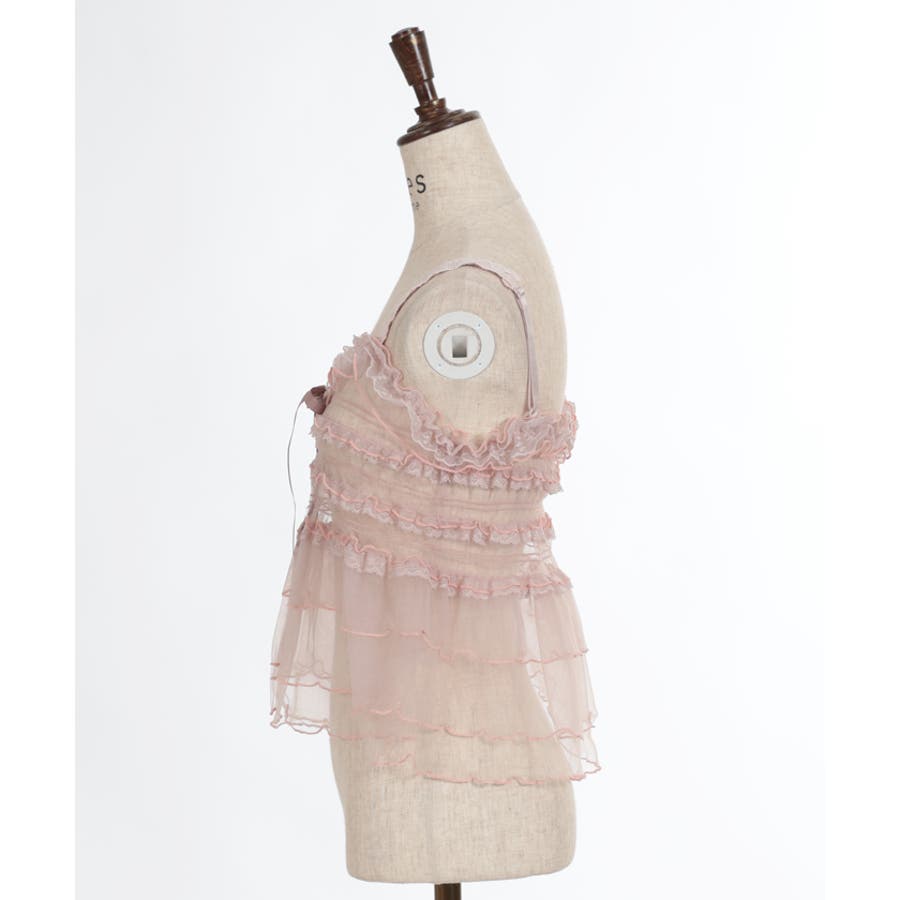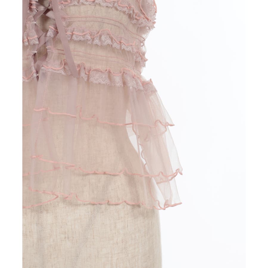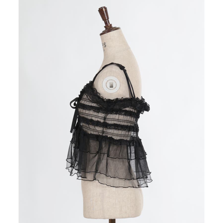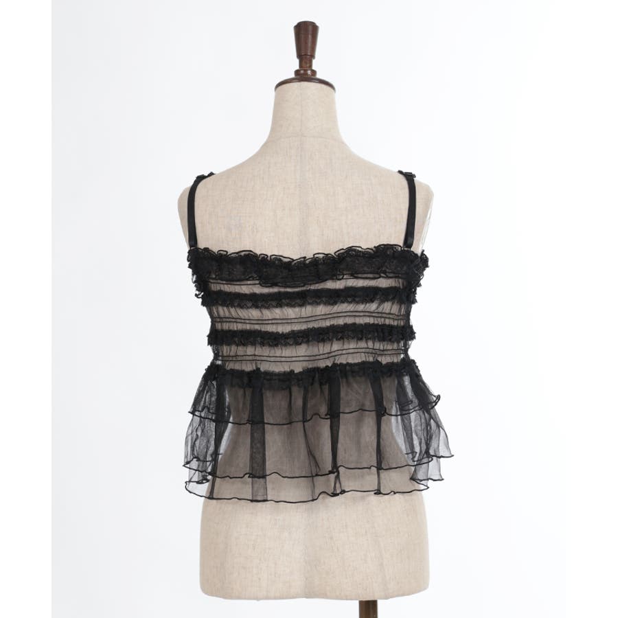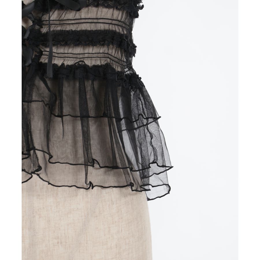 繊細なチュールにたっぷりのギャザーをいれ、フェミニンなシルエットに仕上げたビスチェです。